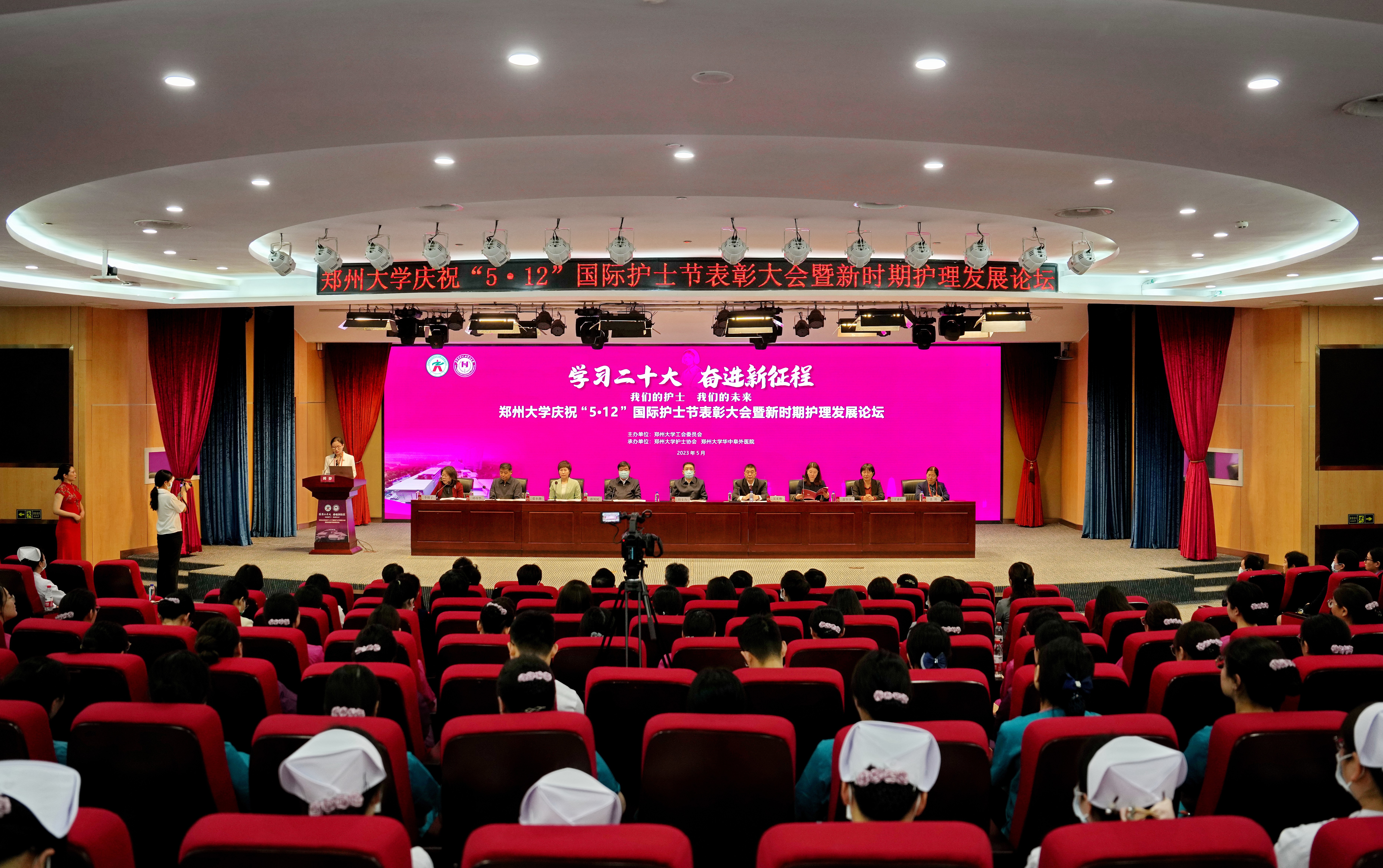 5月10日,best365英国在线体育官网庆祝“5·12”国际护士节表彰大会暨新时期护理发展论坛在best365英国在线体育官网华中阜外医院召开。校党委书记别荣海,党委副书记吴宏阳出席会议,河南省卫健委有关同志应邀参加,来自国内高校有关专家学者,校工会、各附属医院等单位负责同志,护士协会全体委员以及受表彰的人员等300余人现场参会。