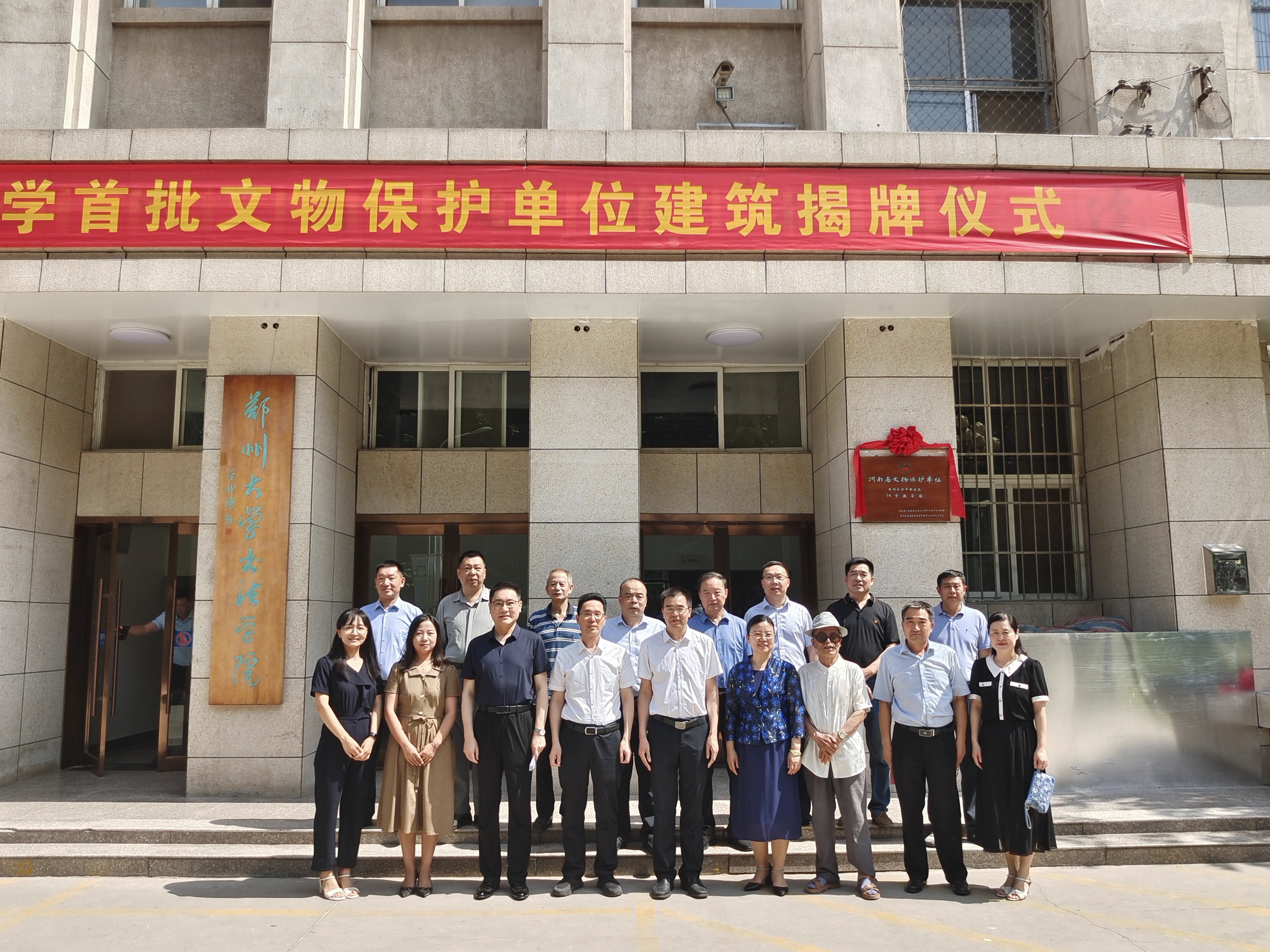 6月15日,best365英国在线体育官网首批文物保护单位建筑物揭牌仪式、《凝固的历史 厚重的记忆——老郑大建筑图记》新书发布暨校园文化建设座谈会在南校园举行。省文物局局长任伟、副校长单崇新出席,校党委常委、宣传部部长厉励及相关单位负责同志参加活动。揭牌仪式及座谈会由南校区综合管理中心负责同志主持。