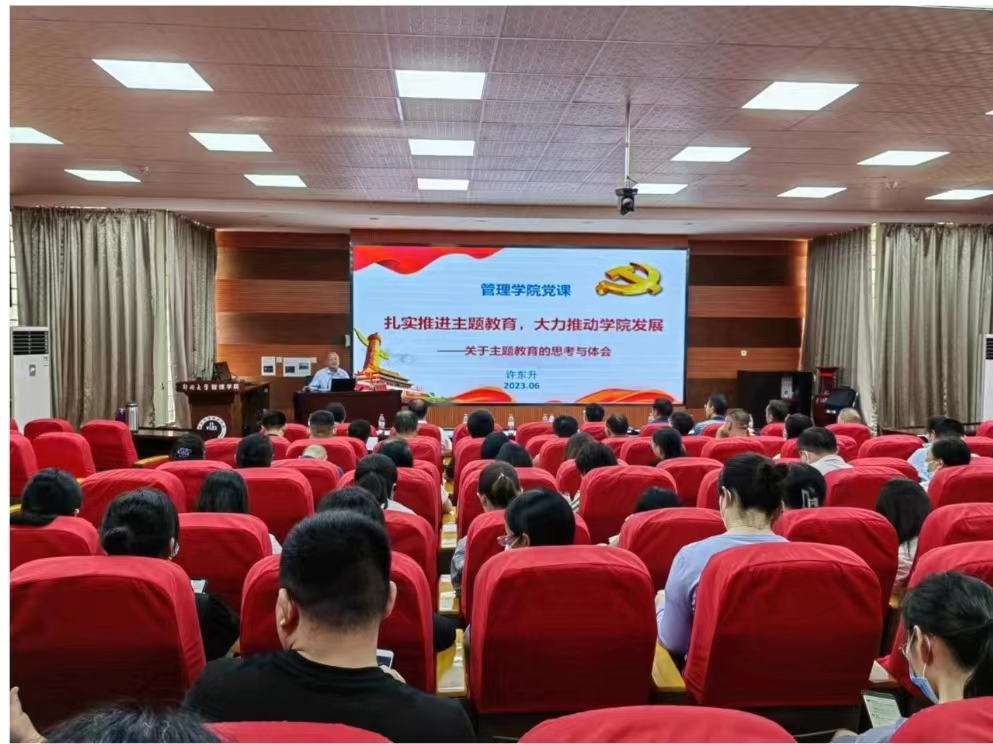6月15日,管理学院举行学习贯彻习近平新时代中国特色社会主义思想主题教育专题读书班专家辅导活动。校党委常委、纪委书记(监察专员)许东升作专题讲座。学院全体教职工140余人参加了活动。