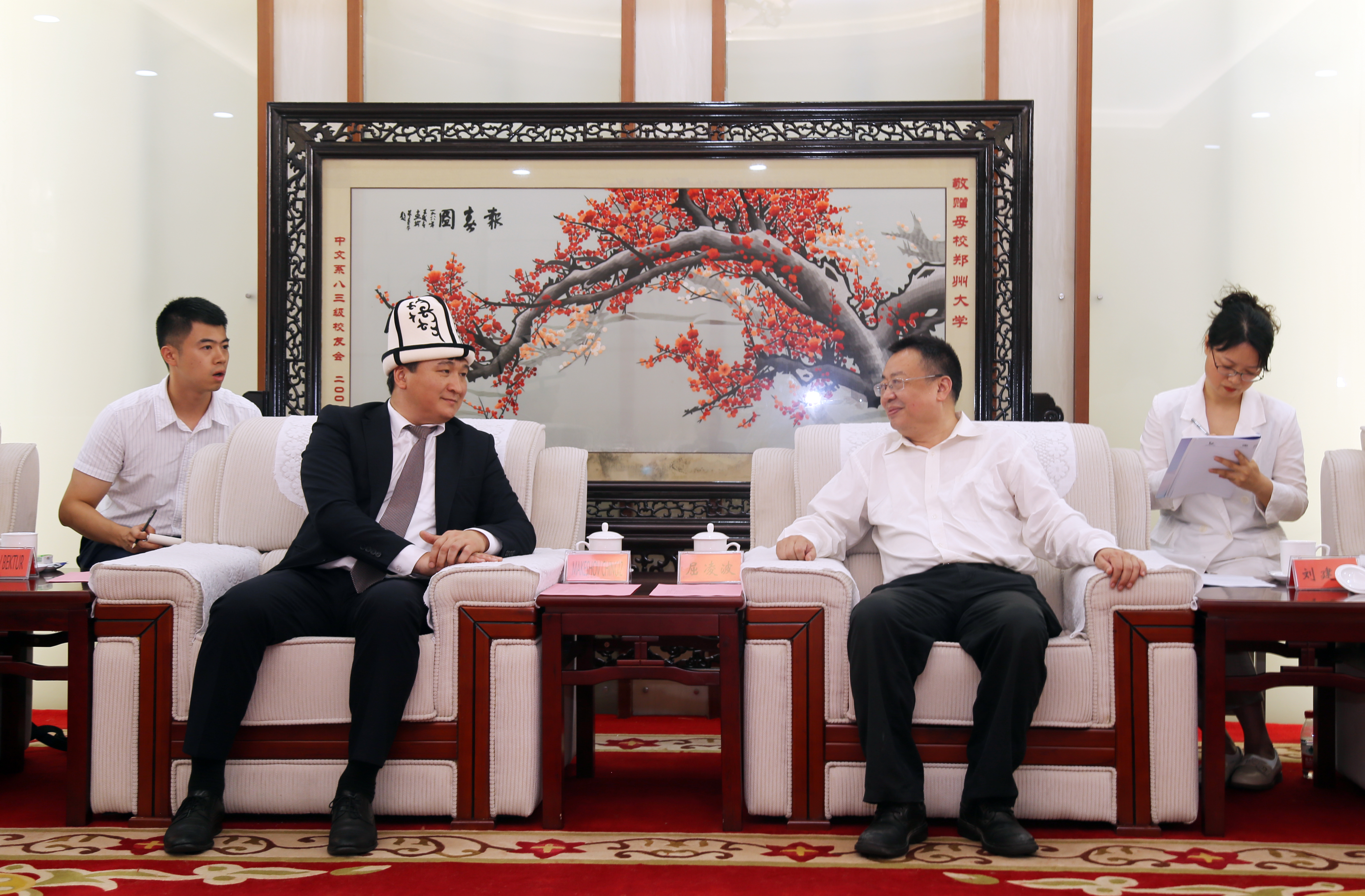 马库什夫 ·钦吉兹一行参观了校史馆,并到国际教育学院就吉方学生来华留学等事宜进行了座谈。