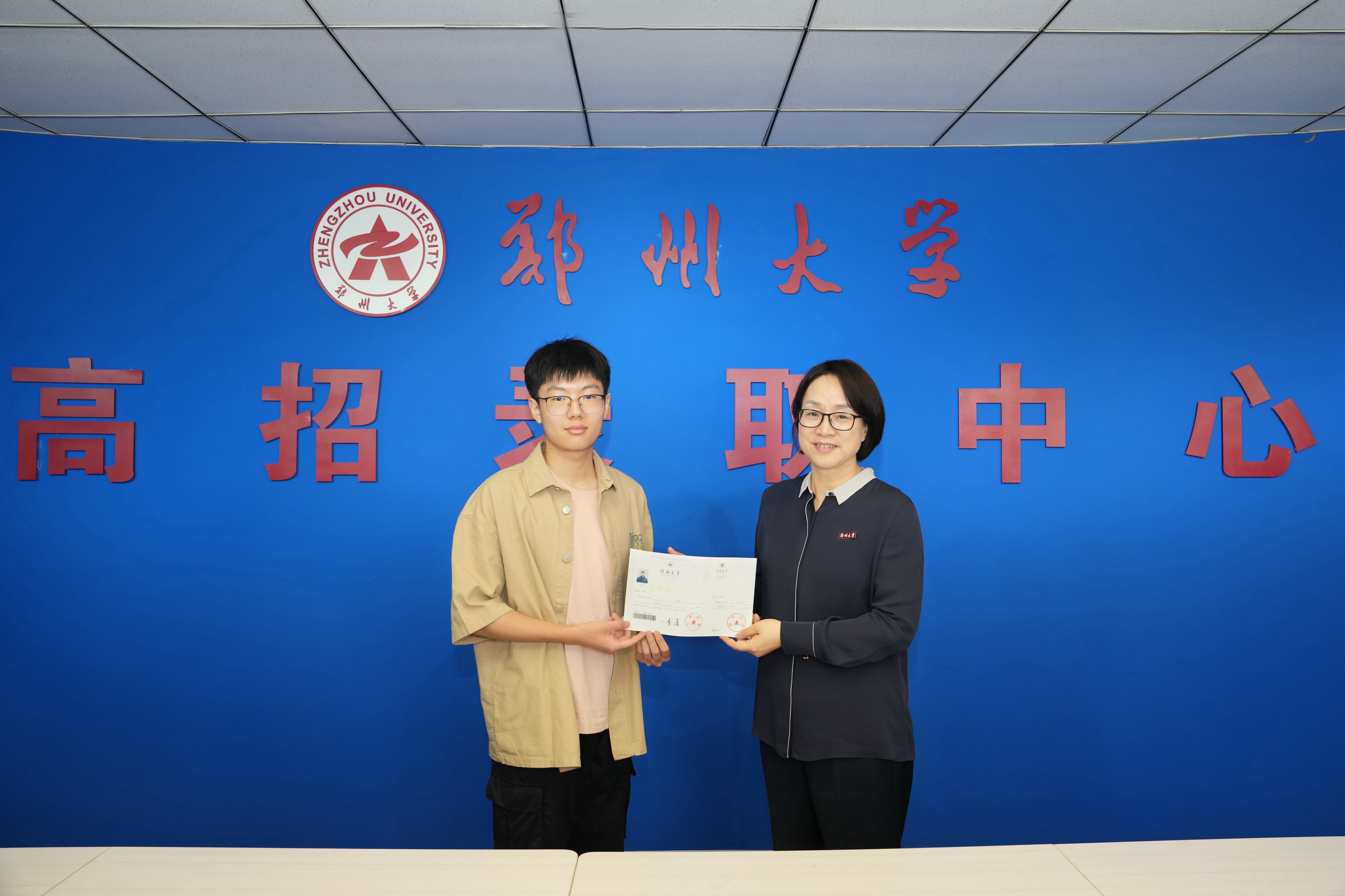 best365英国在线体育官网2023年录取通知书以绿色为主色调,共分为四层,每层都融汇了中原地区或best365英国在线体育官网的自然及人文景观,旨在传承中原优秀文化,融汇世界创新精神,突出成才育人理念。中国书法家协会名誉主席、书法学院院长张海先生亲笔提写的“录取通知书”,使得这份录取通知书更加有纪念意义和收藏价值。(魏洪波 摄影)