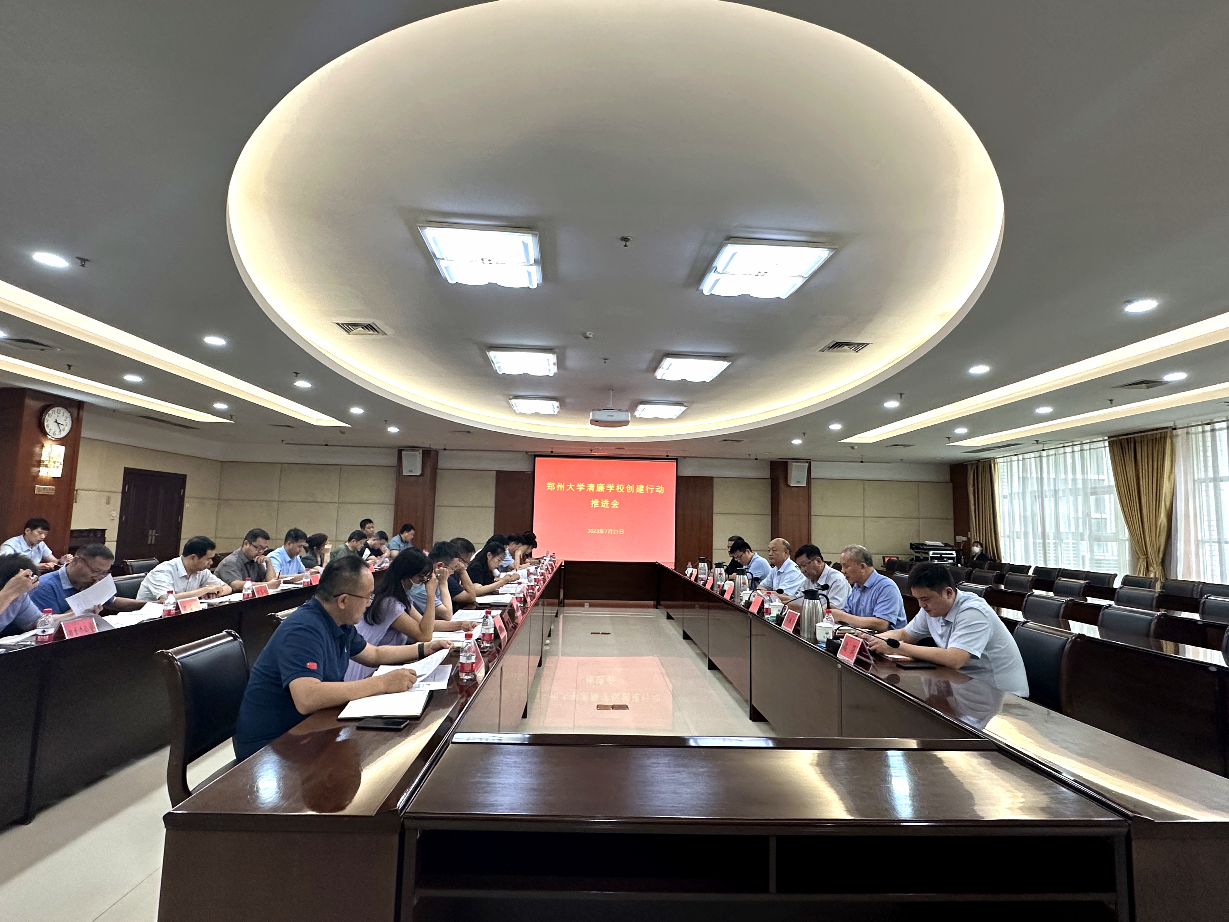 7月21日,best365英国在线体育官网在主校区召开清廉学校创建行动推进会,安排部署清廉学校创建行动示范校培树单位申报工作。校党委常委、纪委书记、监察专员许东升出席会议并讲话,清廉郑大创建行动工作专班成员单位和相关院系负责同志参加会议。会议由校党委办公室负责同志主持。