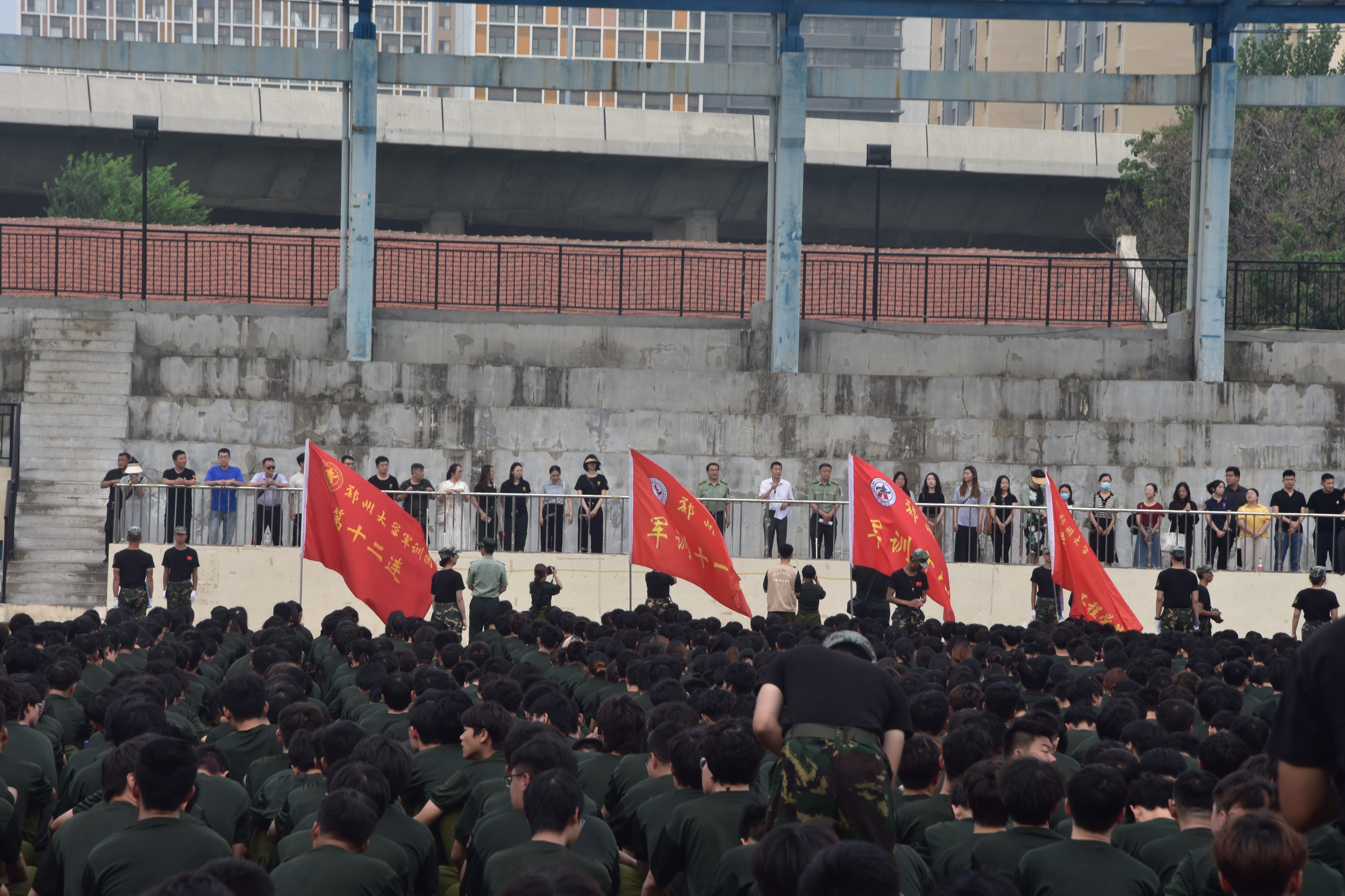 吴宏阳在讲话中充分肯定了同学们的军训成绩。他指出,同学们经过集中军训,一是立起了青年学子的好样子,同学们精神抖擞,朝气蓬勃,激昂向上,壮怀激烈,展现了青春的风采,展现了郑大学子应有的样子。二是立起了军事训练的好样子,同学们由平时状态转为军事化、半军事化状态,战高温、斗酷暑、苦练三伏,展现了硬的作风、兵的味道、战的品格和压倒一切敌人的英雄气概。三是立起了爱国主义的好样子,大家崇军尚武、求是担当,追求卓越、奋勇向前,展现了爱党爱军爱国防的家国情怀,表达了争当强国先锋、复兴栋梁的坚强決心。他表示,军训是个大熔炉、大课堂,时间虽短,刻骨铭心;训练十四天,受用一辈子。他希望同学们在今后的学习生活中,继续发扬艰苦奋斗、英勇顽强的好作风,一刻不停地提升素质本领,在报国成才的不懈奋斗中书写壮丽的青春华章!