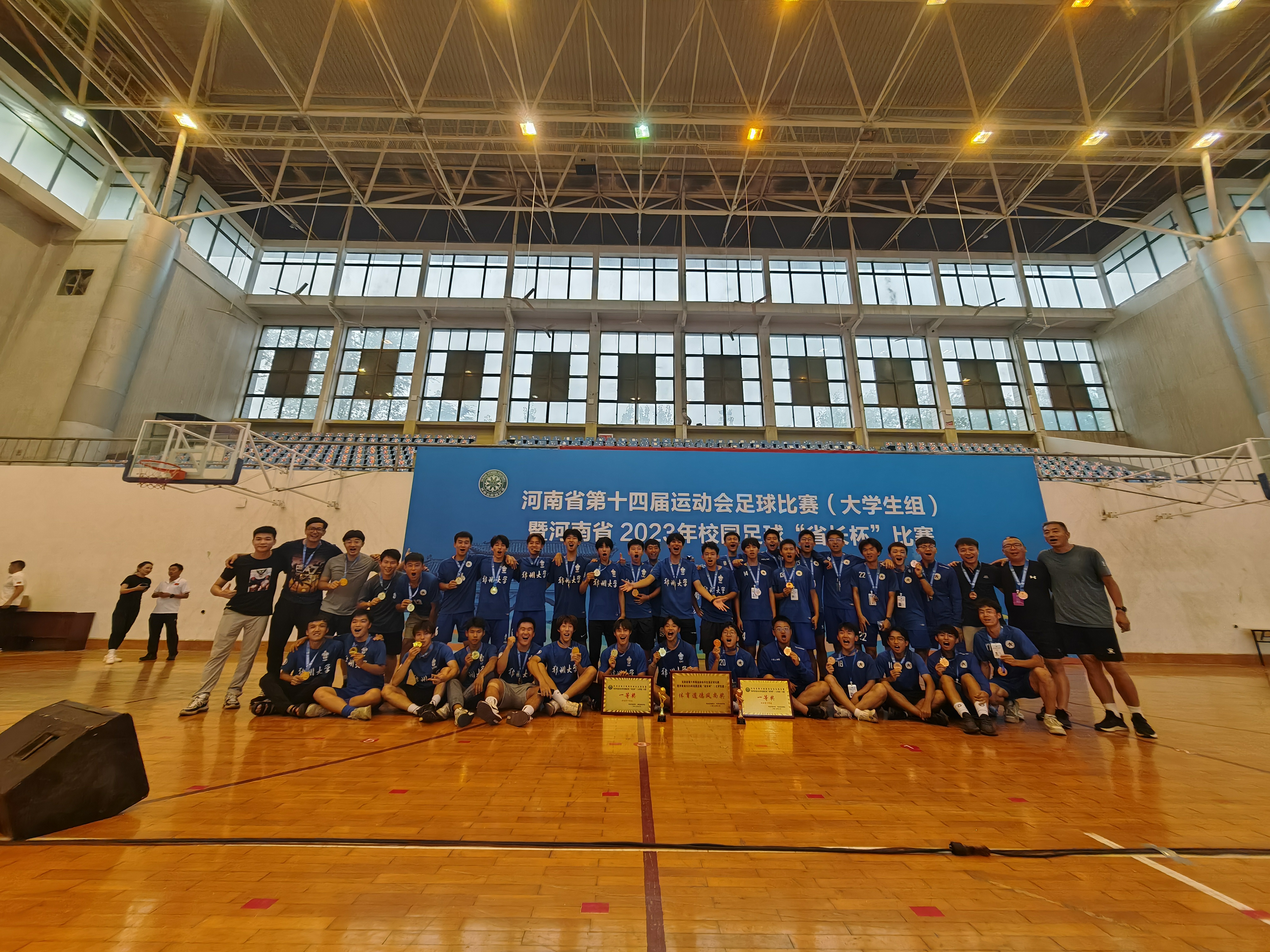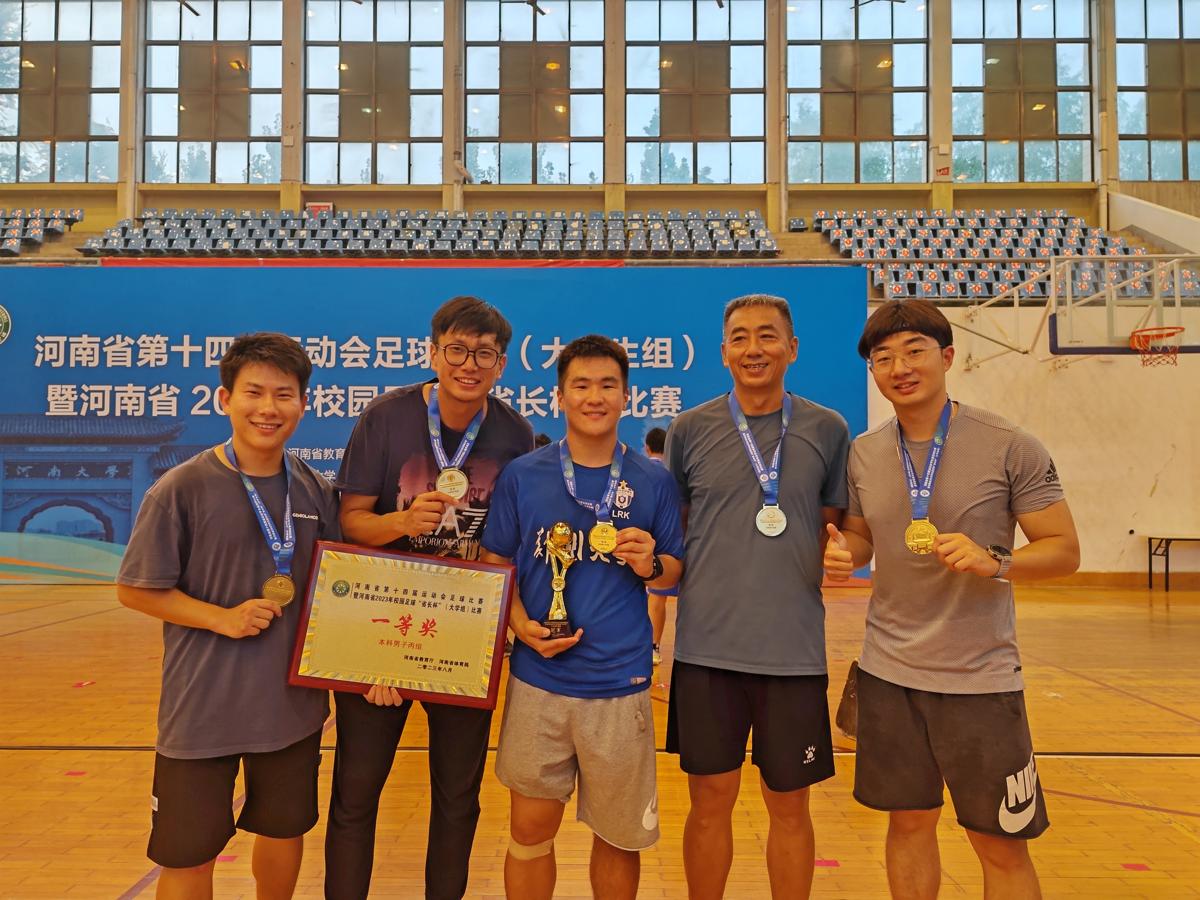 8月14—19日,由省教育厅、省体育局主办,省校足办等单位承办的河南省第十四届运动会学生组足球比赛暨河南省2023年校园足球“省长杯”(大学生组)比赛在河南大学举行,来自全省高校的19支足球代表队参赛。best365英国在线体育官网运动健儿团结协作、奋勇拼搏,获得了本科男子丙组一等奖(冠军),本科男子甲组一等奖(季军)的好成绩。本科男子甲组还获得本届运动会(大学生组)唯一的体育道德风尚奖,李昱泽、王城卫、杨文卓、张贤刚四名同学获得优秀运动员,牛岭老师获得优秀教练员称号。