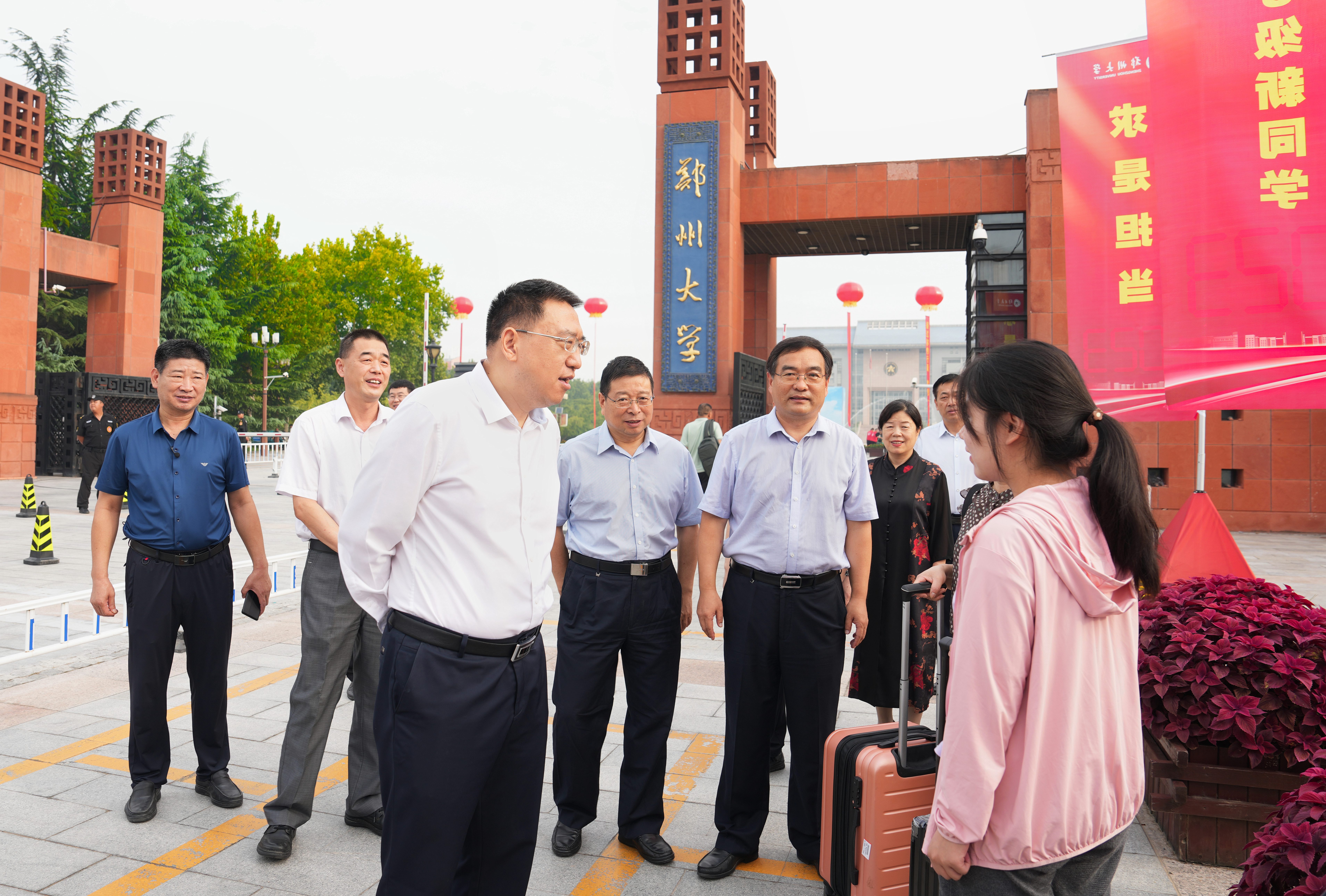 9月2日上午,校党委书记别荣海带领全体在校校领导分别到主校区、南校园、北校园和火车站检查指导迎新工作,详细了解新生报到流程、手续办理情况,看望2023级新生和家长,慰问迎新工作人员和学生志愿者。在综合服务办事大厅,校领导仔细询问了当天的服务安排与工作内容,嘱咐工作人员一定要耐心细致做好服务保障,做到让新生安心、家长放心。在学生工作窗口,校领导详细询问了家庭经济困难新生的报到和绿色通道申请情况,要求不能让任何一个学生因家庭困难而失学。