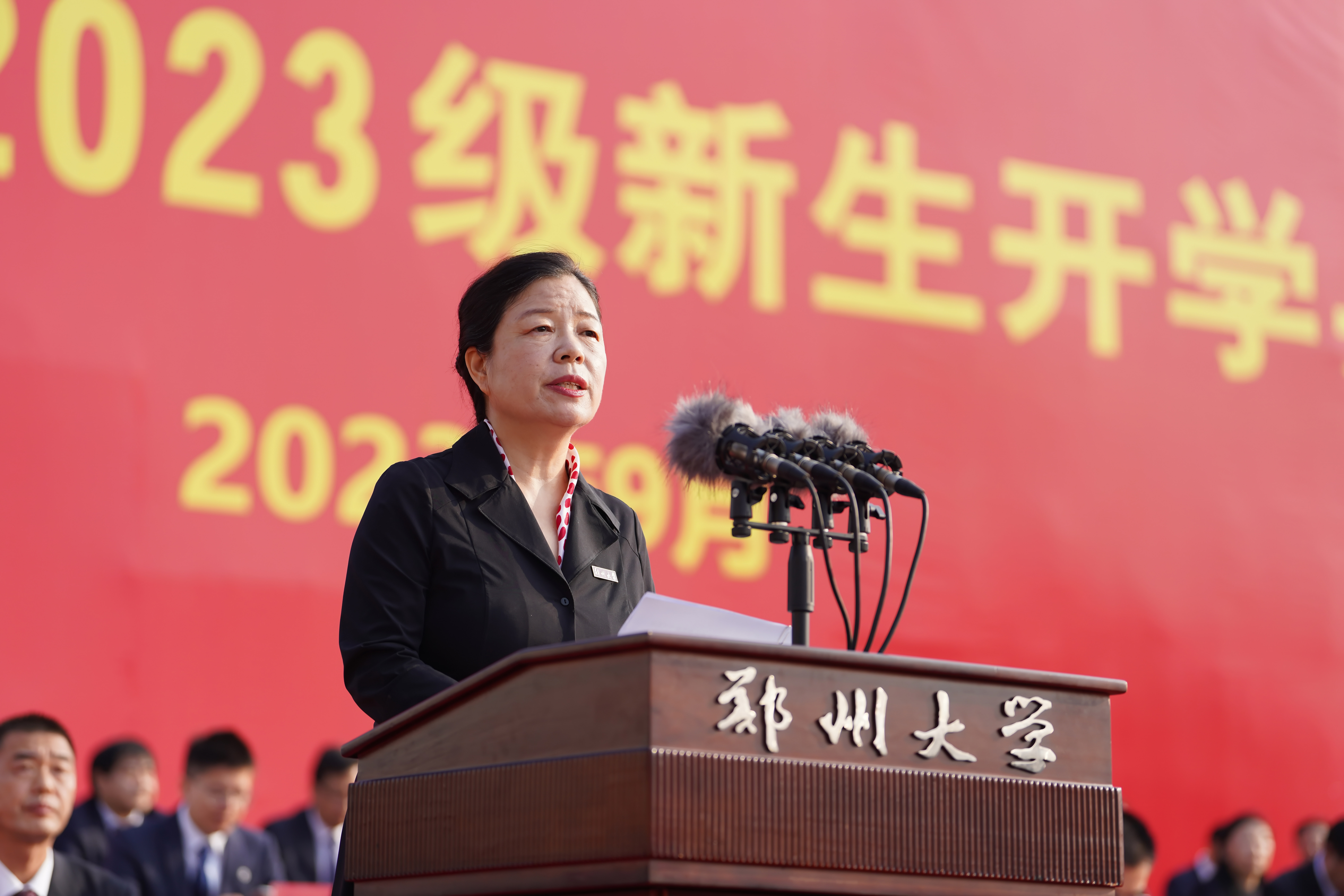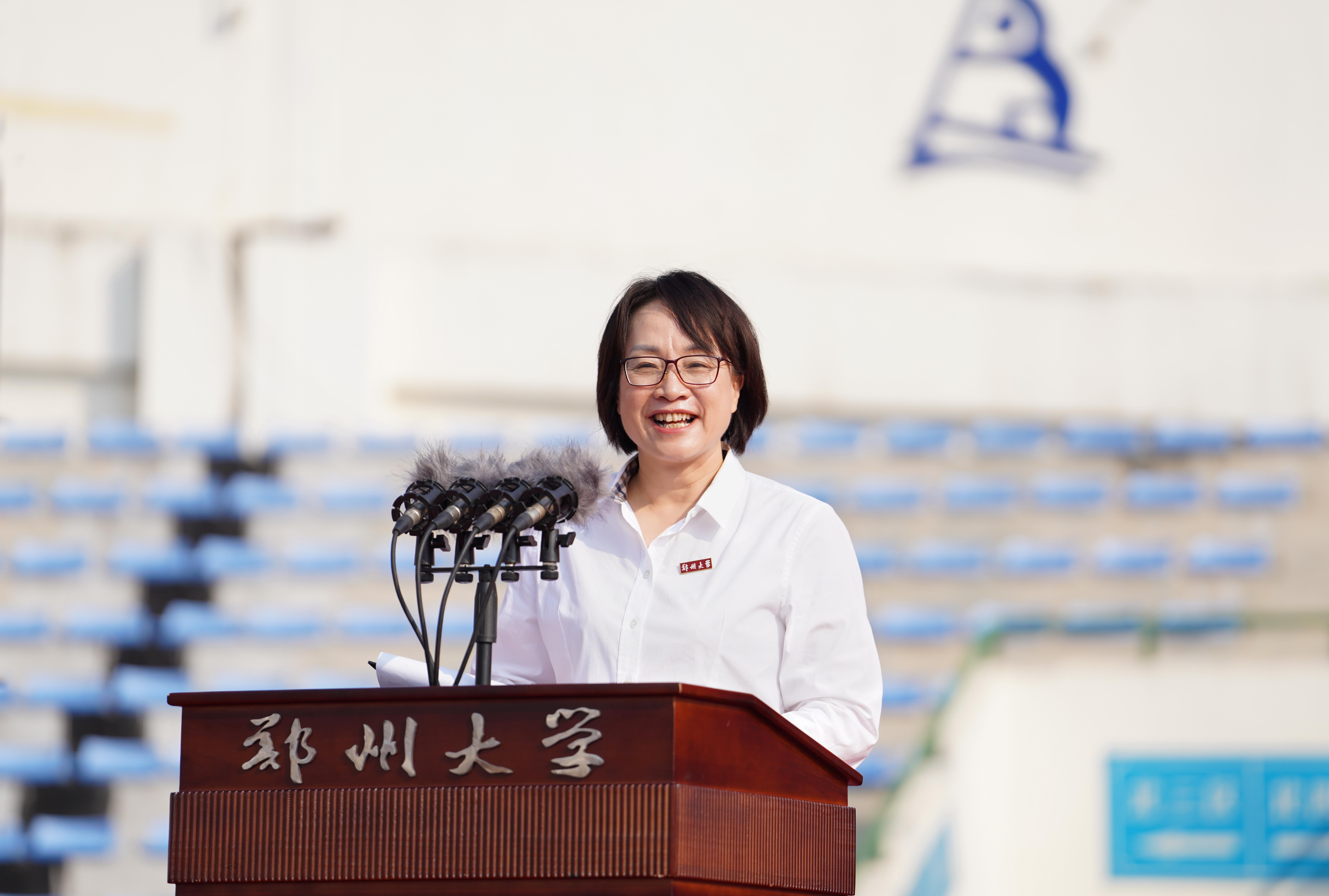 中国科学院院士、校长李蓬作题为《发现自我、勇毅前行》的讲话。她代表学校向2023级10564名本科生、8741名研究生、688名博士生以及来自58个国家的543名留学生表示欢迎,并用“大”和“美”介绍了学校的基本情况,用“历史悠久、站位前沿、名师辈出”介绍了学校的历史与取得成就,她希望同学们用心体会郑大独有的厚重与灵秀,她寄语同学们在best365英国在线体育官网开启人生新的阶段,上好“大学第一课”,在大学里发现自我、塑造自我、成就自我、超越自我,完成从一名大学新人到栋梁之材的蜕变,鼓励同学们认清自己的人生坐标,树立前行的奋斗目标;发现自己的使命,坚定前行的信念;发现自己无尽的潜力,积蓄前行的能力。她指出,国家的前途,民族的命运,人民的幸福,是当代中国青年必须和必将承担的重任,她希望同学们怀揣星辰大海,发现自我、勇毅前行,以昂扬的姿态去迎接未来,在实现中国梦的伟大征程中展现郑大人的时代风采!