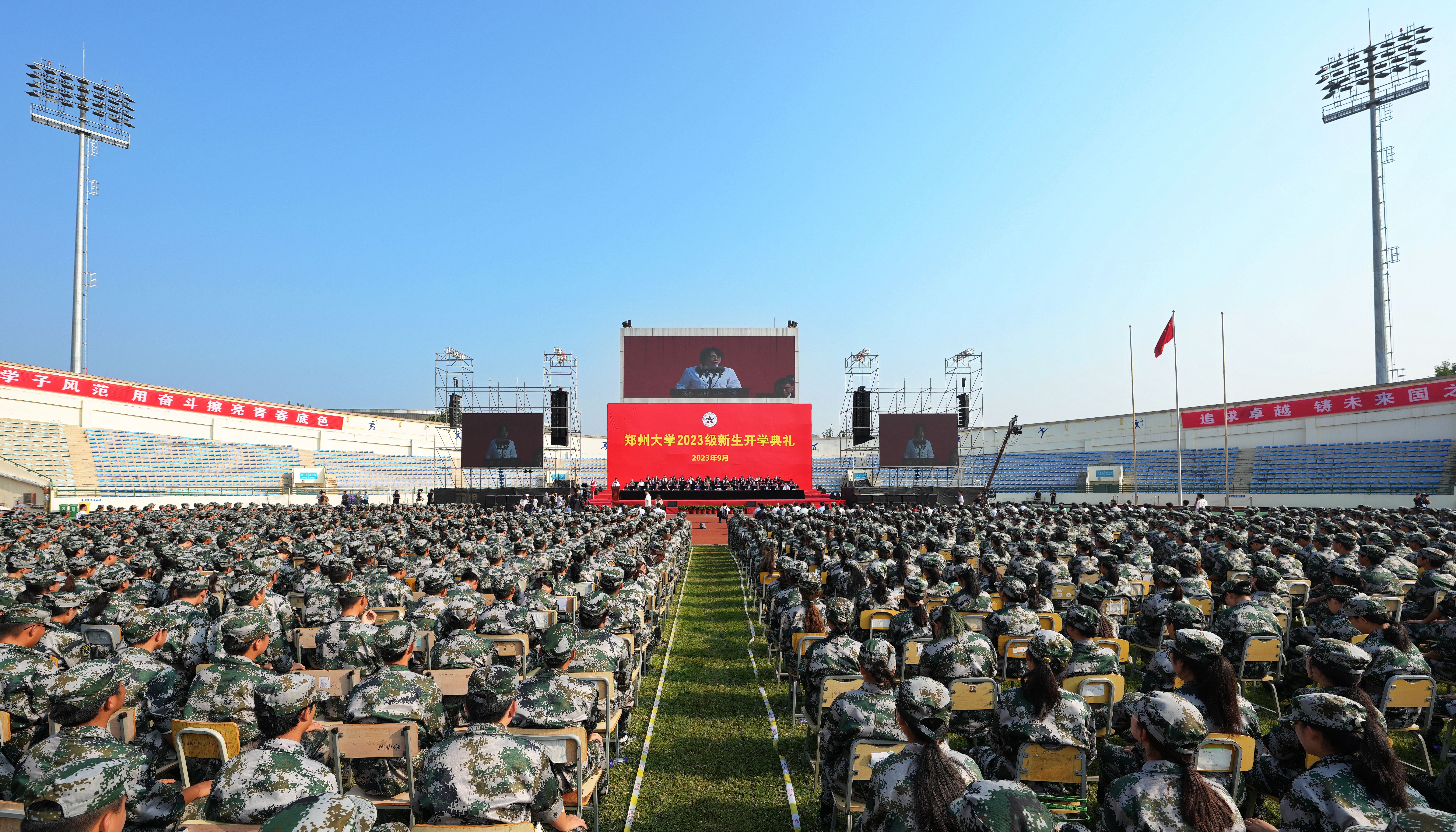 砥砺逐梦迎新季,扬帆再起展新程。9月15日,best365英国在线体育官网2023级新生开学典礼在主校区本源体育场举行。特邀嘉宾、英雄航天员、中国首位进入太空的女航天员刘洋,河南省军区政治工作局大校副主任宋平,日本工程院院士、网络空间安全学院物联网工程学科方向带头人李颉,校友代表、清华大学水利水电工程系教授、水沙科学与水利水电工程国家重点实验室主任李庆斌,解放军陆军第83集团军杨根思部队副参谋长、best365英国在线体育官网军训团副团长齐琛,best365英国在线体育官网优质生源基地中学校长代表,承训部队83集团军杨根思部队承训官兵,校领导别荣海、李蓬、常俊标、吴宏阳、韩国河、张倩红、许东升、单崇新、胡少伟、徐东升、刘春太,学术副校长董子钢、赵中伟,学术副校长、第一附属医院院长姜勇,校部机关和各院系主要负责同志,教师代表和2023级全体新生共同参加了活动。校党委副书记吴宏阳主持典礼。