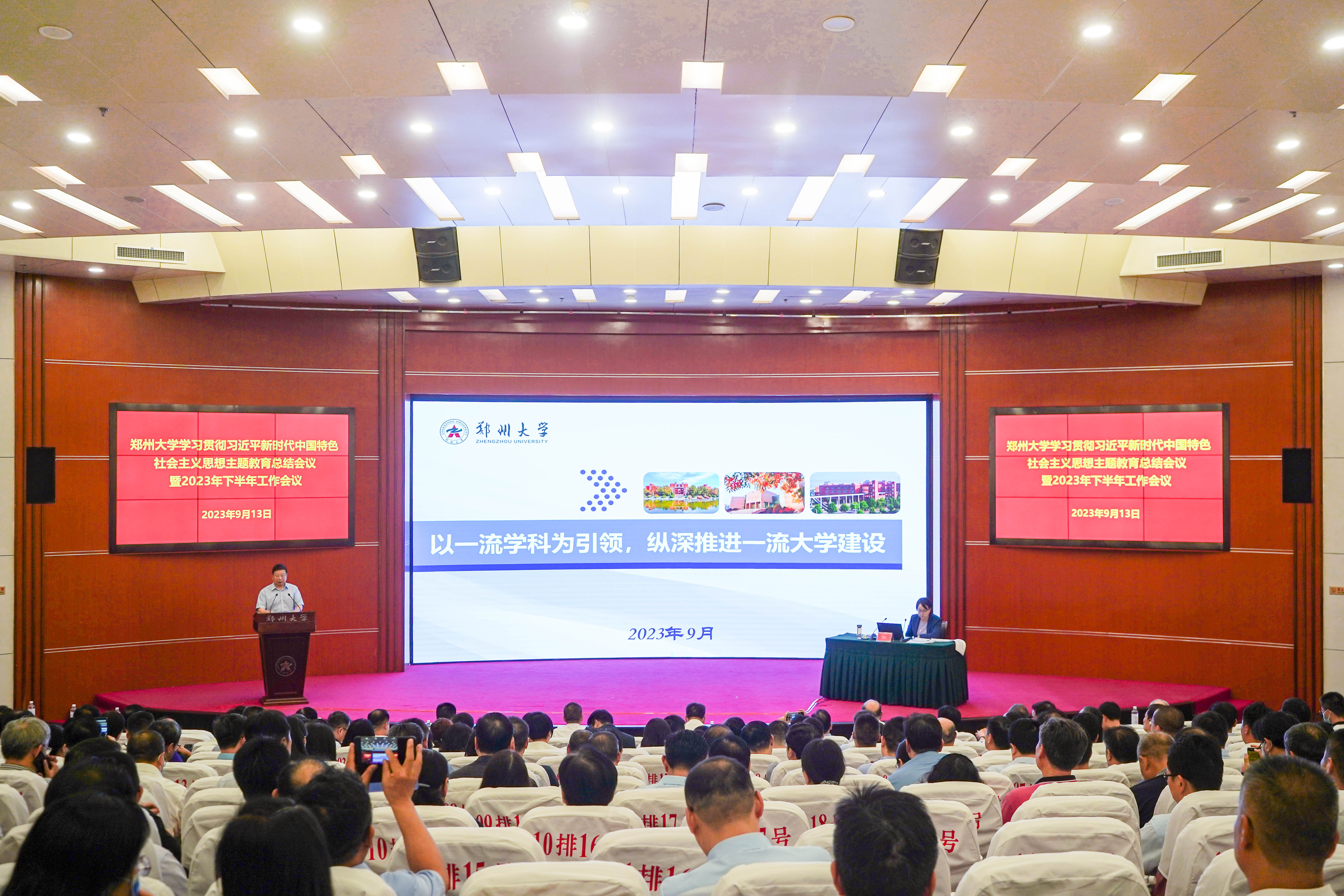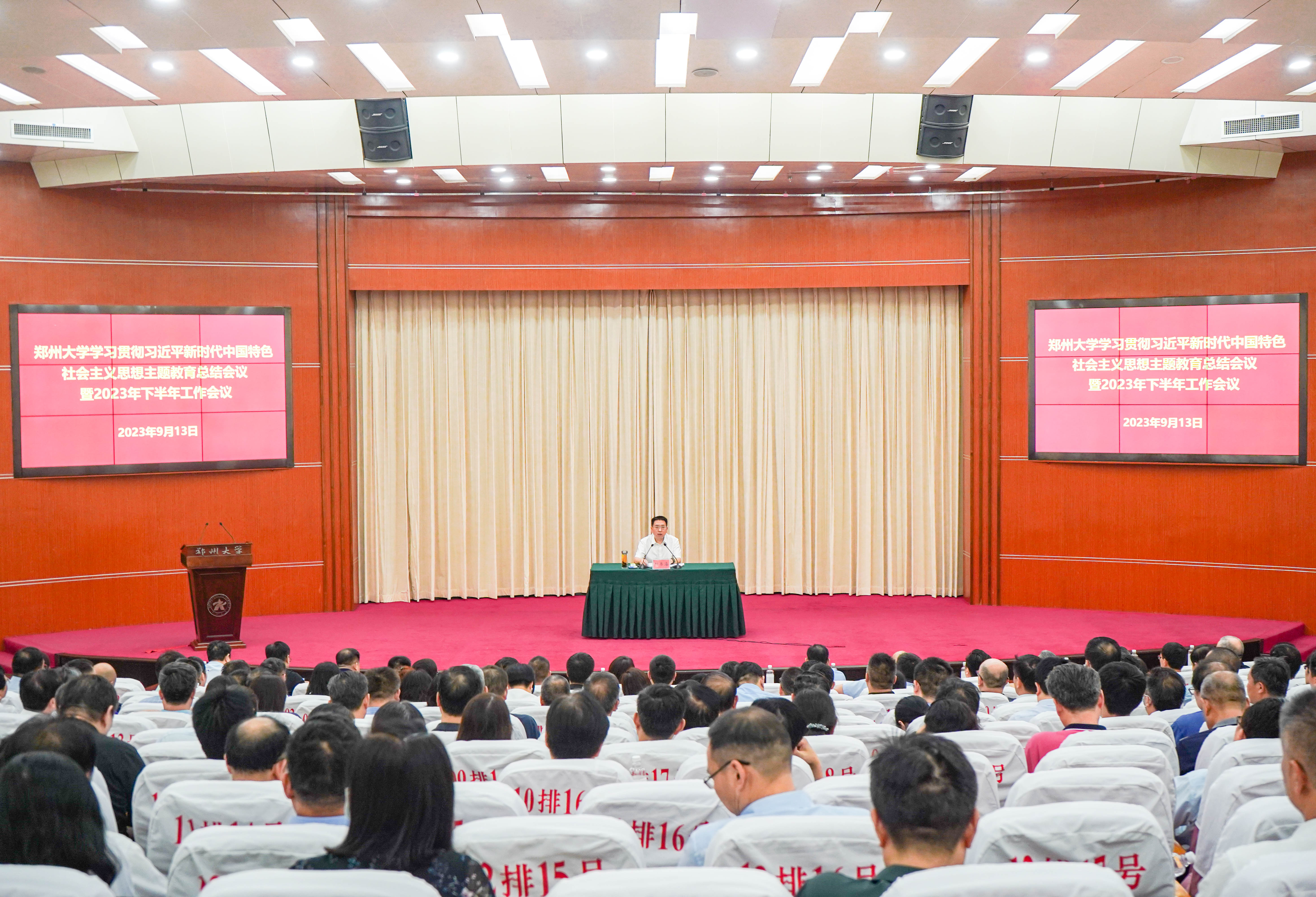 校党委书记别荣海代表校党委对学校主题教育开展情况进行总结。他指出,学校把开展主题教育作为重大政治任务,牢牢把握总要求,高起点谋划、高标准推进、高质量落实,推动主题教育深入开展;坚持深学细悟,精心部署统筹学、以上率下示范学、钻深悟透研究学、辐射带动广泛学和端正学风务实学,筑牢思想根基;坚持问题导向,围绕事关全局的重大问题和广大师生的急难愁盼开展调研工作,把调研成果转化为决策共识、转化为问题整改的实际举措;坚持刀刃向内,边学习、边对照、边检视、边整改,把“当下改”与“长久立”相结合,做到“完善一套制度,解决一类问题”;坚持真抓实干,奋力推动学校高质量发展取得新突破。他指出,学校主题教育取得了显著成效:一是构建学习机制,思想政治受洗礼,广大党员更加自觉用党的创新理论武装头脑。二是服务发展战略,聚焦服务国家和我省重大战略实施,推动学校各项事业高质量发展。三是践行宗旨意识,为民服务解难题,确保件件有回音、事事有着落。四是深化从严治党,将主题教育、清廉郑大创建行动与全面从严治党相结合,营造风清气正的政治生态。