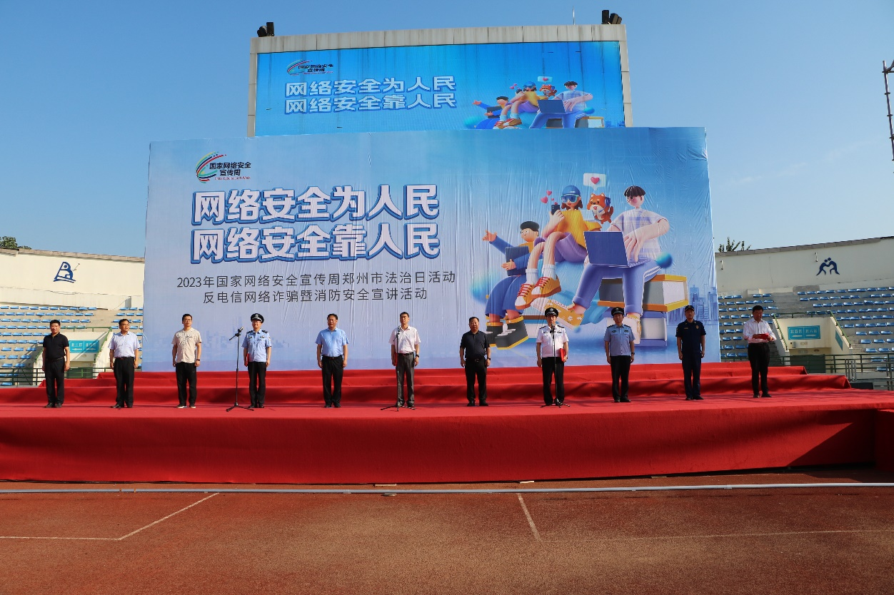 9月14日,由党委保卫部、保卫处和信息化办公室、网络管理中心共同承办的“2023年郑州市网络安全周反电诈暨消防安全宣讲活动启动仪式”在best365英国在线体育官网本源体育场举行。