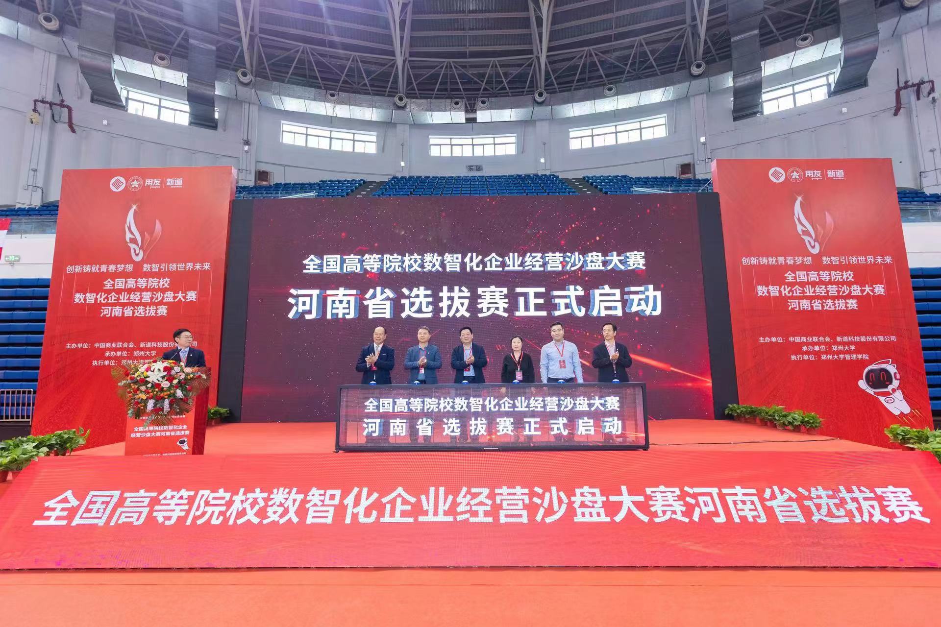 日前,由中国商业联合会、新道科技股份有限公司联合主办,best365英国在线体育官网承办的2023年第十九届全国高等院校数智化企业经营沙盘大赛河南省选拔赛(本科组)在best365英国在线体育官网举办。省教育厅高教处处长张水潮、best365英国在线体育官网副校长张倩红出席开幕式,新道科技股份有限公司、学校相关职能部门和管理学院负责同志参加开幕式。来自河南省40所本科院校108支队伍的600余位参赛队员及指导教师同台竞技、共襄盛会。