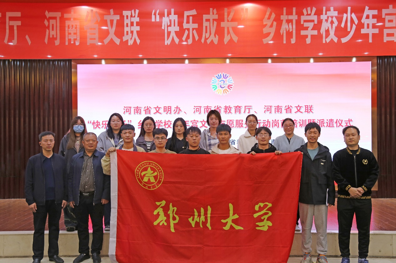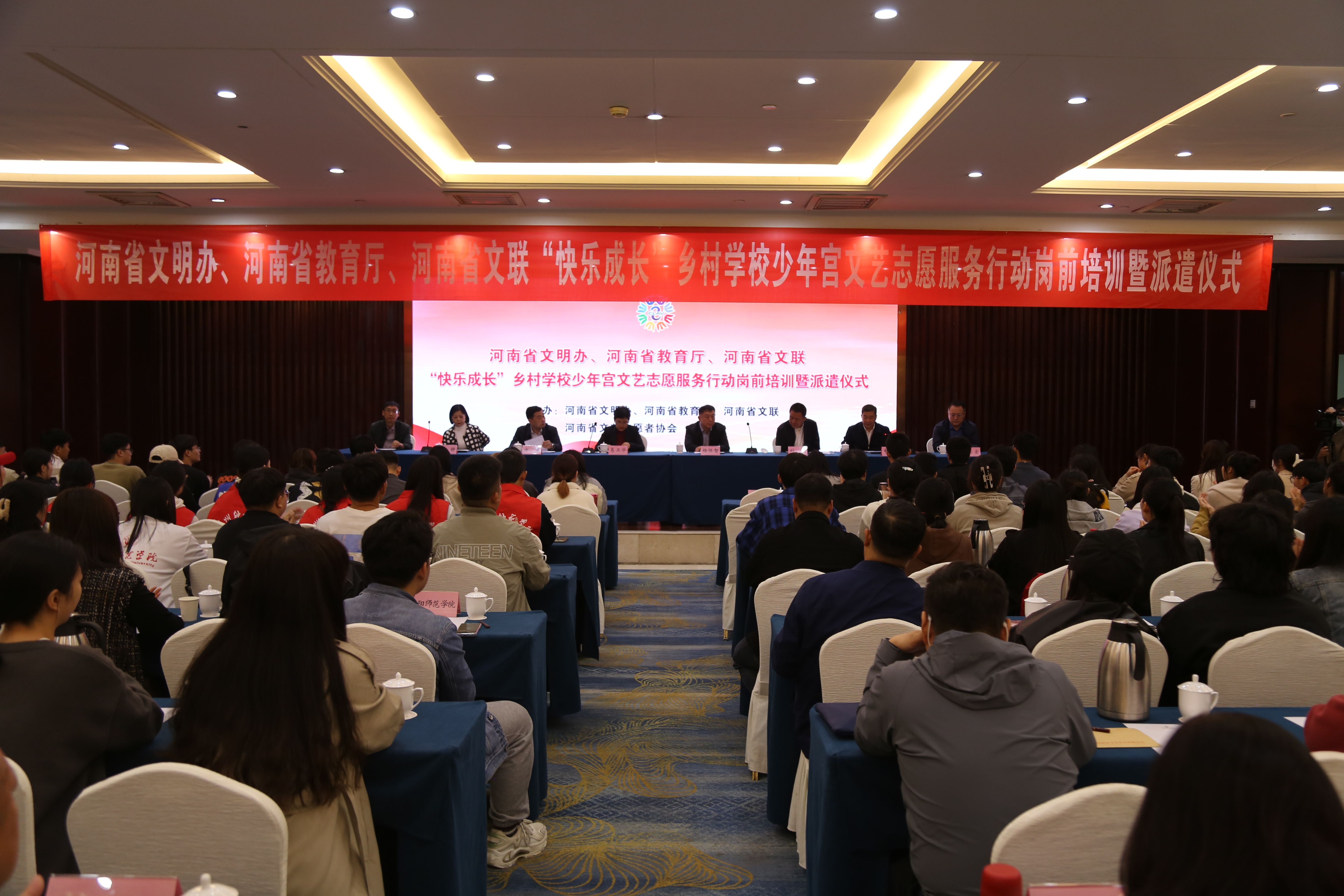 10月8日上午,由河南省文明办、河南省教育厅、河南省文联主办的2023年下半年“快乐成长”乡村学校少年宫文艺志愿服务行动岗前培训暨派遣仪式在郑州举行。省委宣传部二级巡视员葛卫华,省委宣传部精神文明建设二处处长杨恒智,省教育厅思政处一级调研员方韬等以及来自best365英国在线体育官网等12所高校的126名大学生文艺志愿者参加仪式。