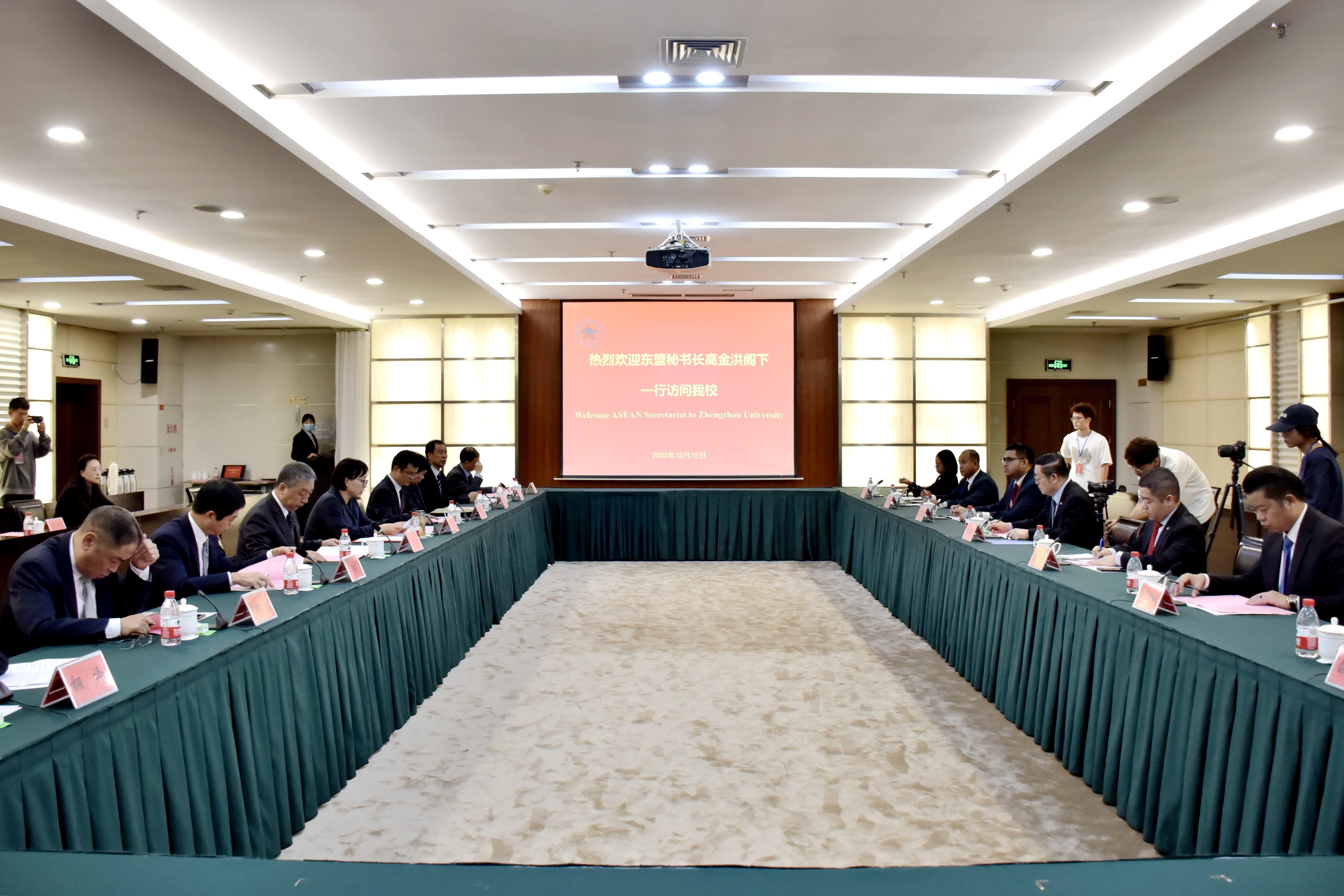 10月15日,东盟秘书长高金洪一行来校访问交流,中国驻东盟使团参赞王晓风、柬埔寨大学副校长西那·诺姆、郑州市委外办主任潘新红等一同来访。双方举行座谈会,校长李蓬院士、副校长刘春太出席,校长办公室、国际交流与合作处、政治与公共管理学院、国际教育学院、文学院等单位主要负责同志参加。
