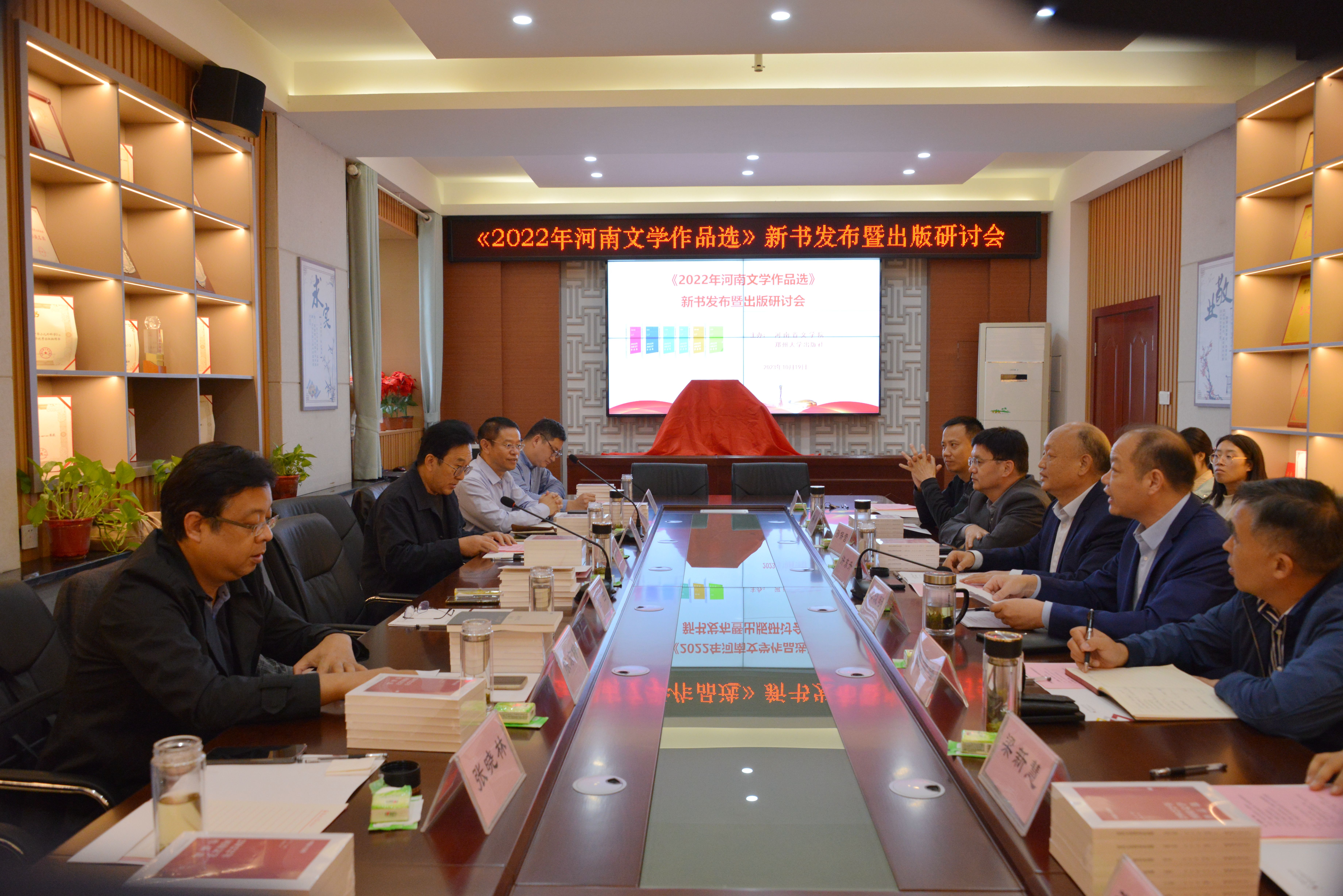 10月19日,best365英国在线体育官网出版社与河南省文学院联合举办《2022年河南文学作品选》新书发布会。河南省文学院副院长冯杰、陈宏伟,河南省小说研究会会长墨白,河南省文艺评论家协会副主席李勇,best365英国在线体育官网党委常委、纪委书记(监察专员)许东升出席会议。河南文学界代表、best365英国在线体育官网出版社班子成员及有关编辑人员等20多人参加会议。