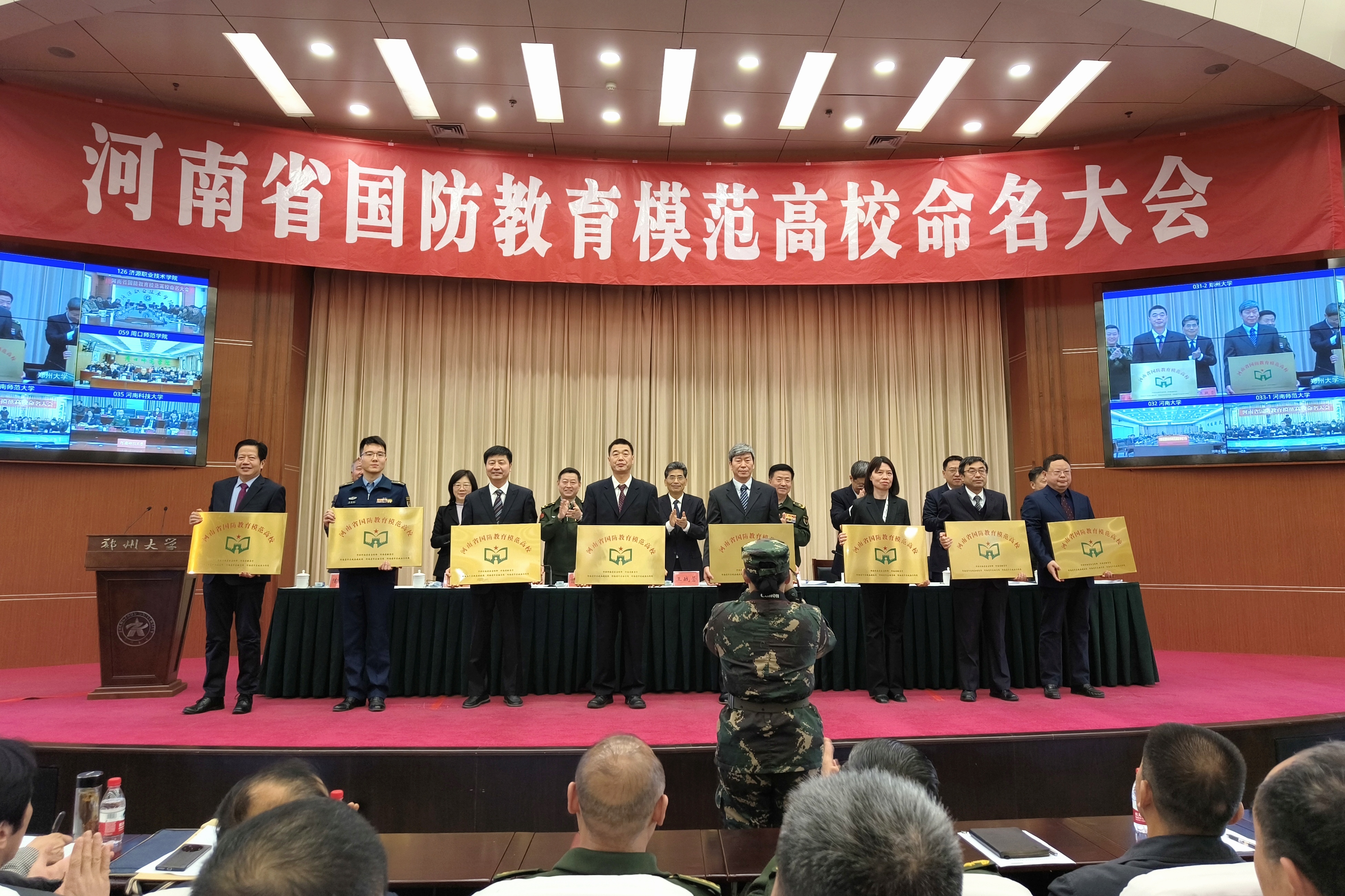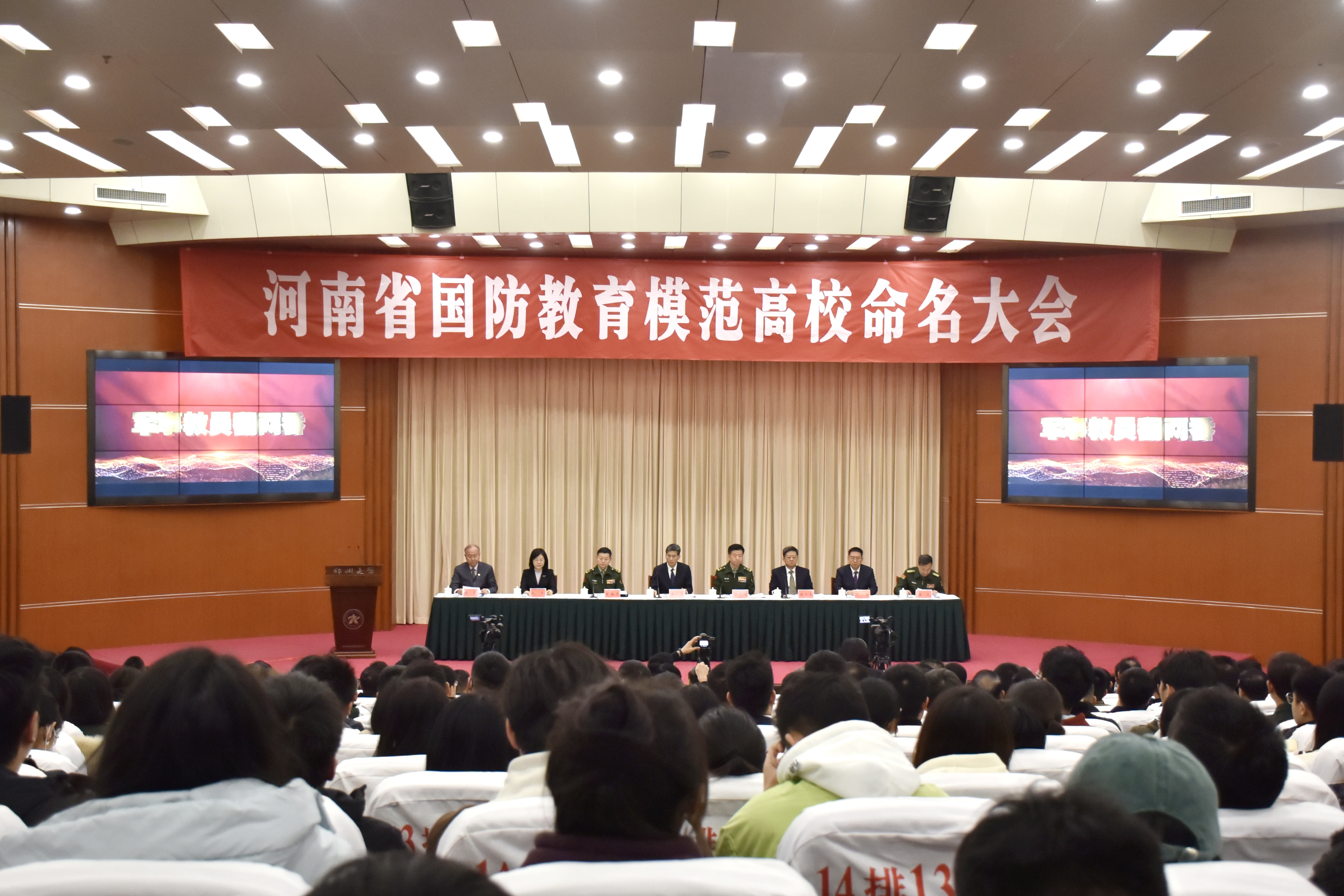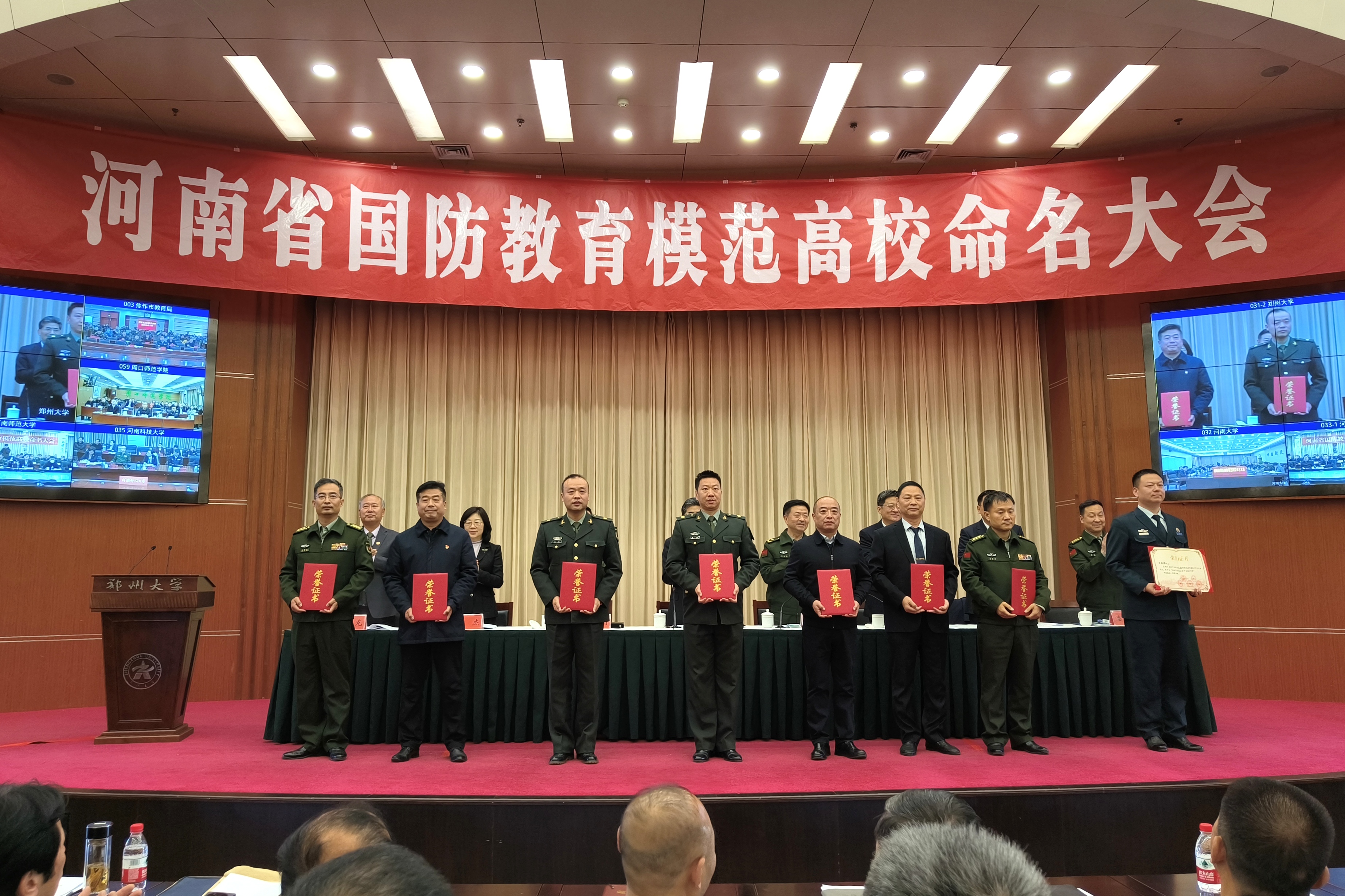 为深入学习贯彻习近平总书记关于加强全民国防教育的重要指示精神,持续推动全省高校国防教育高质量发展。11月16日,河南省国防教育模范高校命名大会在best365英国在线体育官网召开。省委常委、宣传部长王战营出席会议并讲话,省委常委、省军区少将政委徐元鸿主持会议。省军区少将副政委兼纪委书记曾海清,省政府副秘书长赵学东,省教育厅党组书记、厅长毛杰,best365英国在线体育官网党委书记别荣海出席会议。雷锋杂志社总编辑、解放军报原副总编辑陶克少将,国防大学安全学院大校副教授潘政,中国大学生体育协会国防体育分会秘书长王小宁到会指导。部分省直机关、省军区相关部门、郑州市及驻郑高校相关负责人,省国防教育师资库讲师代表和优秀学生志愿者代表现场参加会议。全省17个省辖市依托视频会议系统开设分会场。