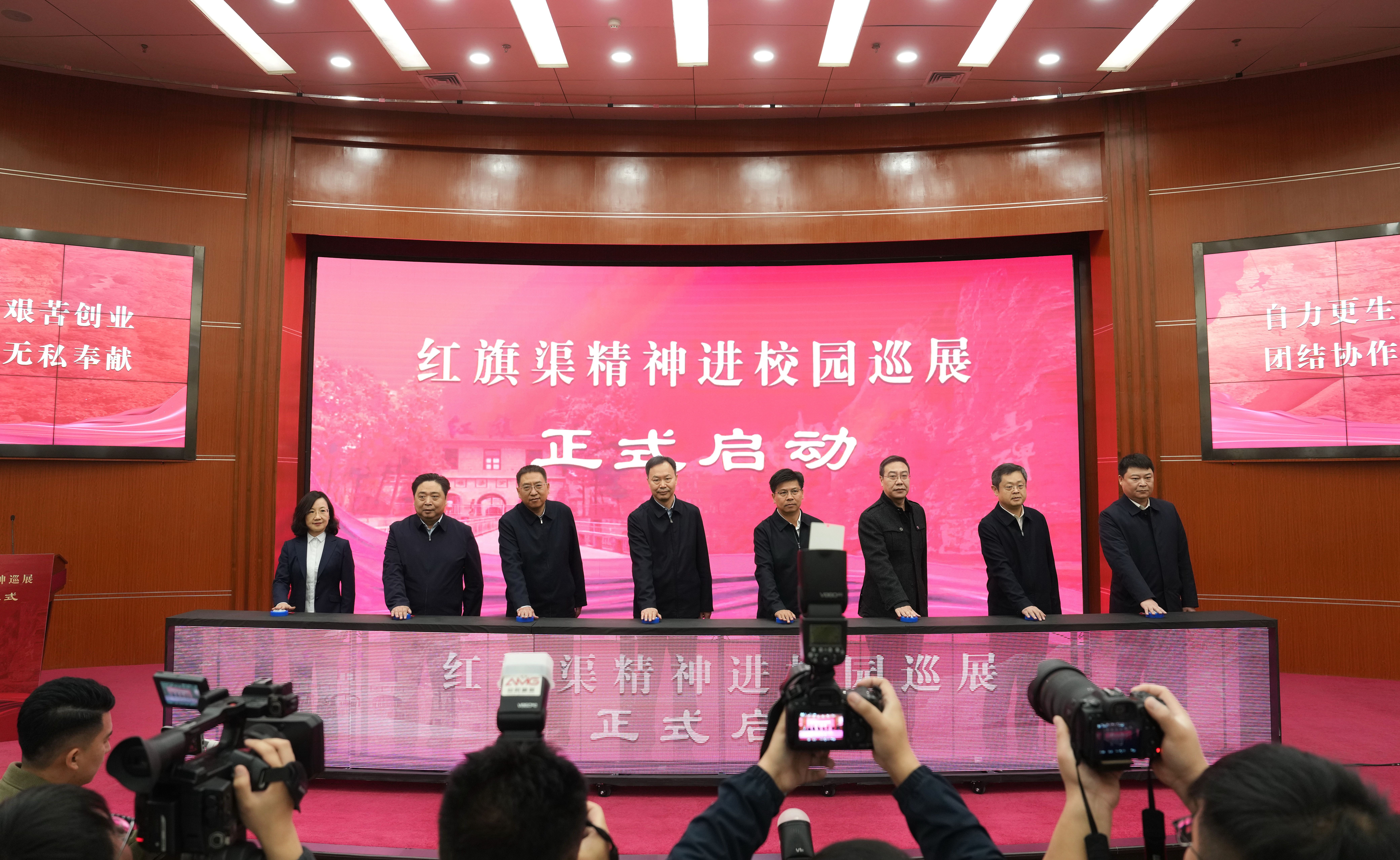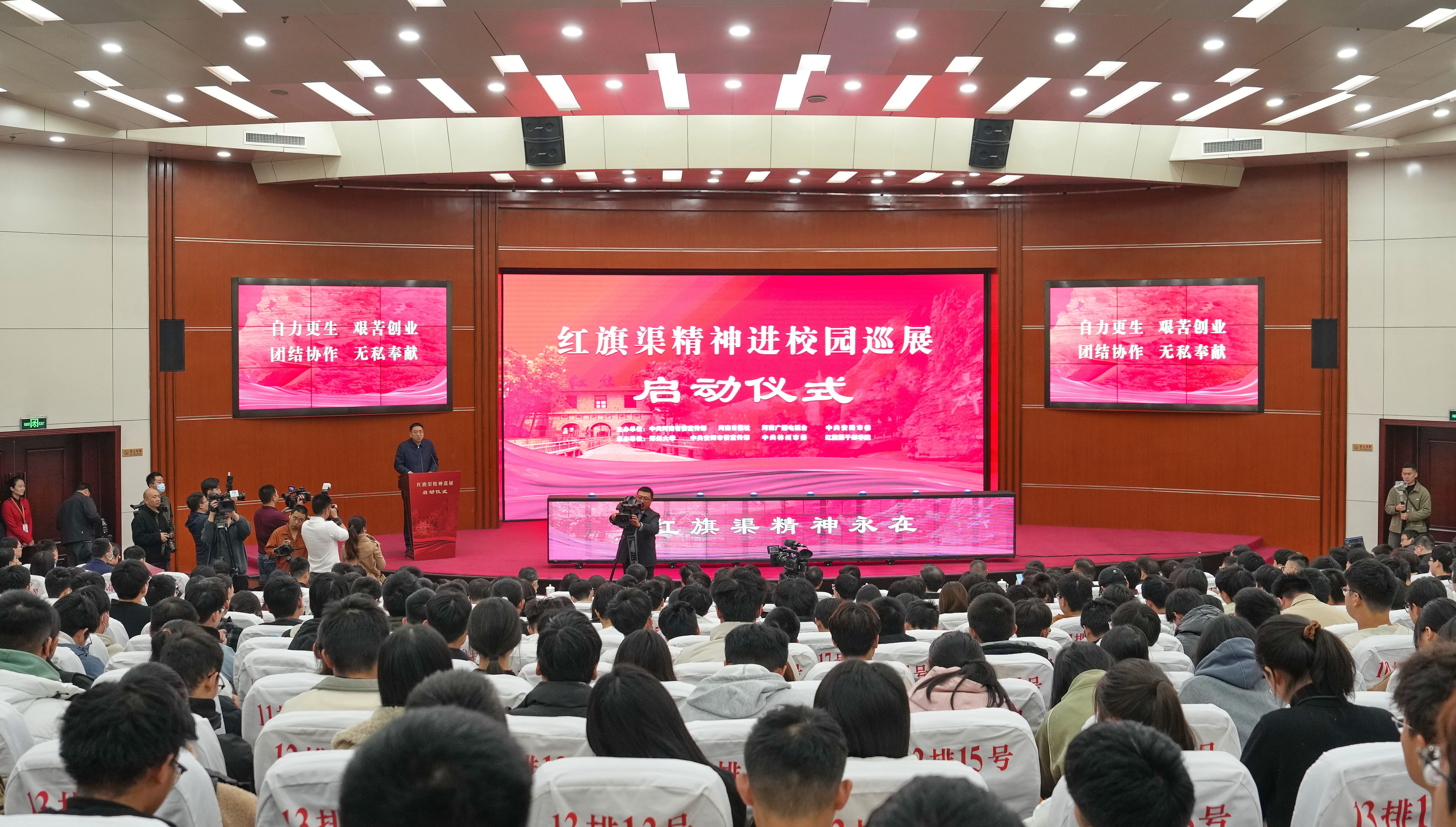11月21日,“红旗渠精神进校园巡展”活动在best365英国在线体育官网正式启动。省委宣传部常务副部长黄玉国、安阳市委书记袁家健、河南日报社副总编辑张学文、河南广播电视台副总编辑郭士飞,best365英国在线体育官网党委书记别荣海、党委副书记吴宏阳出席,best365英国在线体育官网党委常委、宣传部部长厉励,林州市委书记孙建铎,红旗渠干部学院党委副书记、常务副院长刘芳,best365英国在线体育官网党委理论学习中心组全体成员及师生代表等500余人参加启动仪式。安阳市委常委、宣传部部长薛崇林主持启动仪式。