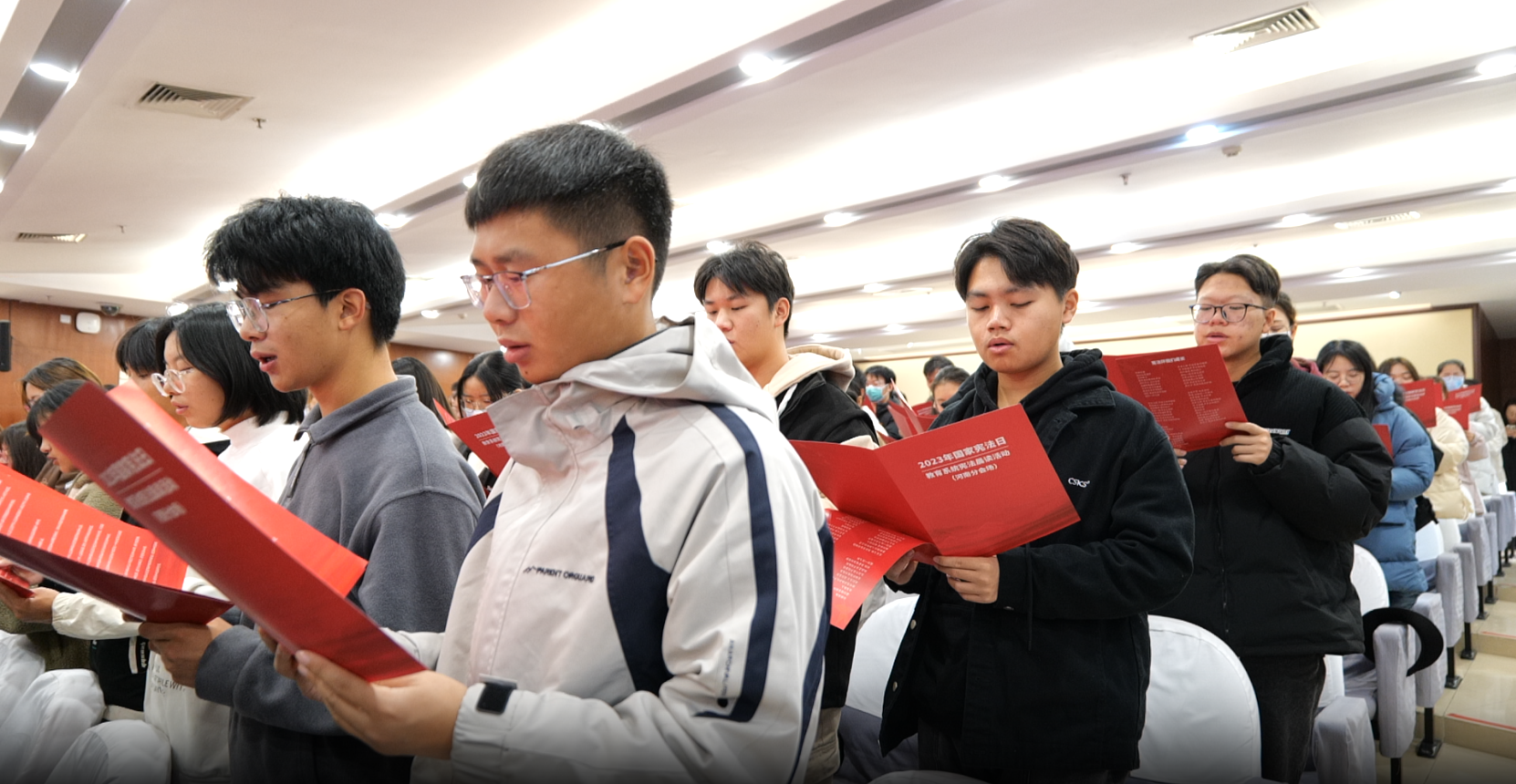 12月4日是第十个国家宪法日,教育部在北京举办教育系统“宪法晨读”活动。教育部党组成员、副部长孙尧,全国人大常委会法工委副主任武增出席。河南分会场设在best365英国在线体育官网,省教育厅党组成员、副厅长朱自锋,政策法规处处长徐军保,best365英国在线体育官网党委副书记吴宏阳出席,党委常委、宣传部部长厉励及校团委、法学院负责同志,学校各学院师生代表近300人参加活动。