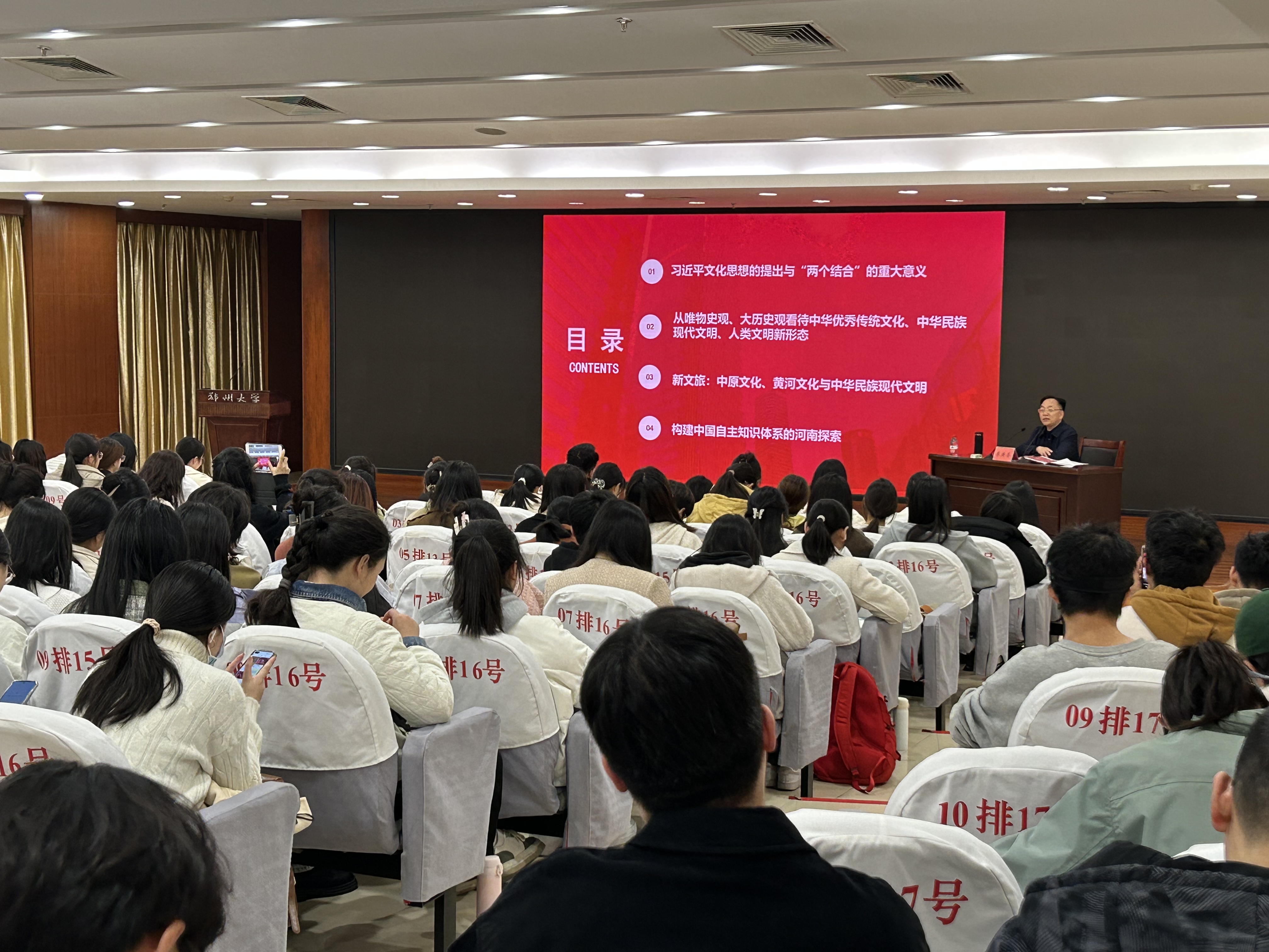 84级校友、河南省社科联主席、党组书记李庚香作专题报告