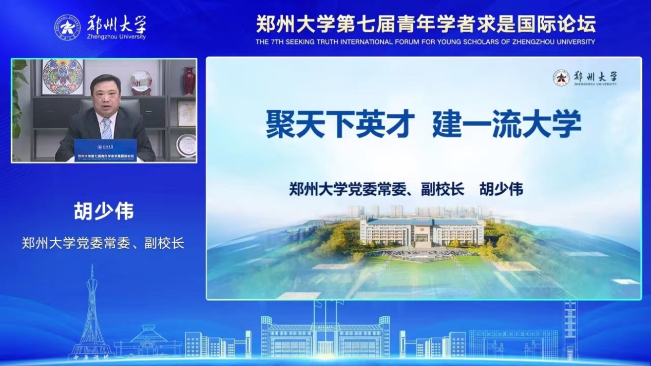 李蓬致辞。她首先向长期关注支持学校建设发展的青年学者表示衷心感谢,并简要介绍了学校的基本情况。她指出,人才是创新之核、发展之要、强校之基,建设一流大学离不开一流人才的强力支撑。近年来,学校持续优化学科布局,强化学科内涵建设,初步构建高峰凸显、高原崛起、交叉融合的学科发展格局,形成了良好的学术生态;着力在“引才”“育才”“留才”上下功夫,通过精准引才、潜心育才、真情留才,打造人才集聚高地,营造了优越的育才环境;加快建设国家超算郑州中心、“超短超强激光实验装置”等一批具有国际前沿水平的科研平台,实现“筑巢引凤”,为青年人提供了有力的支持和广阔的成长空间。她表示,该论坛为广大优秀青年学者认识郑大、了解郑大提供了有利契机,真诚邀请各位青年学者加盟郑大,与快速发展的郑大同向而行;学校将持之以恒深化人事人才改革,努力把“感情育人、事业育人、待遇育人、制度育人”升华为“生态环境育人”,助力青年学者施展才华、实现价值、成就梦想。