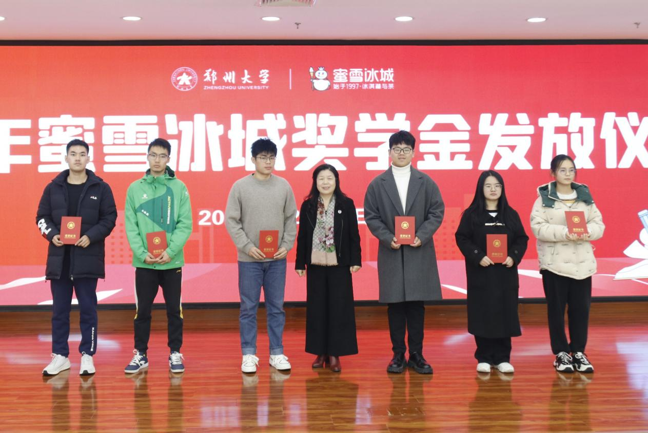 近日,2023年度“蜜雪冰城奖学金”发放仪式在主校区举行。蜜雪集团公共事务高级总监刘伟伟、best365英国在线体育官网副校长张倩红出席。党委学生工作部、对外联络办公室、新闻与传播学院、生命科学学院等相关单位负责人及获奖学生代表参加活动。