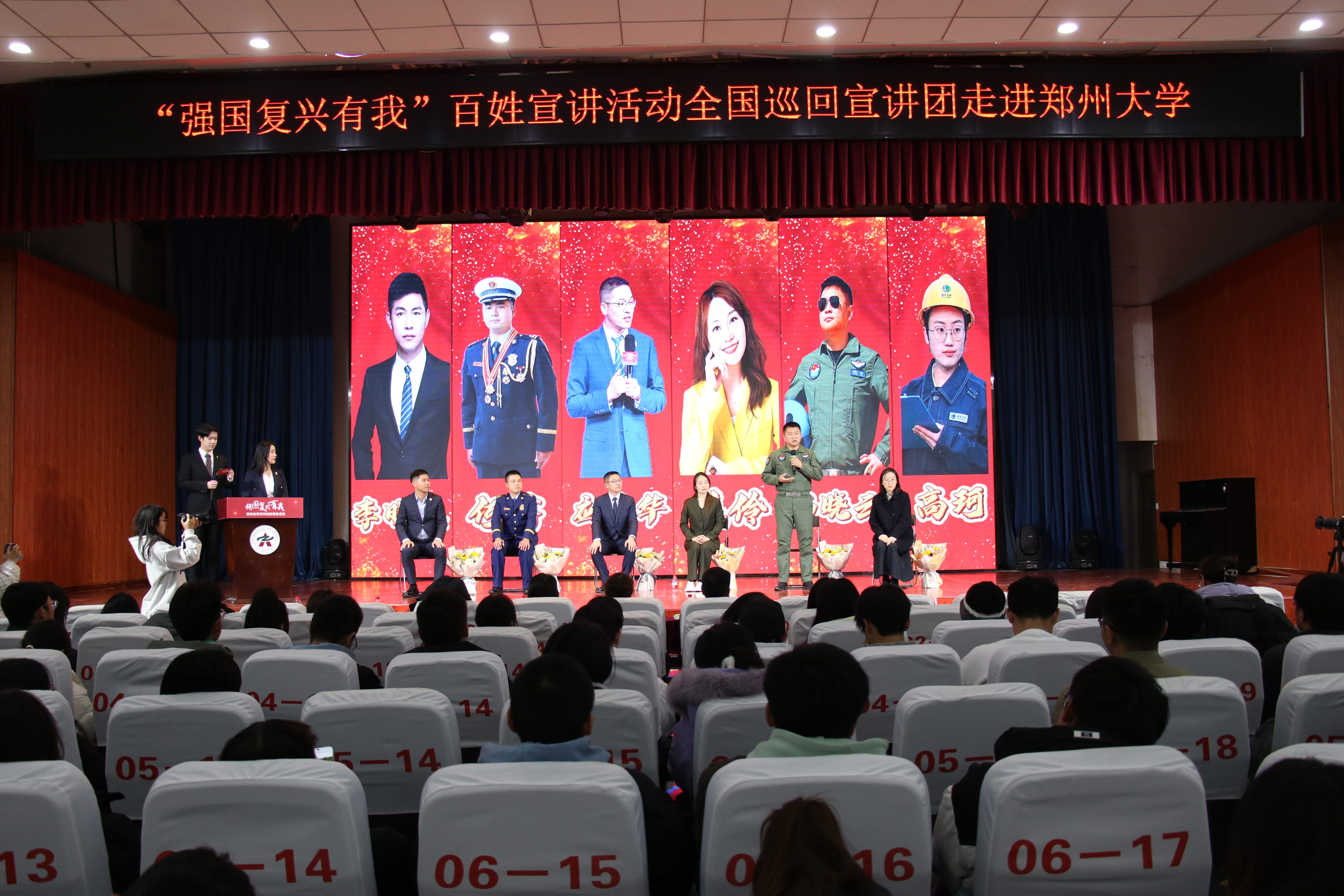 近日,由中央宣传部、全国总工会、共青团中央、全国妇联、共青团河南省委主办的“强国复兴有我”百姓宣讲系列巡回报告活动走进best365英国在线体育官网。宣讲采取“主题宣讲+互动交流”的形式进行,6名来自各行各业的青年代表结合自身成长经历和行业见闻,围绕“学思想、强信心、奋力推进中国式现代化”,和郑大的青年师生们展开了一场面对面的交流。