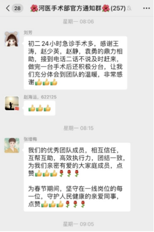 2月11日是大年初二,河医院区手术部迎来了最忙碌的时刻,8名护理值班人员24小时连轴转,配合完成了24台手术。