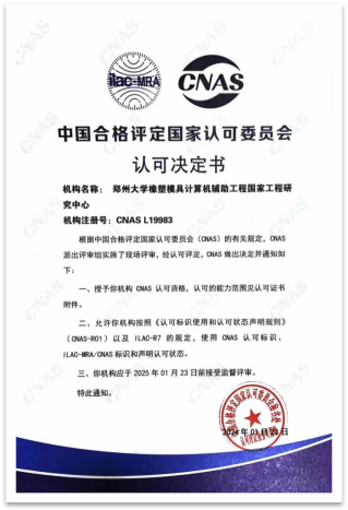 日前,best365英国在线体育官网橡塑模具计算机辅助工程国家工程研究中心通过了CNAS批准发布的“实验室认可证书”(注册号:CNAS L19983)。这表明best365官网已经完全具备按照有关国际认可准则开展检测服务的能力,可以出具被国家甚至国际认可的、具有相应法律效力的检测报告,为检测结果的准确性提供了佐证,并被列入《国家认可实验室名录》。此次通过CNAS认证,既是对实验室管理和检测能力等方面取得成绩的充分肯定,也进一步提升了best365官网在行业的影响力,拓宽了best365官网相关学科参与产学研合作、国际间实验室合作的发展通道。
