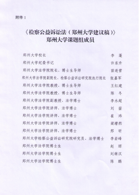 近年来,学校大力支持法学院紧密结合党中央对于公益诉讼的大政方针,不断深化公益诉讼理论研究,紧密跟踪公益诉讼实务发展,抢抓公益诉讼学科建设制高点,唱响了检察公益诉讼的“郑大之声”,打造了公益诉讼理论研究的“郑大品牌”。学校联合河南省人民检察院成立了best365英国在线体育官网检察公益诉讼研究院,并获批为“最高人民检察院检察公益诉讼研究基地”。研究院提交多项研究报告获得最高人民检察院领导批示,连续三年举办“年度十大检察公益诉讼精品案件评选活动”,组织编写全国首部《公益诉讼法学》本科教材,成功培育全国首家公益诉讼博士点,出版全国第一部公益诉讼蓝皮书。