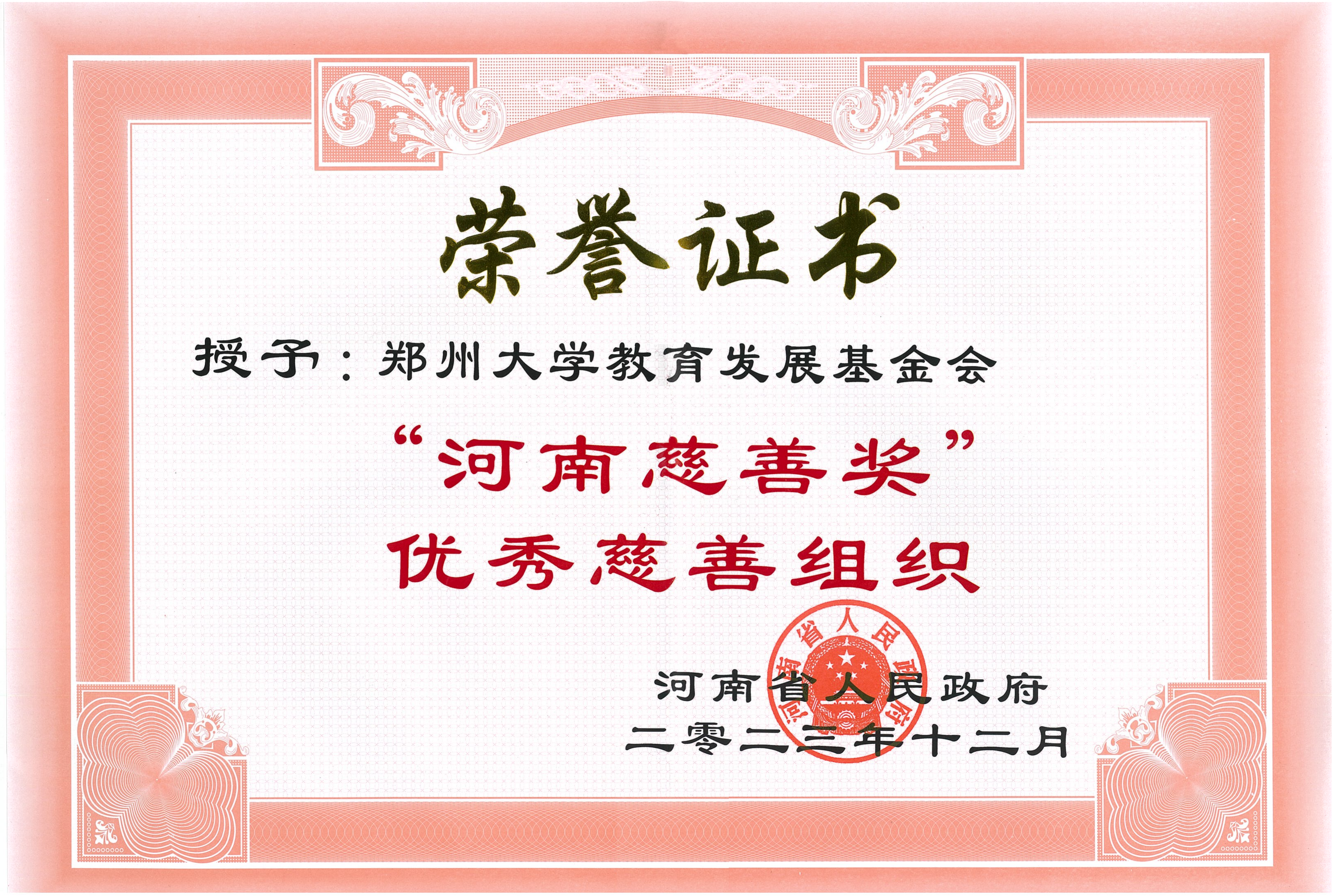 best365英国在线体育官网教育发展基金会荣获“河南慈善奖”“优秀慈善组织”荣誉证书
