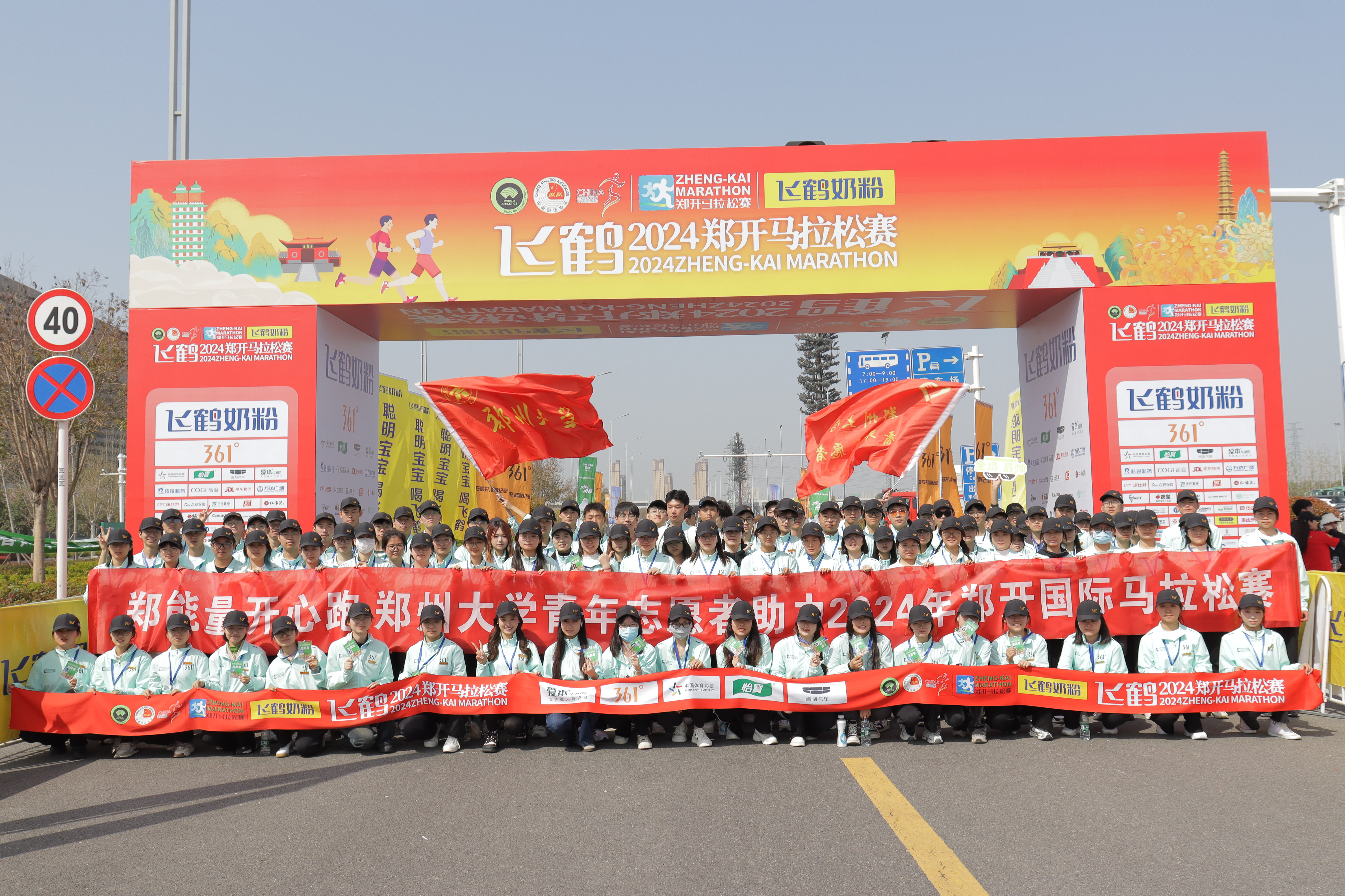 助力“郑开国际马拉松”best365英国在线体育官网青年志愿者合影”