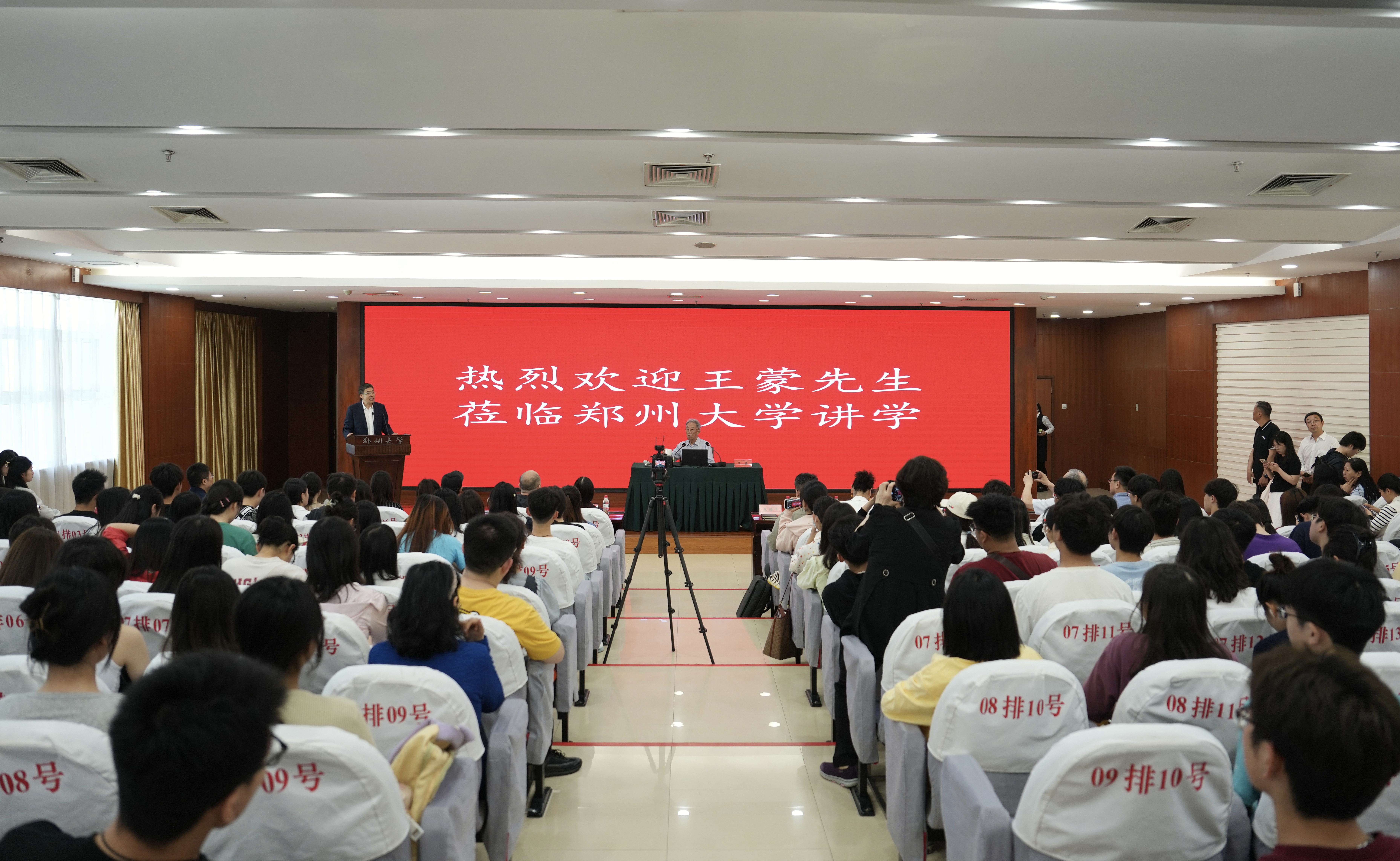 报告会开始前,两名学生朗诵王蒙代表作《青春万岁》同名序诗,向笔耕不辍70载、90岁高龄的王蒙先生致敬,展现了郑大学子昂扬向上、踔厉奋发的青春风貌。