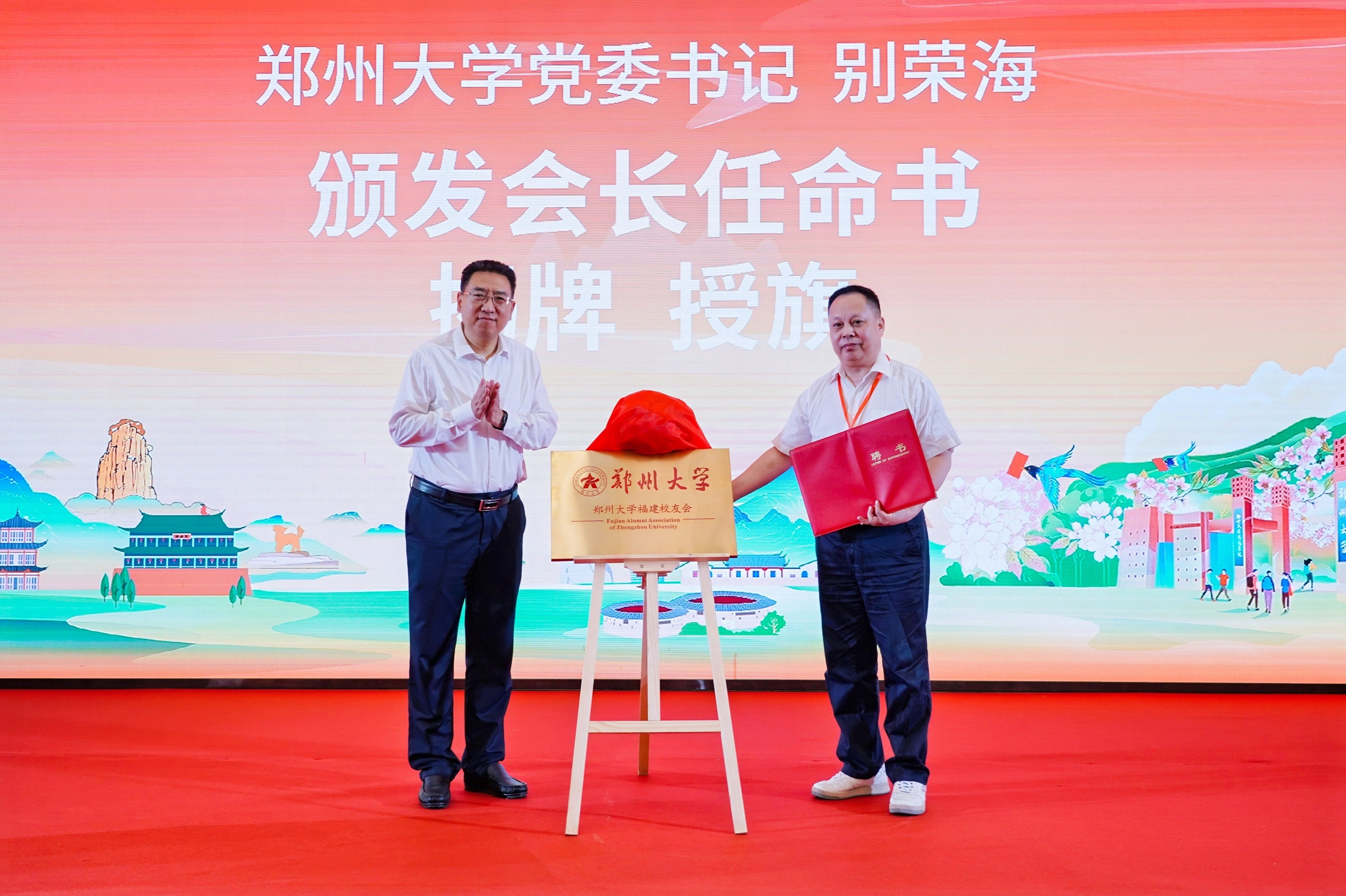 校党委书记别荣海为福建校友会揭牌、授旗,为会长颁发任命书