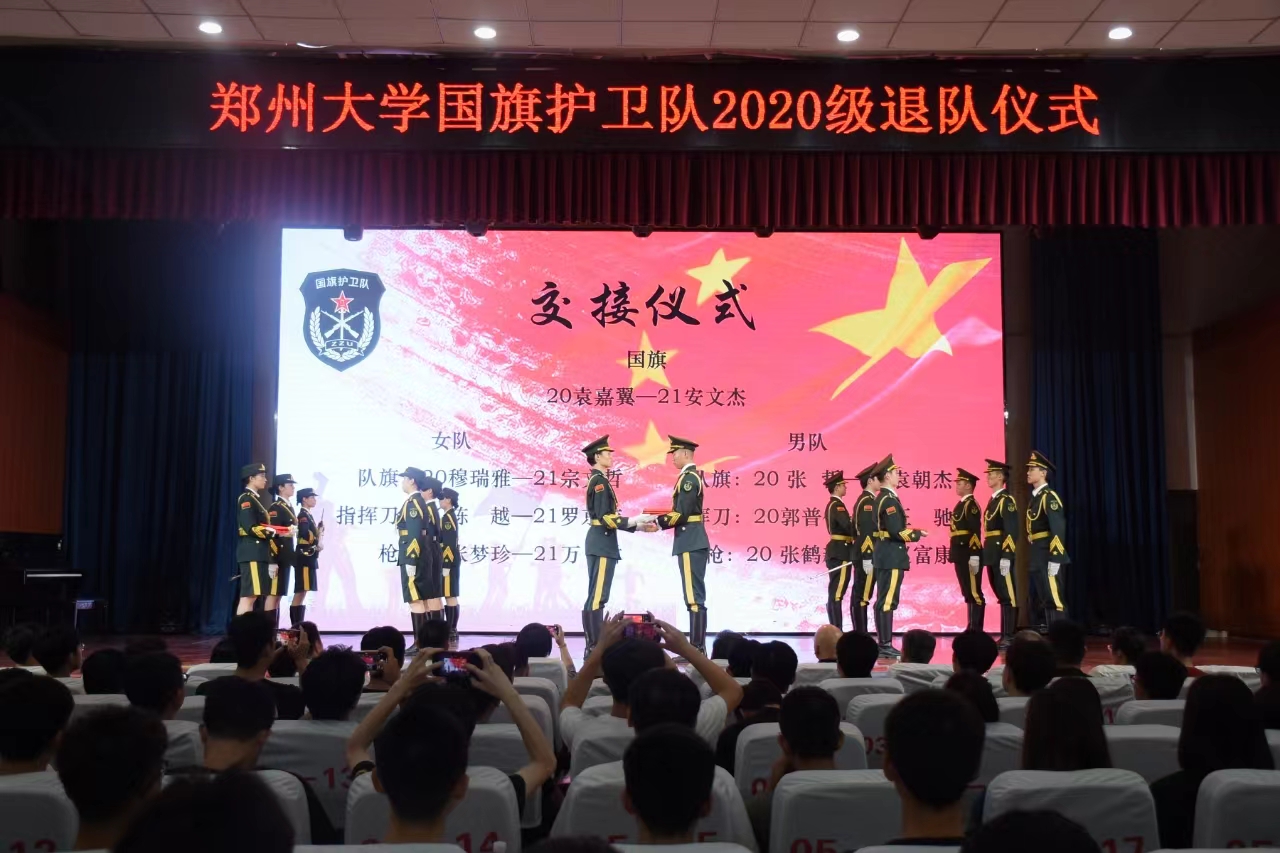 best365英国在线体育官网国旗护卫队是学校精神文明建设的重要窗口,是学校爱国主义教育的一面旗帜,是学校国防思政一体化工作品牌创建的重要平台。自2004年组建,发展至今已有20年的历史,是全国高校具有较大影响力的国旗护卫队。20年的传承与坚守,承载着岁月的积淀,铭记着永恒的执着,镌刻着不懈的追求。一批批队员用赤诚守护着五星红旗,用行动凝聚着郑大学子的爱国情怀,这支队伍已锻造成为一支召之即来、来之能战、战之必胜的“硬核”队伍。进入新的发展阶段,队伍将继续砥砺前行,深化国防思政育人实效,把队伍建设融入到助力打好学科建设攻坚战的实践中,为开创一流大学建设新局面作出更大贡献。