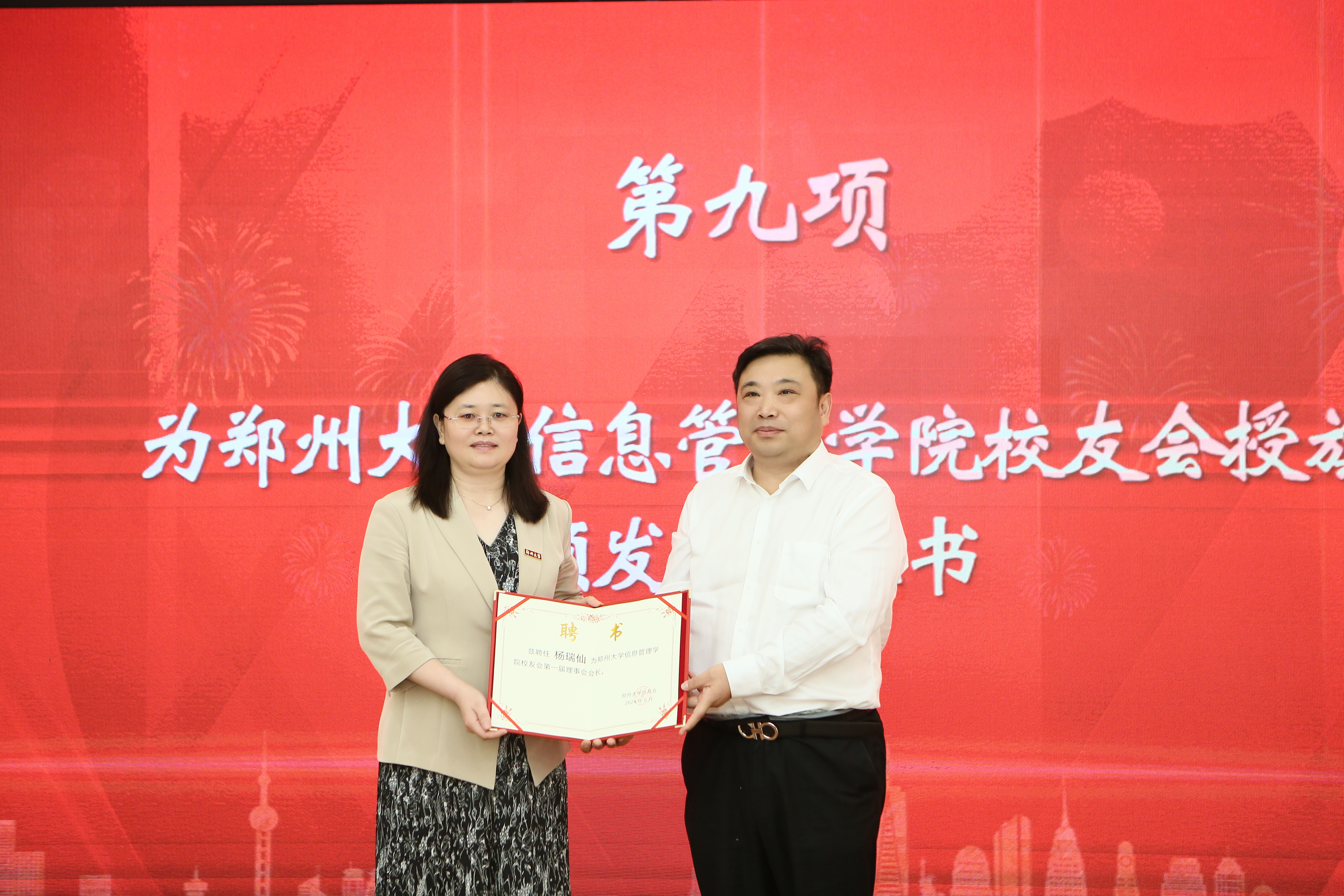 许东升在致辞中对信息管理学院校友会的成立表示祝贺,向广大来宾和校友们表示亲切的慰问,并简单介绍了学校发展近况。他指出,信息管理学院校友会将成为密切联系母校与校友的桥梁与纽带,要充分发挥积极作用,团结校友、凝聚合力、互利共赢,着力推动发展新质生产力,在以中国式现代化全面推进强国建设、民族复兴伟业的新征程上,展现新面貌、作出新贡献,奋力谱写高质量发展的郑大篇章。