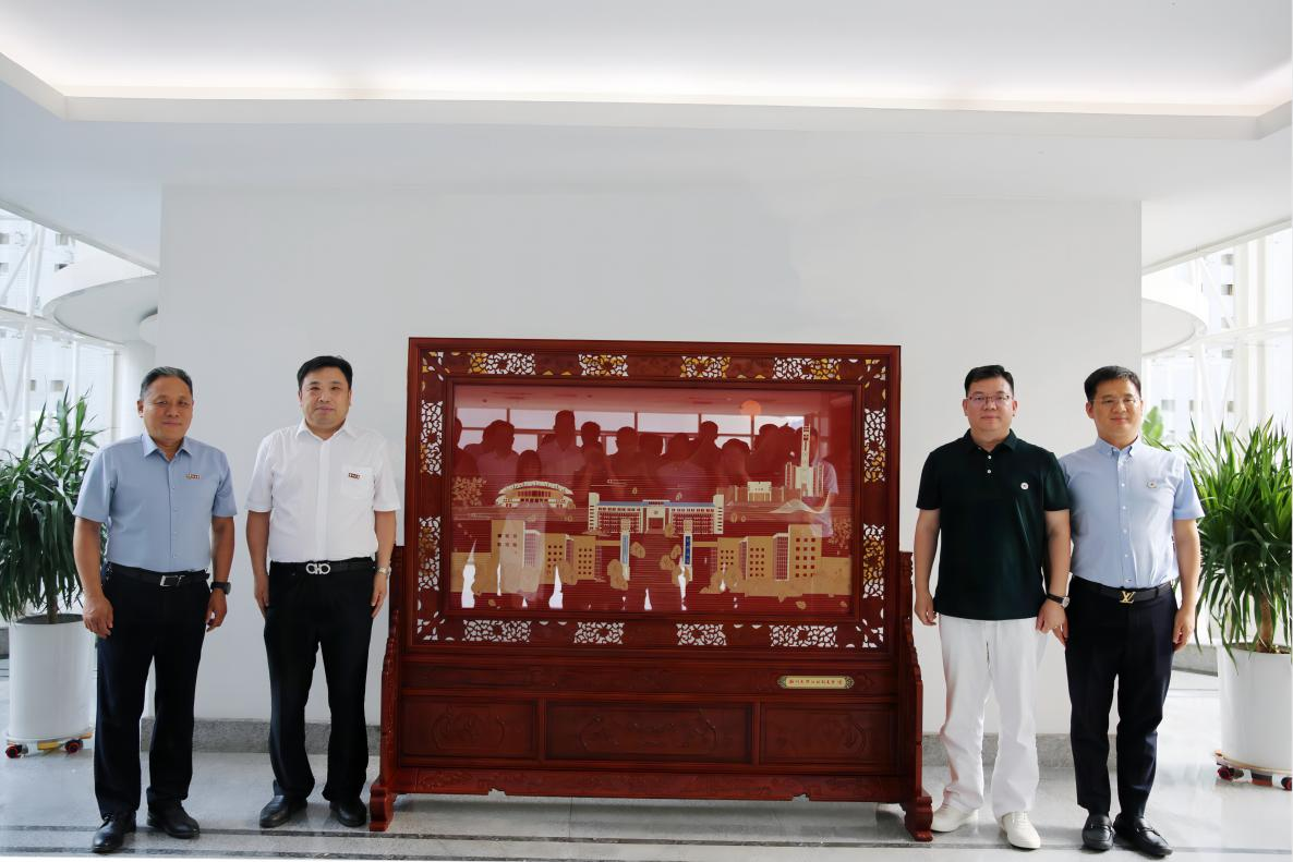 “郑大印象”云锦红木屏风揭幕仪式现场