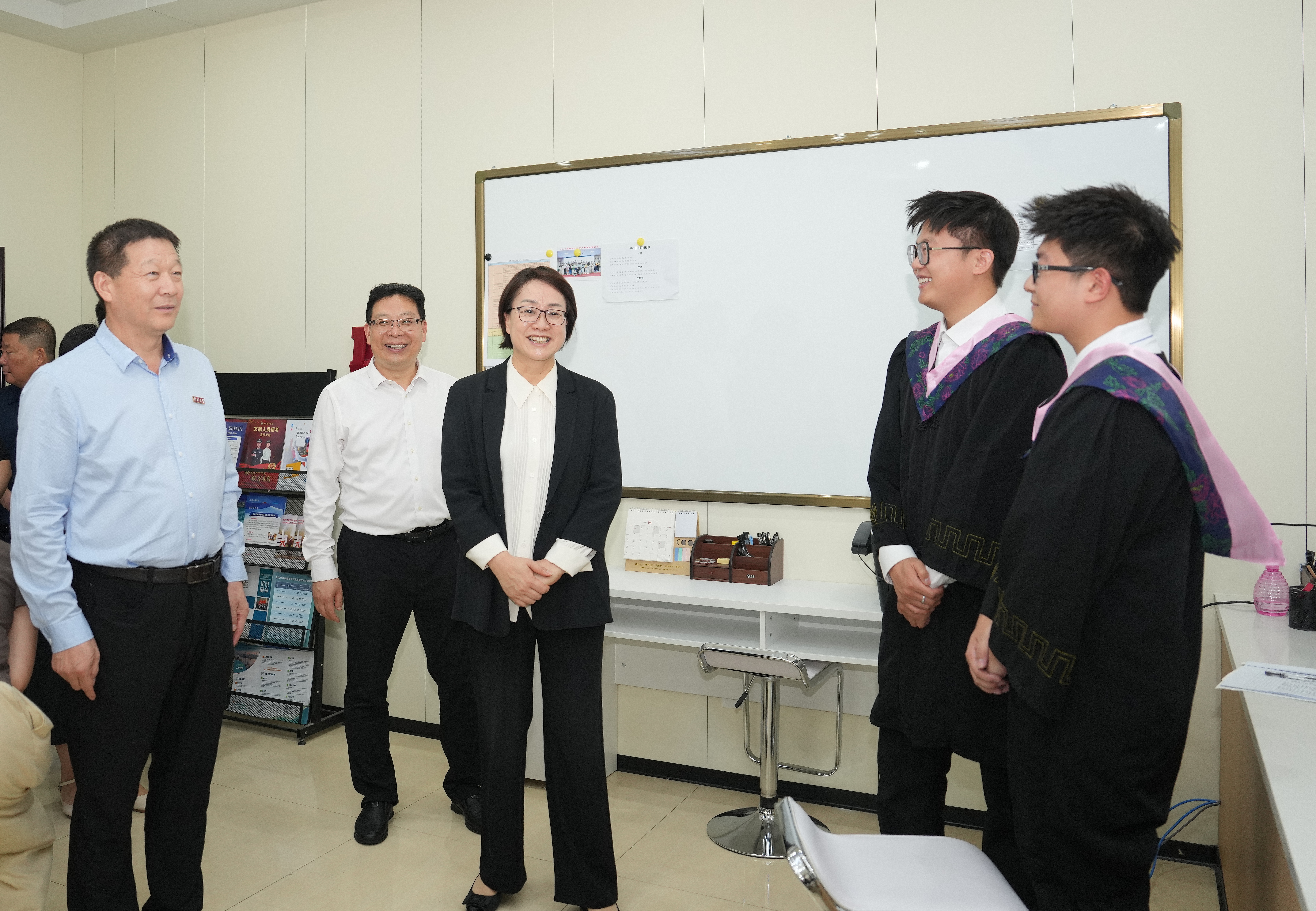 随后,她来到“乐业小站”,与办理手续的毕业生进行了亲切交流,对他们找到心仪的工作表示祝贺,希望他们到新的岗位不负重托、再接再厉,实现人生价值,并对做好2024届毕业生就业工作提出三点要求:一是要提高政治站位,把就业工作摆在突出位置。毕业生就业集中体现了教育的政治属性、战略属性和民生属性。当前正值2024届毕业生就业的冲刺期,全校上下要提高思想认识,凝聚思想共识,切实增强做好毕业生就业工作的使命感责任感紧迫感,准确把握面临的形势和任务,坚定信心,聚焦重点,加力加快推动工作落地落实,千方百计打好“百日冲刺战”。二是要多方协调联动,形成全员促就业工作格局。要压紧压实各方责任,切实发挥学校全员参与的“一盘棋”就业工作机制,着眼社会产业发展、用人单位需求和毕业生求职意愿,用好社会、校友资源,挖掘优质岗位,做好“就业质量提升工程”“就业创新品牌项目”“三个三帮扶模式”等特色举措落地见效。三是要坚持以生为本,落实落细就业指导与服务。要积极回应毕业生最直接、最关心的问题,做好就业服务平台“一站式”服务功能建设,真正做到服务高效、一次办好,打造窗口名片,构建一流高效的服务学生载体。