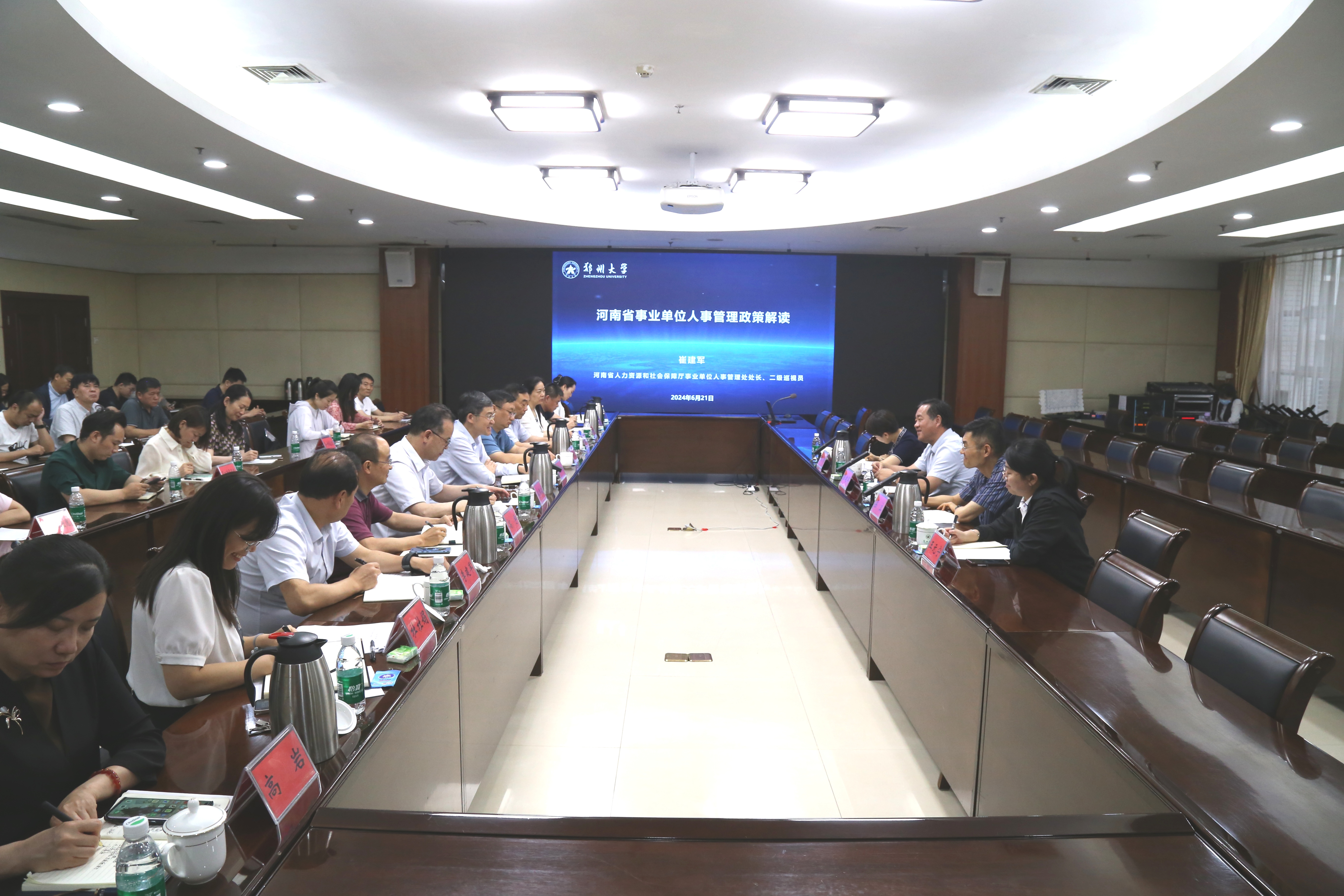 为进一步提升学校人事管理工作水平和服务质量,人事部持续开展综合素质能力提升系列培训,近日,省人社厅二级巡视员、事业单位人事管理处处长崔建军一行受邀来校作人事政策解读宣讲。副校长王海杰出席并主持会议,河南医学院,医学科学院、天健先进生物实验室(best365英国在线体育官网),学校第一、二、三、五附属医院人事部门等部门相关负责同志,以及人事部(党委教师工作部、党委人才办公室)全体人员参加。