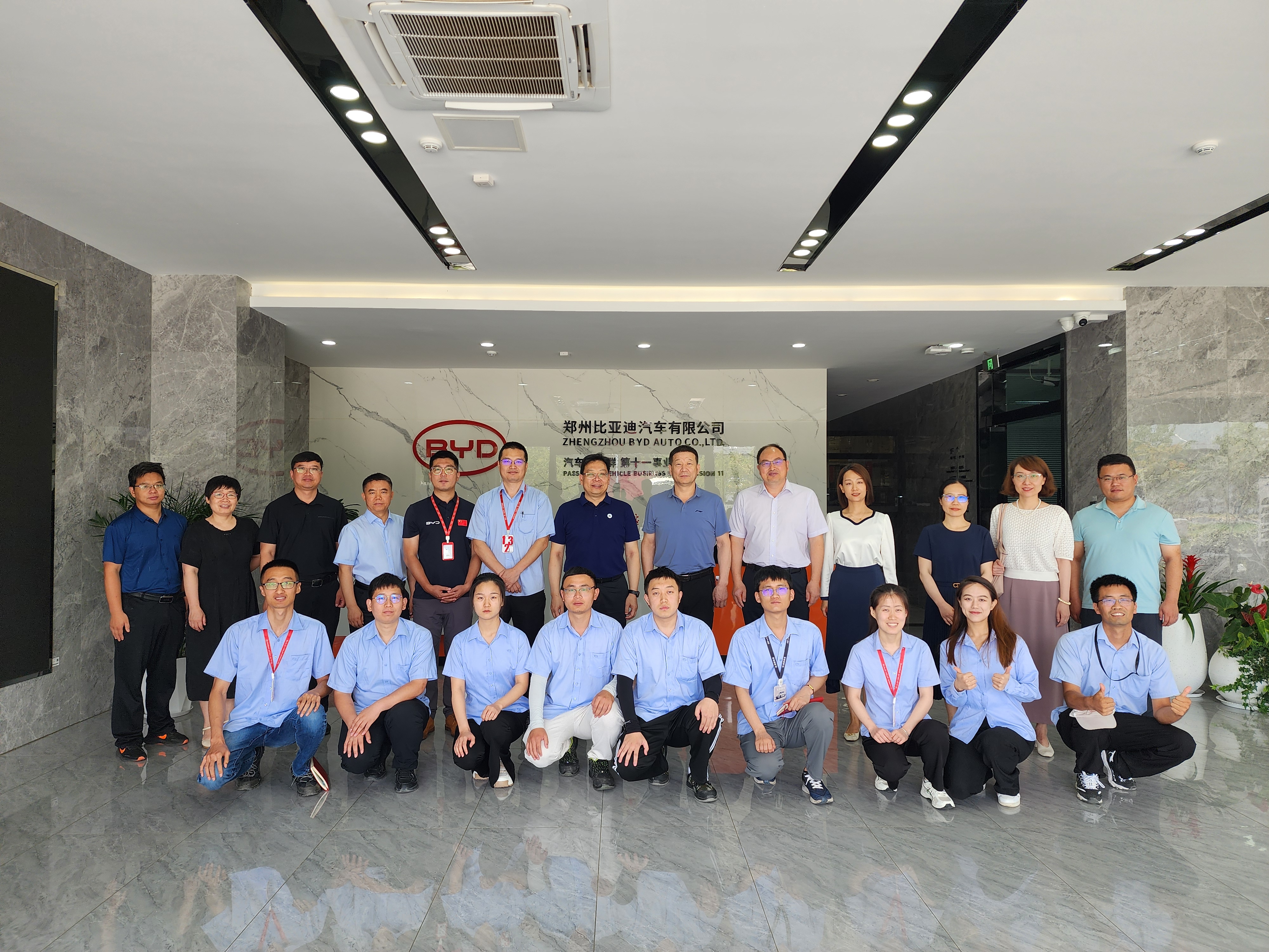 王利国一行与比亚迪公司领导及郑大毕业生合影