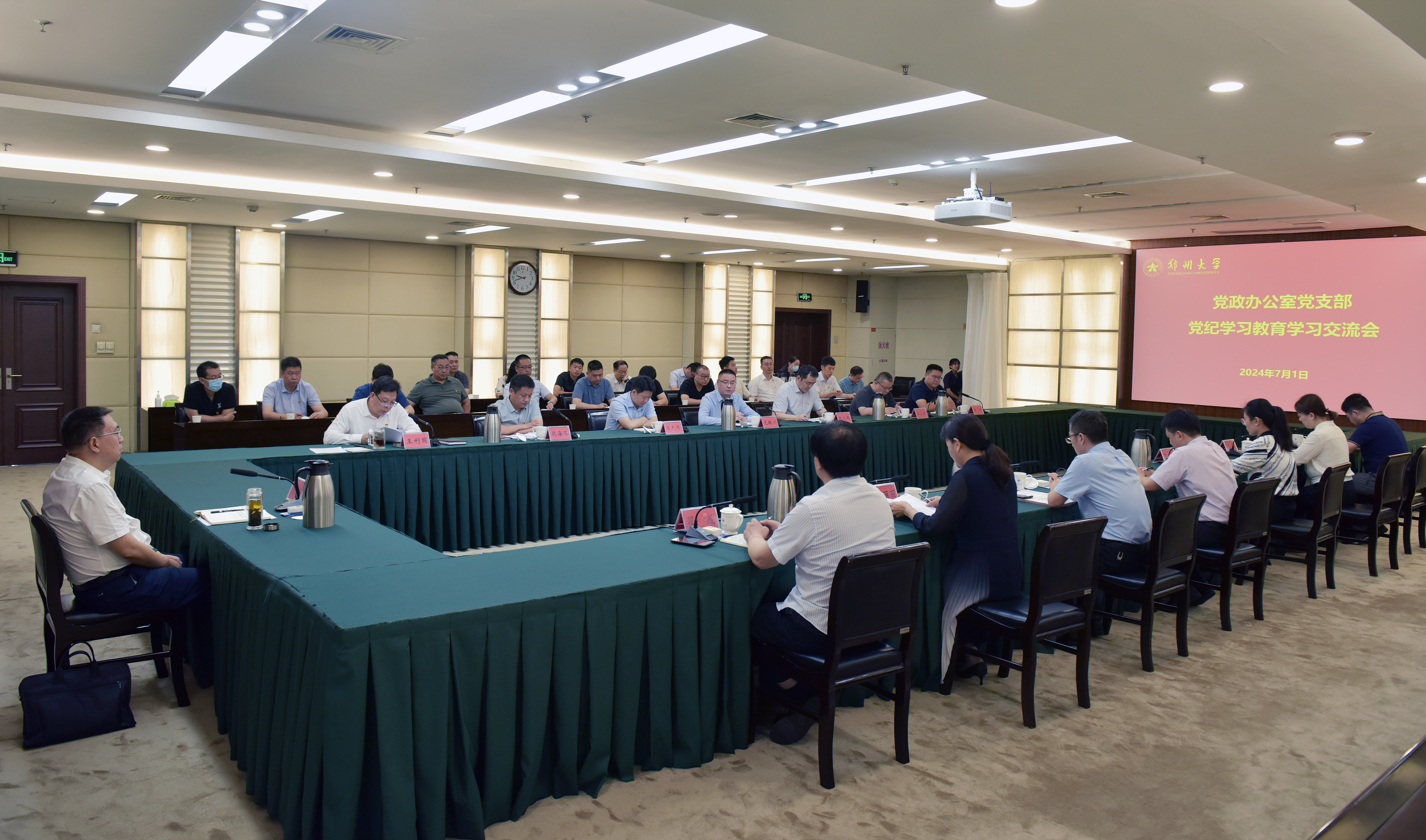 7月1日,校党委书记别荣海到所在的党政办公室党支部,同支部党员一起认真学习习近平总书记关于全面加强党的纪律建设的重要论述,交流学习《中国共产党纪律处分条例》的心得体会,推动党纪学习教育走深走实。党委副书记、党政办公室党支部书记王利国主持,机关党委负责同志、党政办公室支部党员参加学习交流。