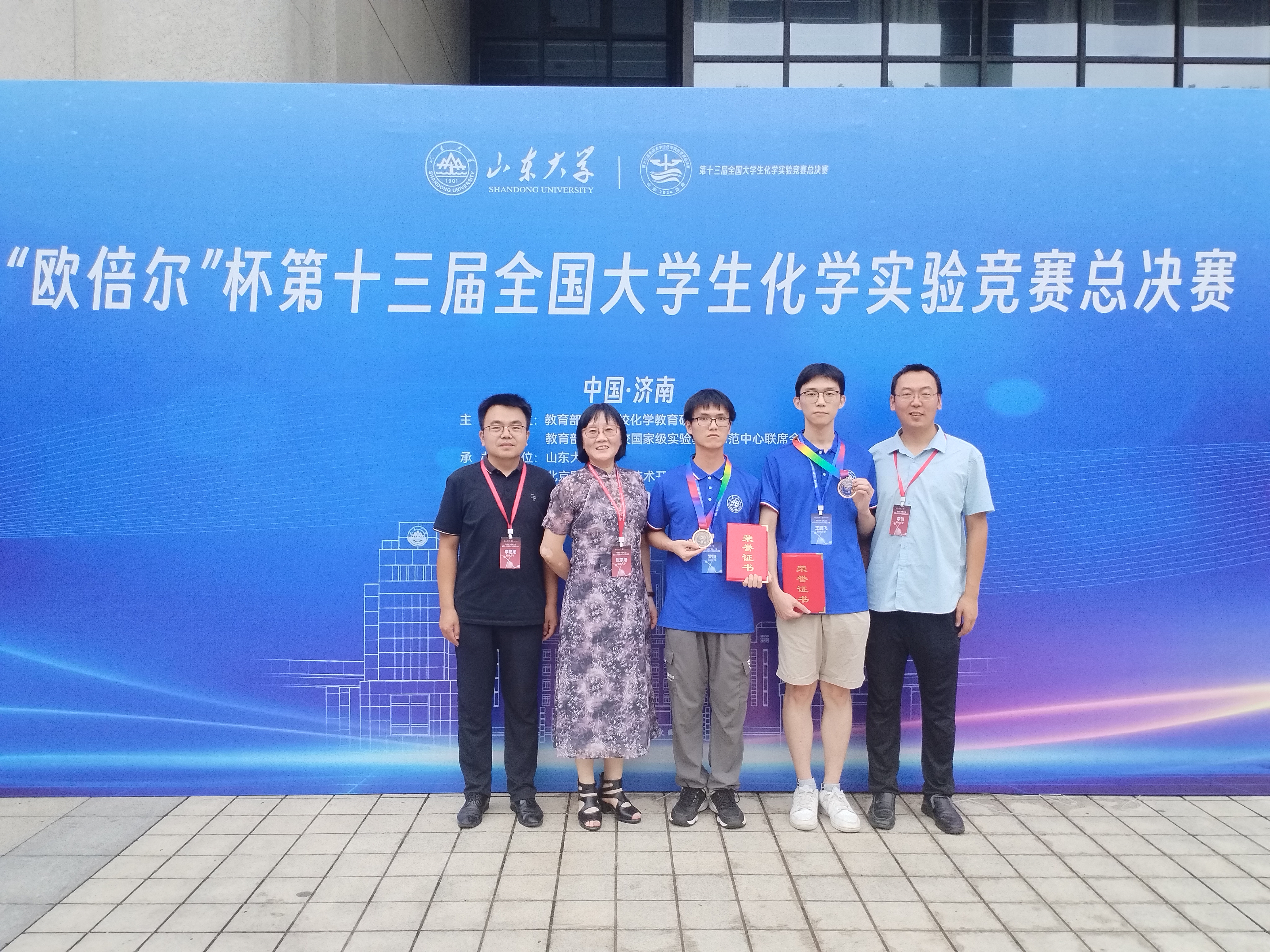 8月15日至18日,由教育部高等学校化学教育研究中心和教育部高等学校国家级实验教学示范中心联席会共同主办,山东大学承办的第十三届全国大学生化学实验竞赛总决赛在济南举行。来自全国129所高校的代表队参加比赛,best365官网化学学院2022级拔尖班本科生罗翔和王鹏飞代表学校参赛,并双双获得全国一等奖(最高奖)。