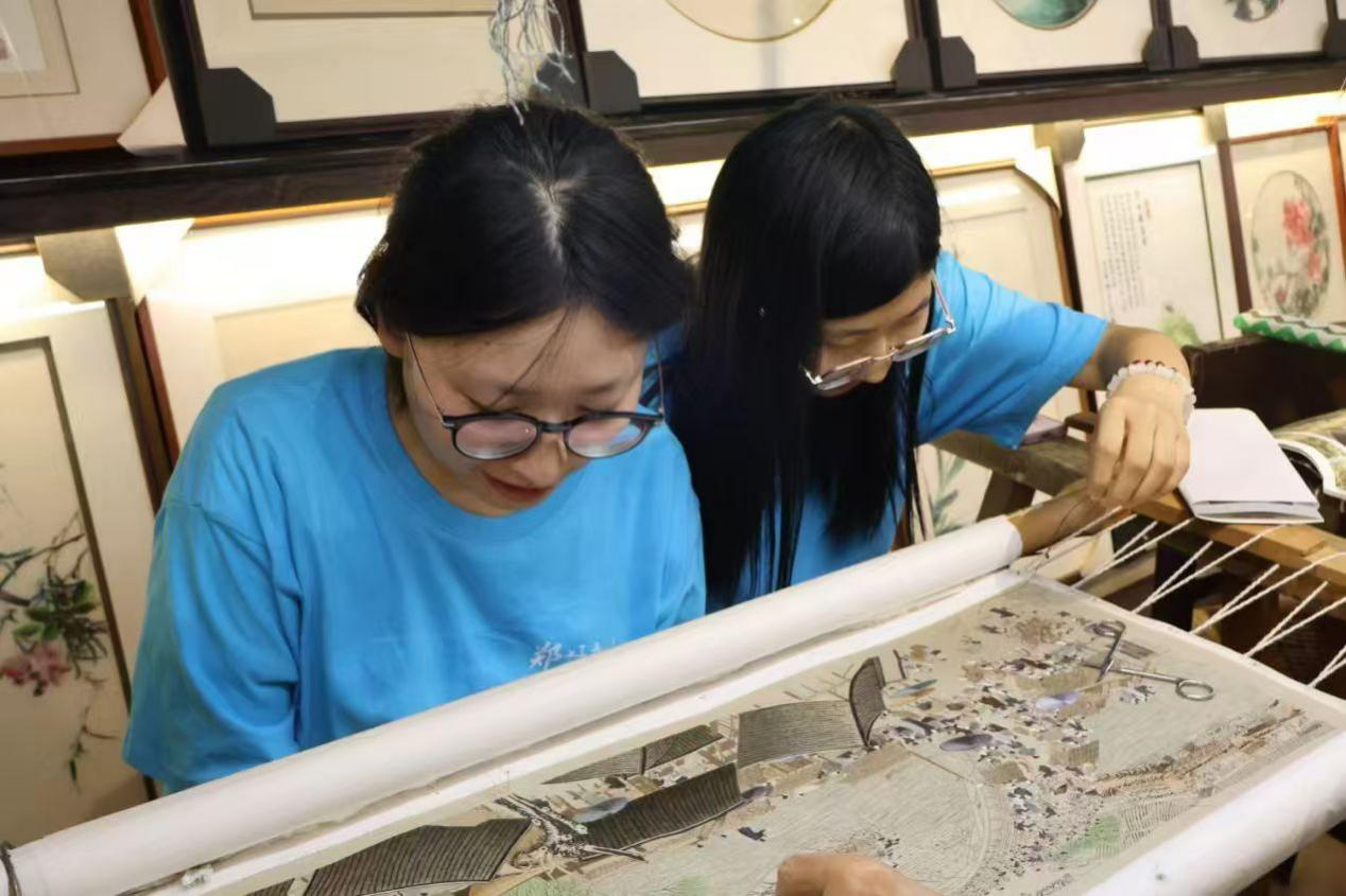 习近平总书记曾说,优秀传统文化是一个国家、一个民族传承和发展的根本,如果丢掉了,就割断了精神命脉。新闻与传播学院“绣映汴梁”实践队来到河南开封,深入探访了宋绣博物馆、开封汴绣厂及锦绣堂等,聆听王素花老师满怀深情地细数着每一幅精美绝伦的绣品过往的故事。与汴绣艺术的传承者与发扬者郭宁老师交流了汴绣的技法特点、适应新时代的创新发展之路,见证了汴绣的璀璨光辉。不仅如此,实践队员们还亲身参与体验汴绣制作的全过程,深刻理解到了传统手工艺的复杂与艰辛。