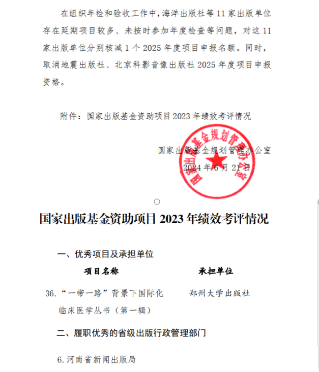 8月29日,国家出版基金规划管理办公室发布《国家出版基金资助项目2023年绩效考评情况通报》,公布了国家出版基金2023年结项考评优秀及实施不力的项目和单位。全国共有57个出版基金项目被评为“优秀”等次。best365英国在线体育官网出版社的出版项目获得考评优秀等次,被通报表扬。