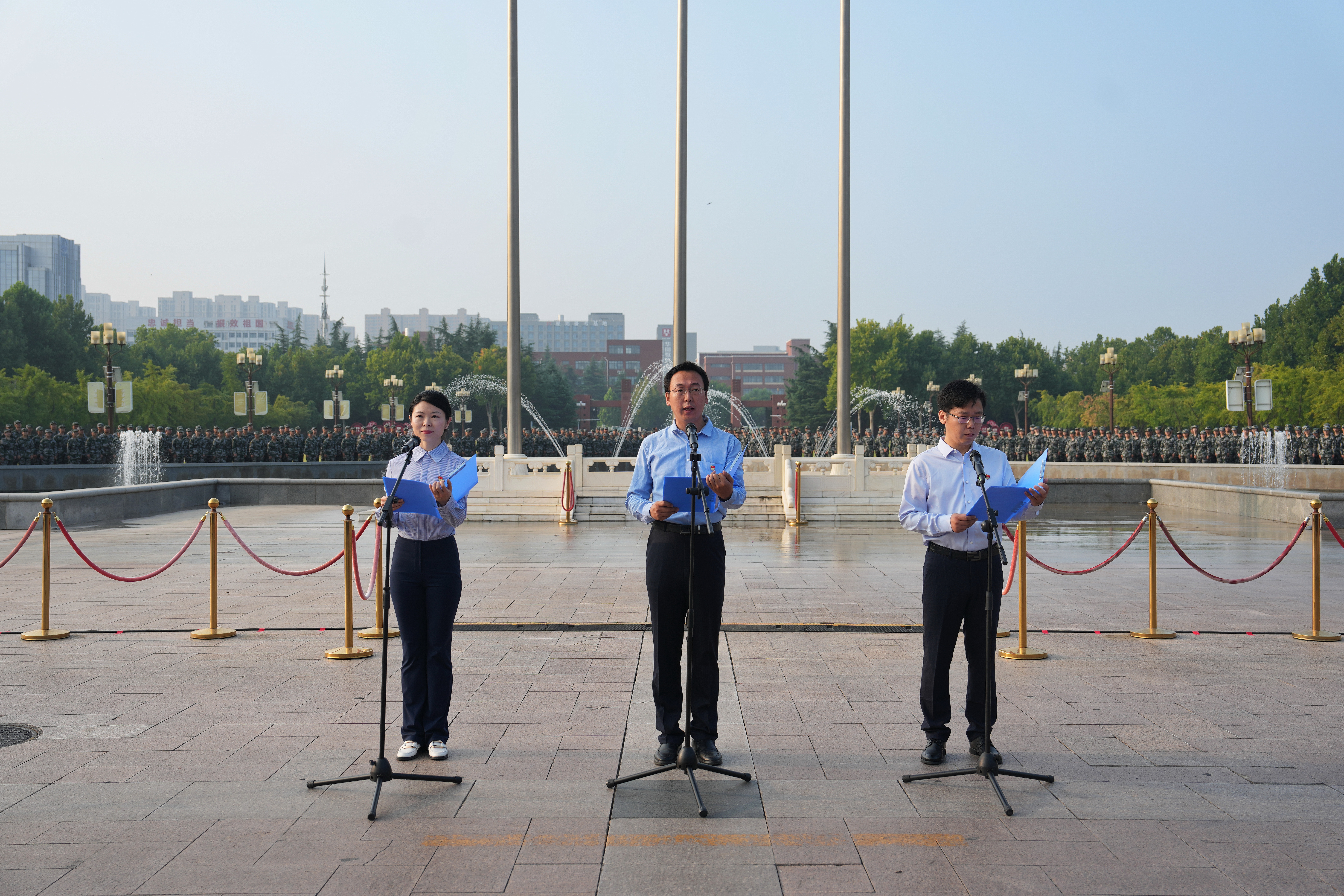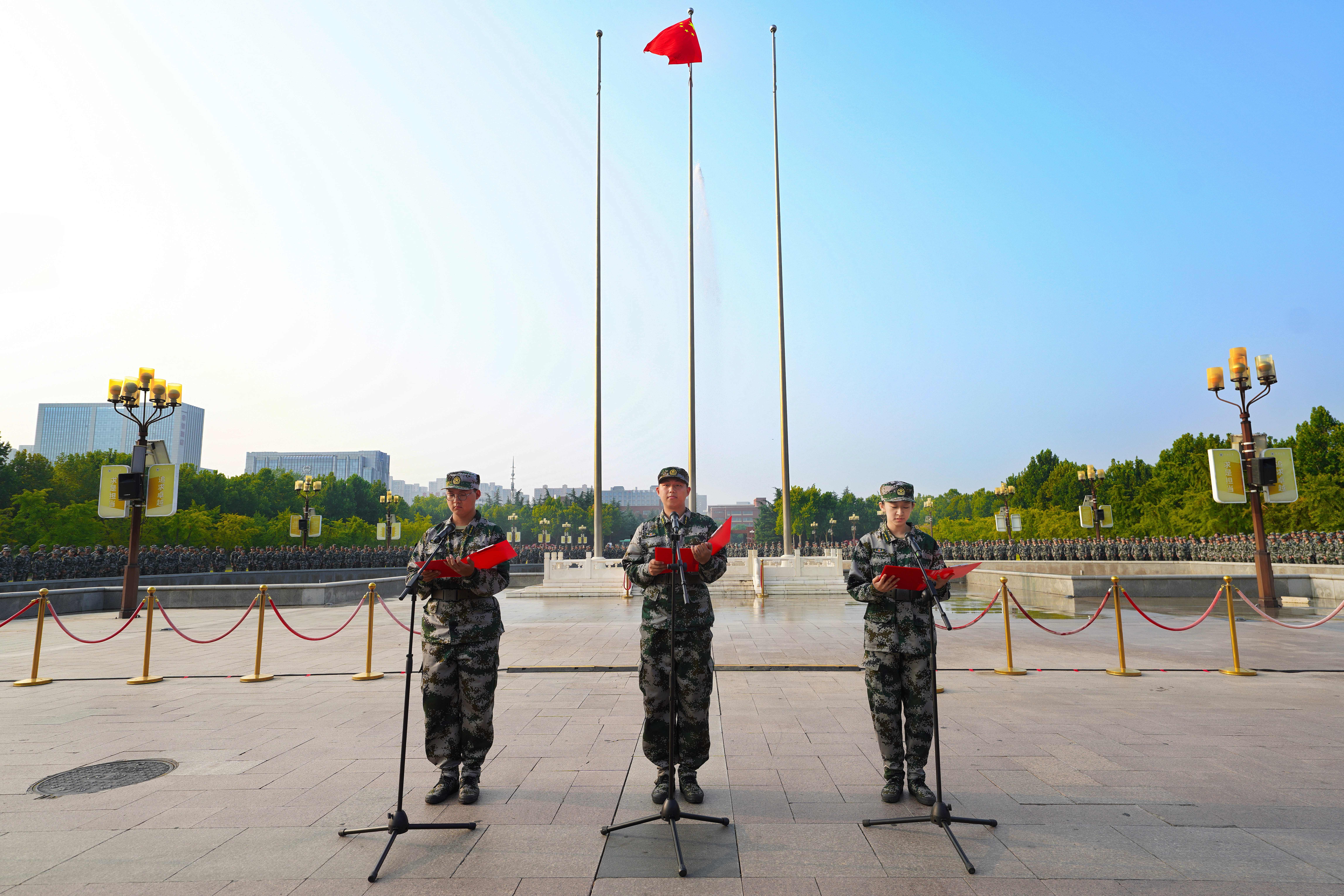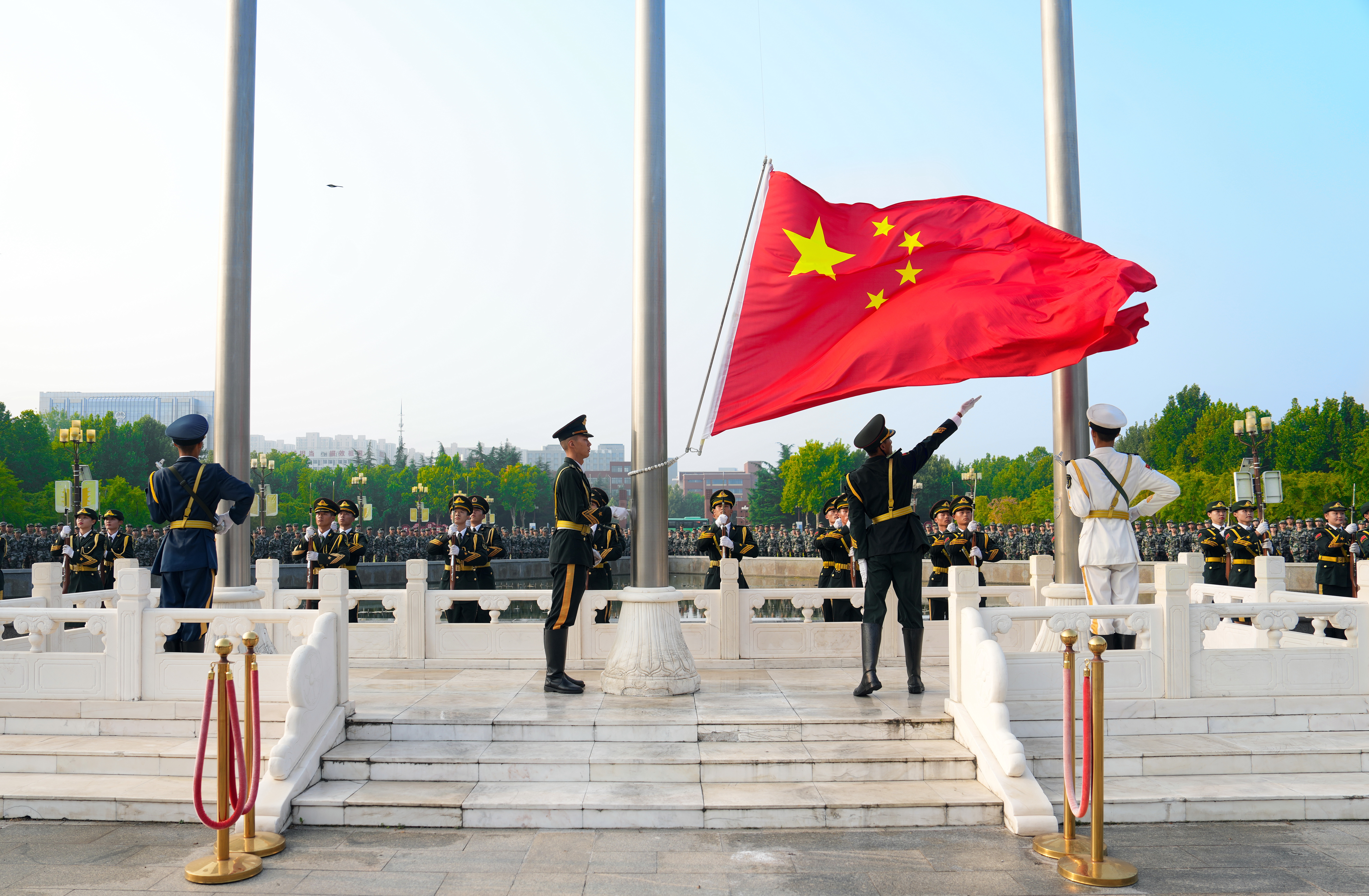 为弘扬爱国主义精神,展现当代大学生昂扬向上的精神面貌,激励学生立报国之志,与祖国同心同行,9月9日上午,best365英国在线体育官网在主校区五星广场举行“喜迎新中国成立75周年暨迎新生‘我们共成长 我们互见证’万人升国旗教育活动”。校党委副书记王利国,校党委常委、副校长胡少伟,校党委常委、纪委书记陈曦出席活动,党委宣传部、党委学生工作部、党委研究生工作部、校团委负责同志,各学院分管学生工作党委副书记、新生辅导员、2024级本科新生及高年级本科生、研究生代表共1万余人现场参加活动。本次升国旗仪式由河南广播电视台交通事业部直播,在大象新闻客户端、best365英国在线体育官网视频号等新媒体平台呈现,线上直播浏览量共计达4万余人次。