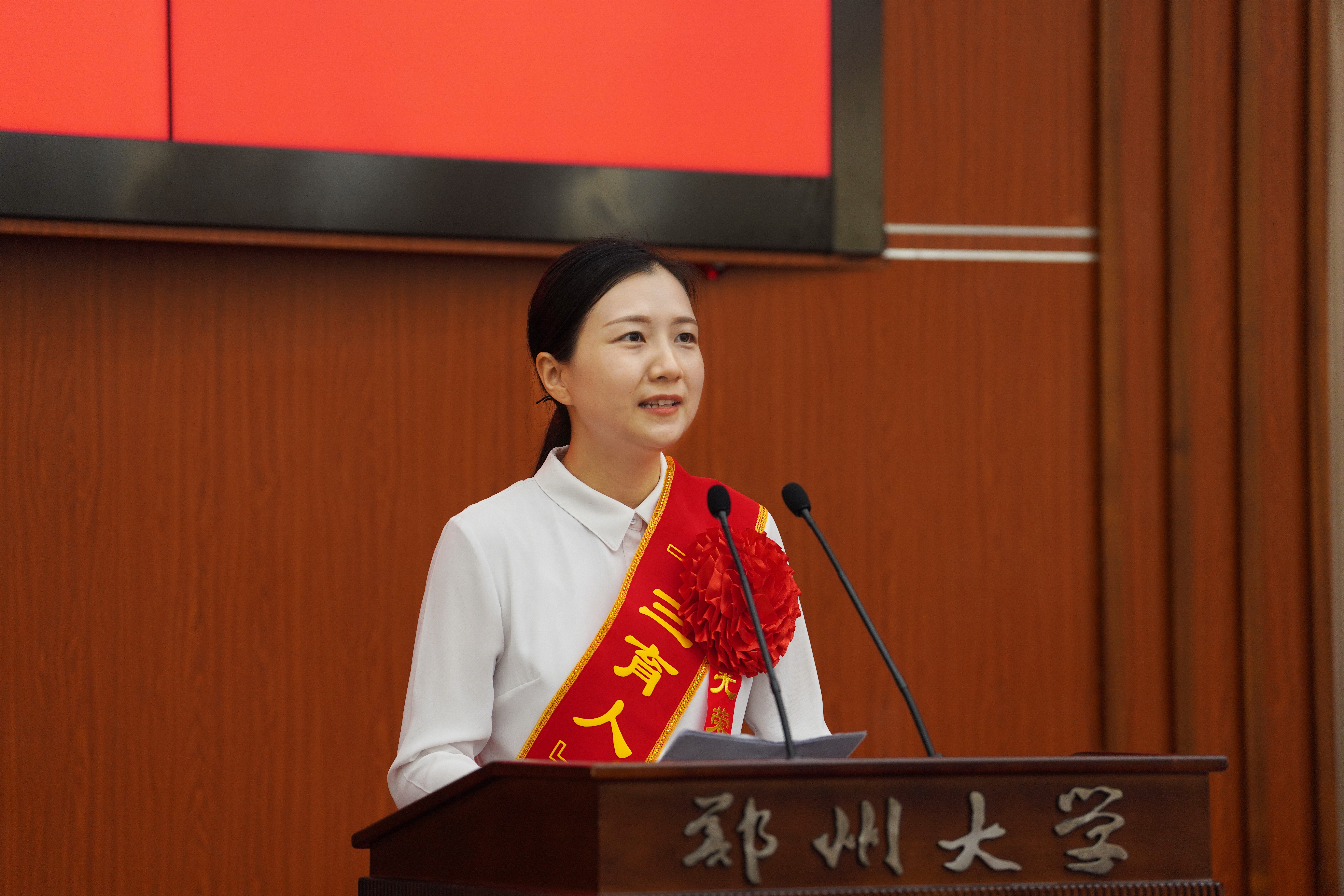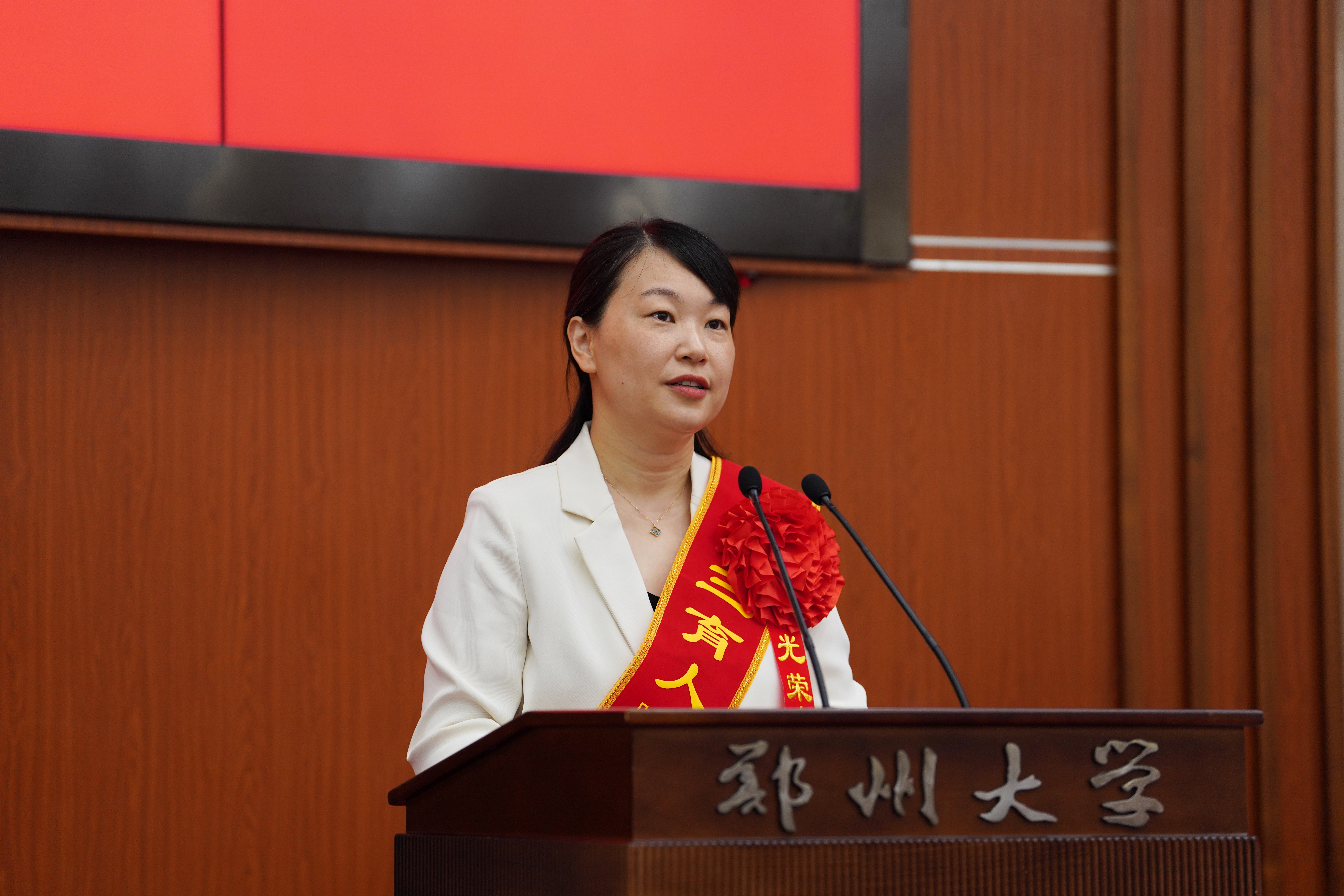 副校长张倩红宣读《关于表彰best365英国在线体育官网2023-2024学年校级“三育人”先进个人的决定》,校党委常委、副校长胡少伟宣读《关于表彰“教龄满30年教师”的决定》,与会领导为“三育人”先进个人代表颁发荣誉证书。校长李蓬院士为“教龄满30年教师”代表颁发奖杯。材料科学与工程学院田佳佳、基础医学院李翔、后勤保障中心杜道运3位教师分别作典型发言。