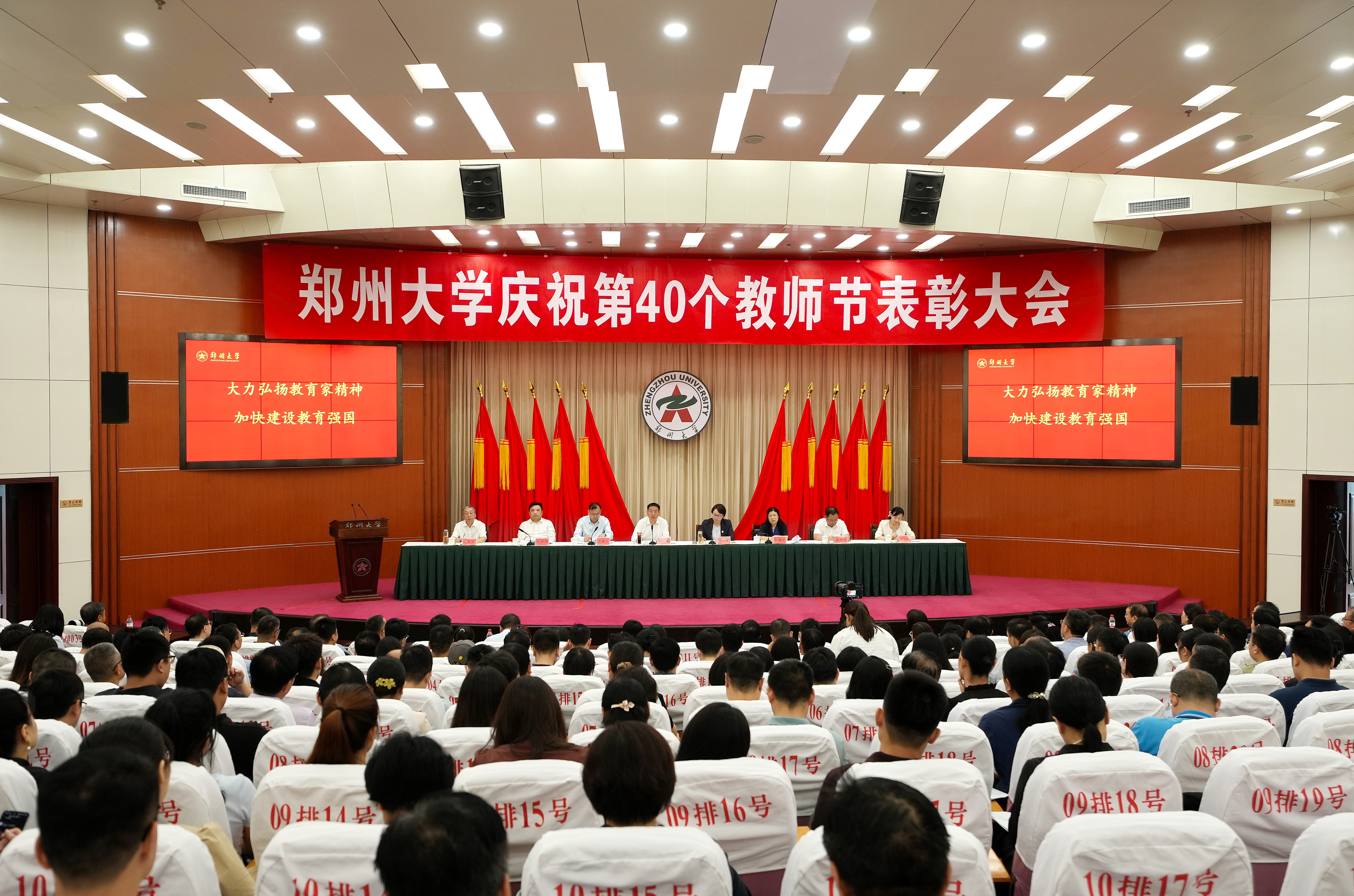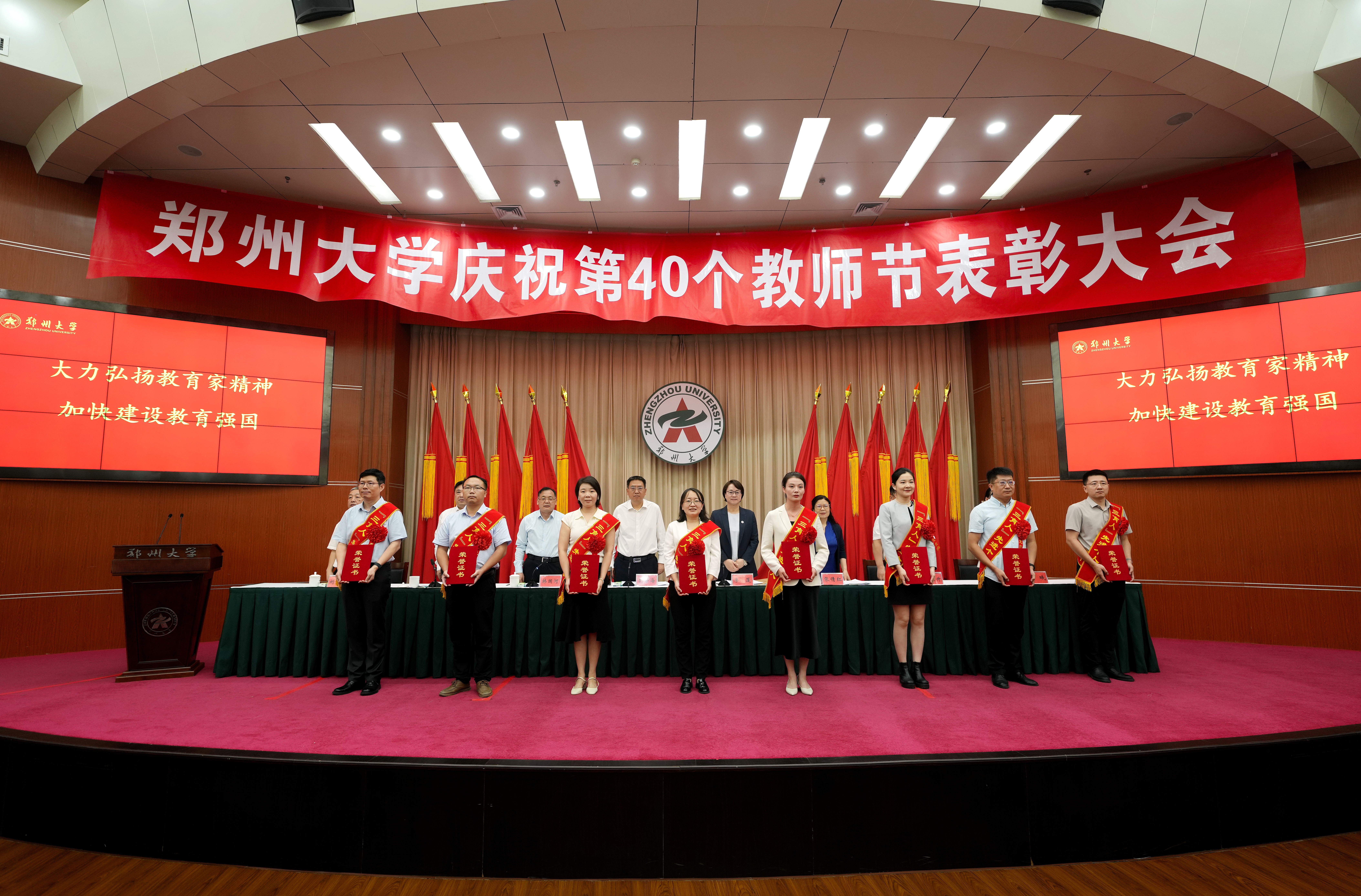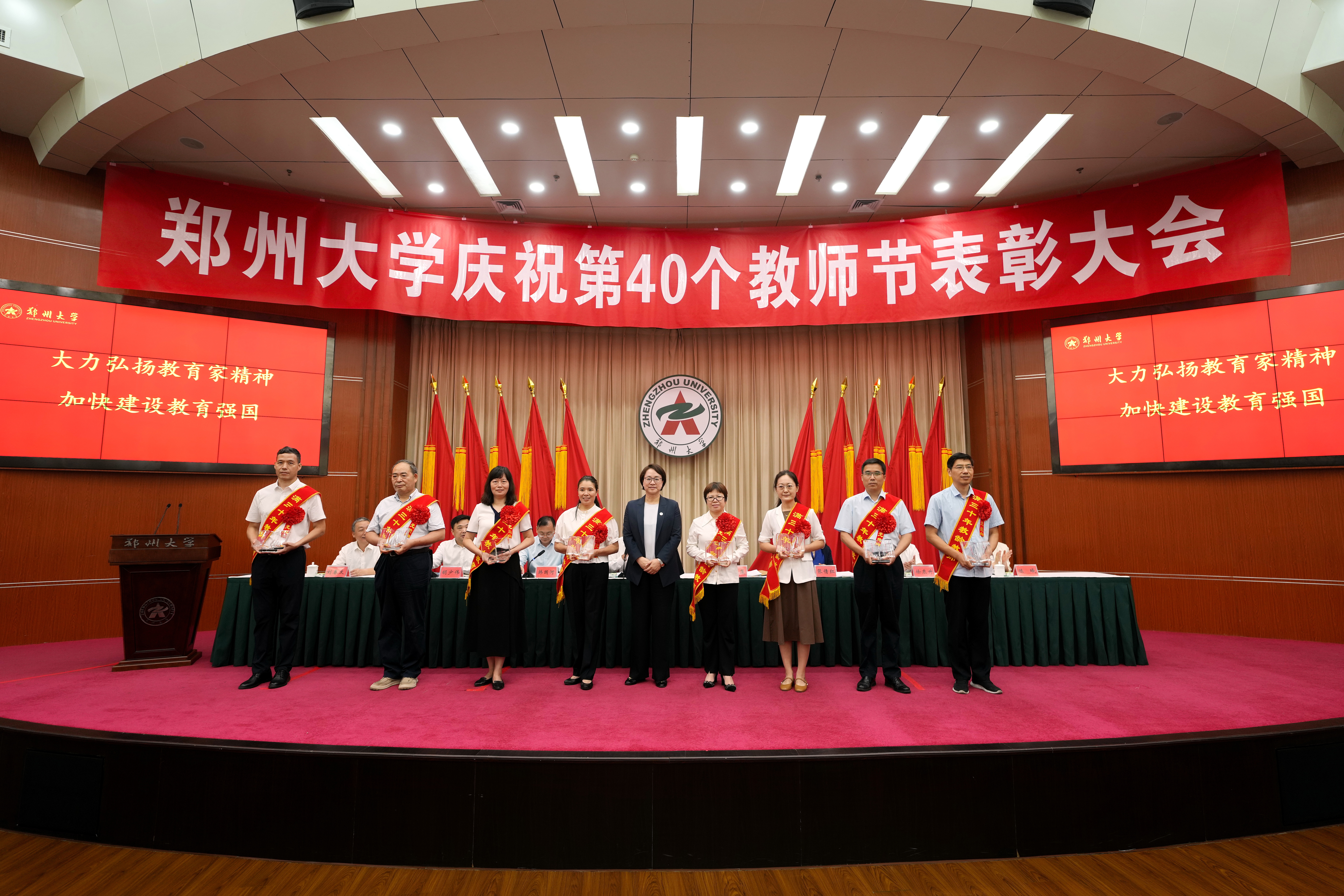 校党委书记别荣海在讲话中向全校教职员工表达了诚挚的节日问候。他指出,近年来,学校大力实施人才强校战略,推动教师队伍结构更优、活力更足、标杆更多,为学校一流大学建设提供了有力支撑,并就弘扬教育家精神,向全校教职工提出六点希望:一要坚守报国心,坚定心有大我、至诚报国的理想信念,牢记为党育人、为国育才的初心使命,树立“躬耕教坛、强国有我”的志向和抱负,着力培养担当民族复兴大任的时代新人。二要树立好榜样,陶冶言为士则、行为世范的道德情操,把师德师风作为第一标准,自觉遵守新时代教师职业行为准则、捍卫教师职业尊严,锤炼高尚师德师风。三要把握方法论,涵养启智润心、因材施教的育人智慧,秉承让每个学生更优秀的教育理念,把全员、全程、全方位“三全育人”落到实处,真正成为学生成长路上的智慧启迪者和生命点化者。四要提升创造力,秉持勤学笃行、求是创新的躬耕态度,坚持终身学习、勇于创新实践,将科研优势转化为育人优势,培养服务国家战略和经济社会发展需要的拔尖创新人才。五要强化责任心,勤修乐教爱生、甘于奉献的仁爱之心,淡泊名利、无私奉献、甘为人梯,用爱和责任铺就学生成才之路。六要拓宽大格局,树立胸怀天下、以文化人的弘道追求,准确把握世界和中国发展大势,强化中华民族的文化认同,借鉴人类一切优秀文明成果,引导学生培养宽广国际视野和深厚家国情怀。他强调,要认真贯彻落实党的二十届三中全会精神和全国教育大会精神,持续推进人才强校战略,建设高水平教师队伍,积极营造近悦远来的人才生态,让广大教职工潜心育人、勇攀高峰,做教育家、大先生,为强国建设、民族复兴和学校一流大学建设贡献力量!