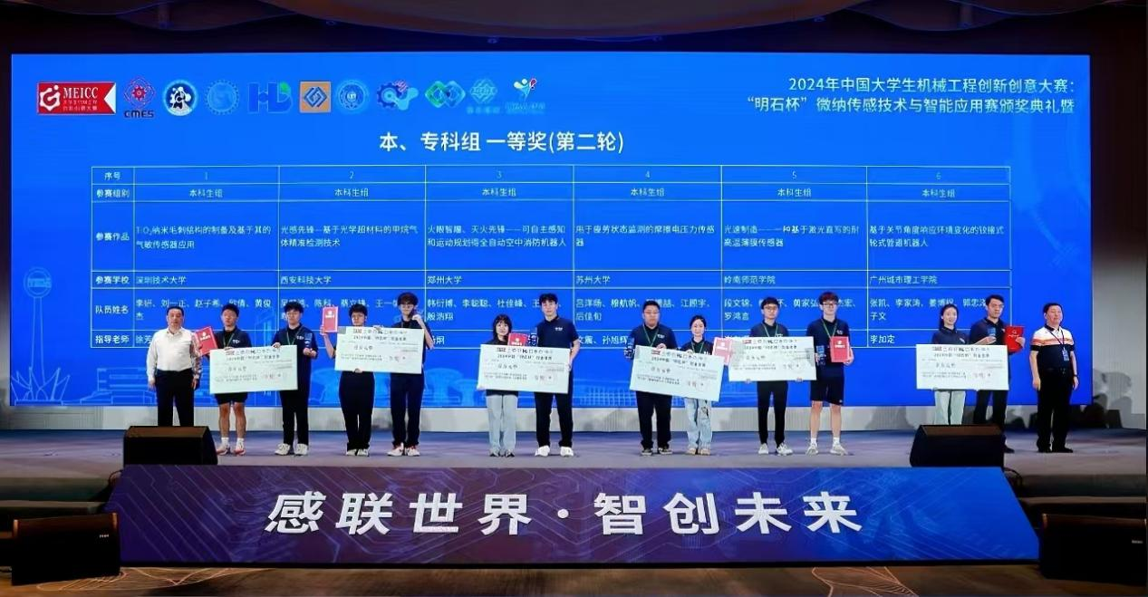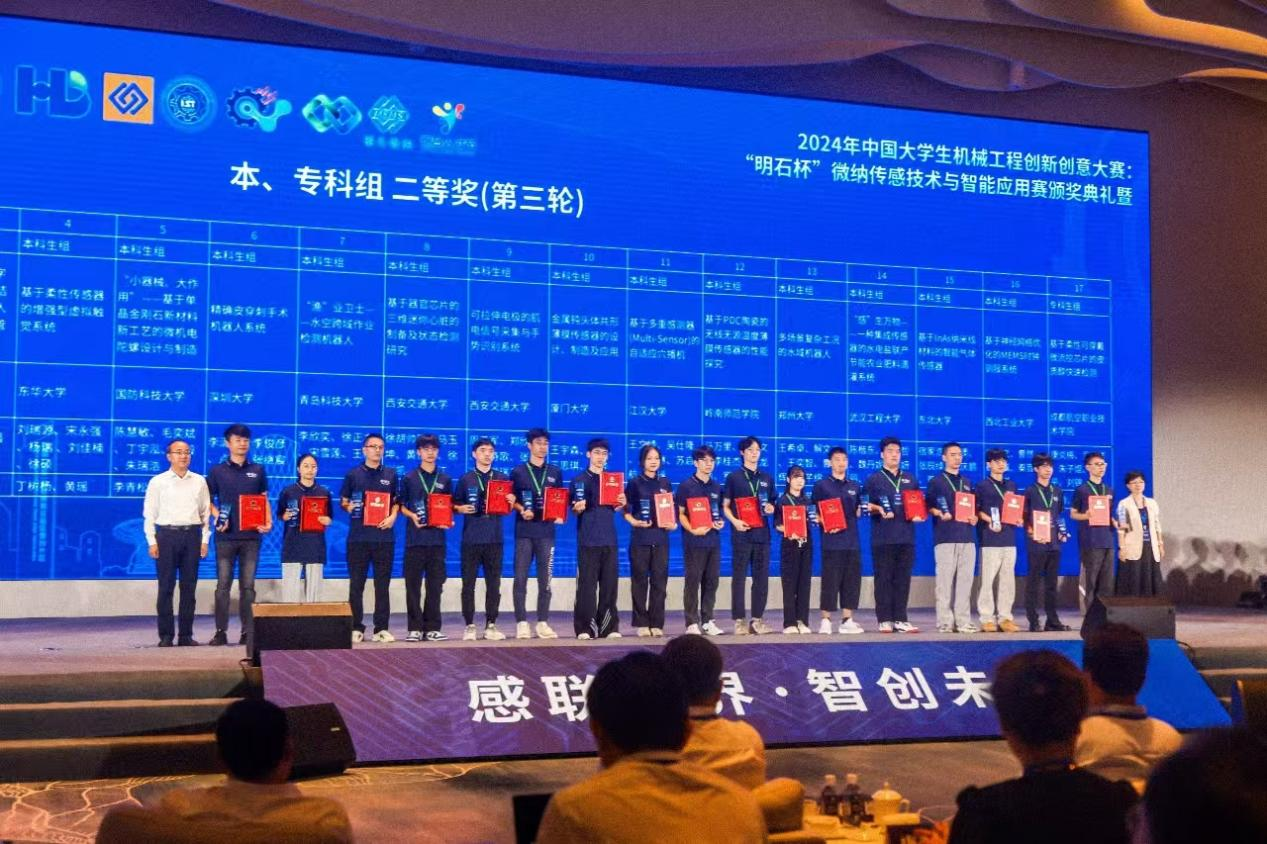 近日,2024年中国大学生机械工程创新创意大赛:“明石杯”微纳传感技术与智能应用赛总决赛在烟台成功举办。来自清华大学、浙江大学、上海交通大学、华中科技大学和国防科技大学等109所高校和研究所的309支参赛队伍入围总决赛,共有183项作品分别获得一、二、三等奖。best365官网在总决赛中取得一等奖1项、二等奖2项、三等奖1项的好成绩。