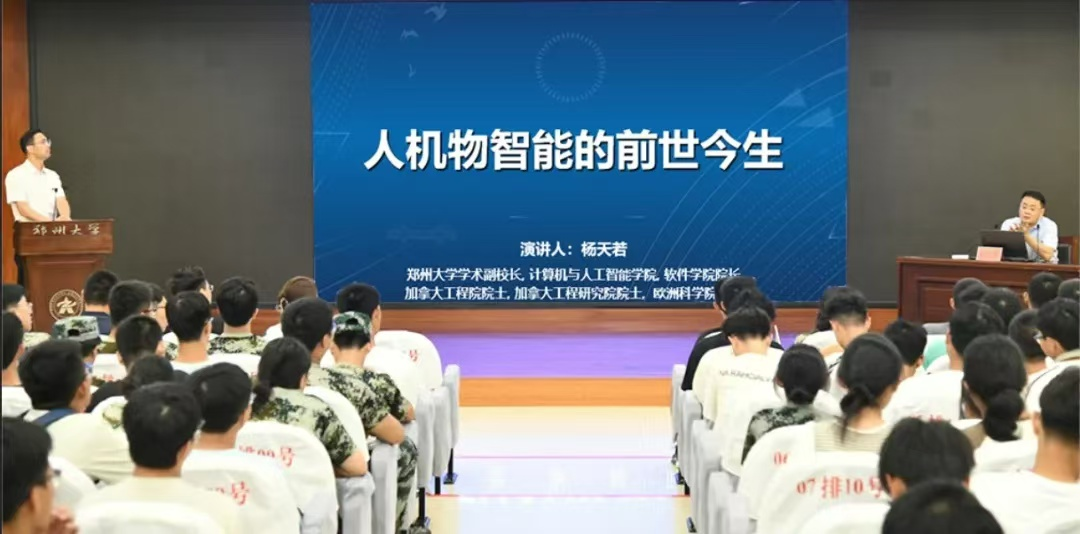 近日,学术副校长、计算机与人工智能学院、软件学院院长杨天若以“人机物智能的前世今生”为题为学院师生讲授“开学第一课”,计算机与人工智能学院、软件学院教师代表和1100余名新生参加报告会。