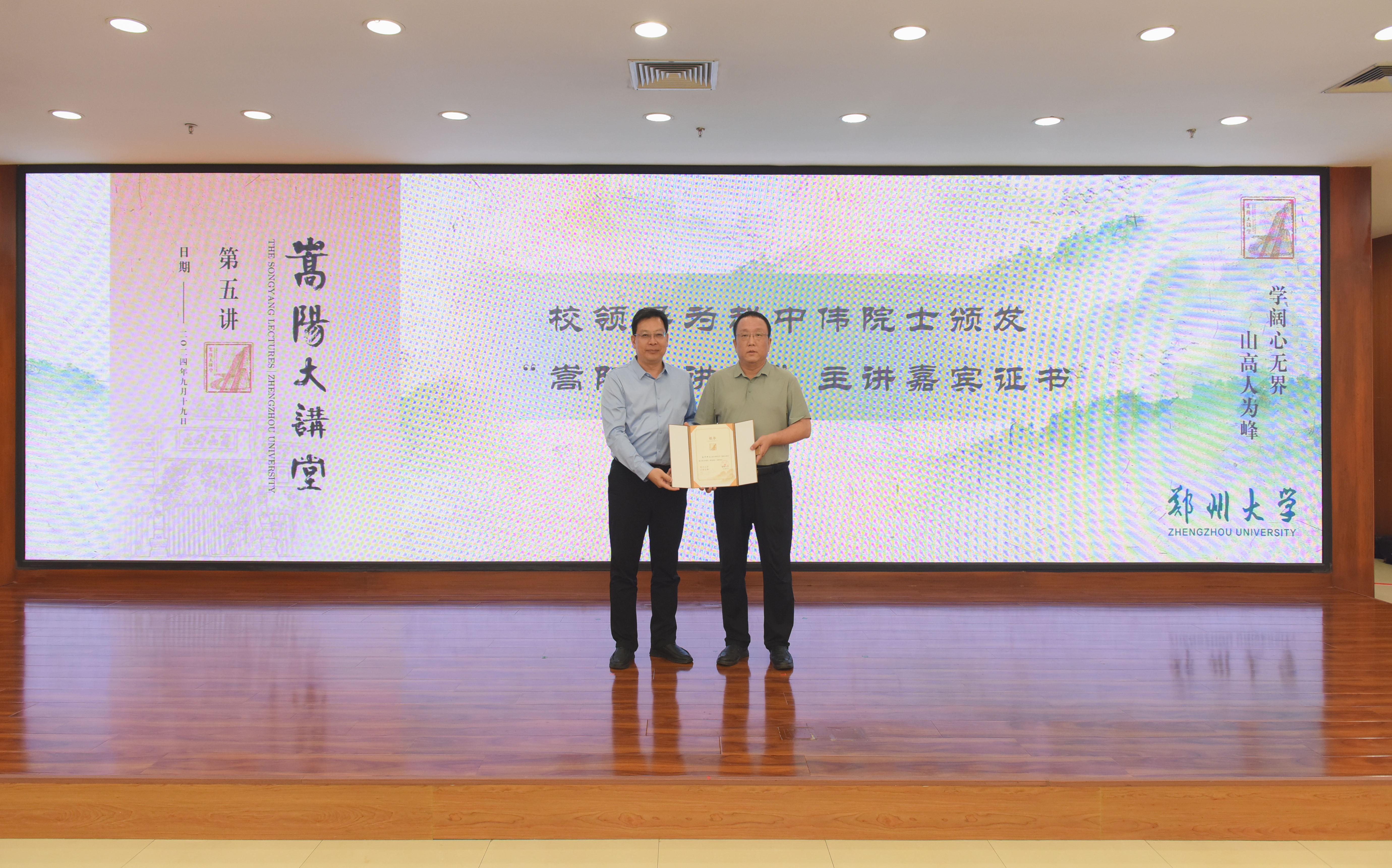 王利国为赵中伟院士颁发“嵩阳大讲堂”主讲嘉宾证书