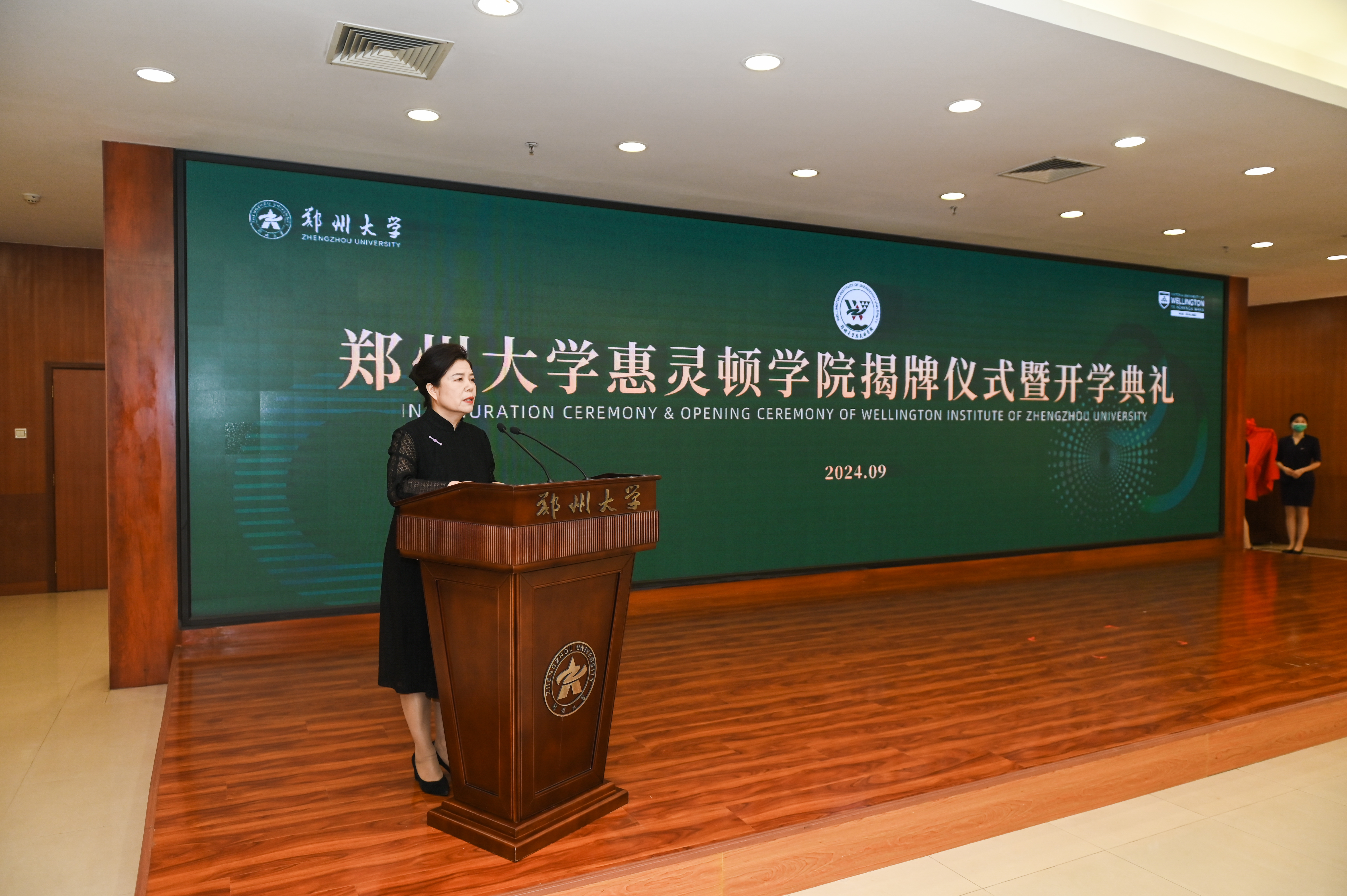 9月24日下午,best365英国在线体育官网在主校区举行惠灵顿学院揭牌仪式暨2024级新生开学典礼。新西兰惠灵顿维多利亚大学校长尼克•史密斯(Nic Smith)、国际处处长罗杰·邵(Roger Shew)、建筑与设计创意学院院长罗宾·菲普斯(Robyn Phipps),河南省委教育工委专职副书记、省教育厅党组成员尹洪斌,中国科学院院士、best365英国在线体育官网校长李蓬,校部机关和有关学院主要负责同志,惠灵顿学院教师代表和2024级全体新生参加典礼。揭牌仪式和开学典礼由副校长张倩红主持。