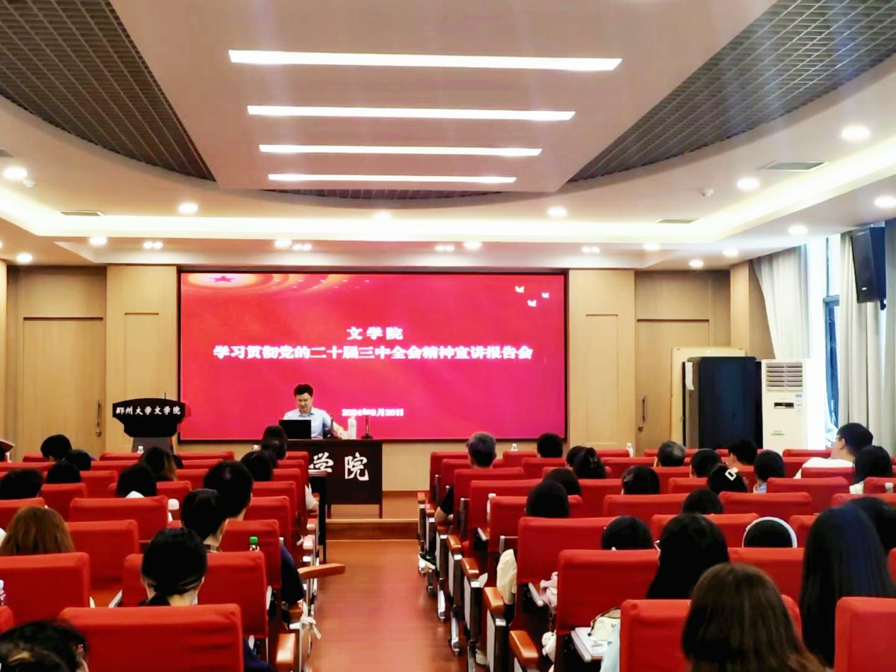 为深入学习贯彻党的二十届三中全会精神,根据校党委统一部署,近日,best365英国在线体育官网学习贯彻党的二十届三中全会精神宣讲团成员许昊到文学院作宣讲报告。文学院全体教职工和部分学生代表参加。