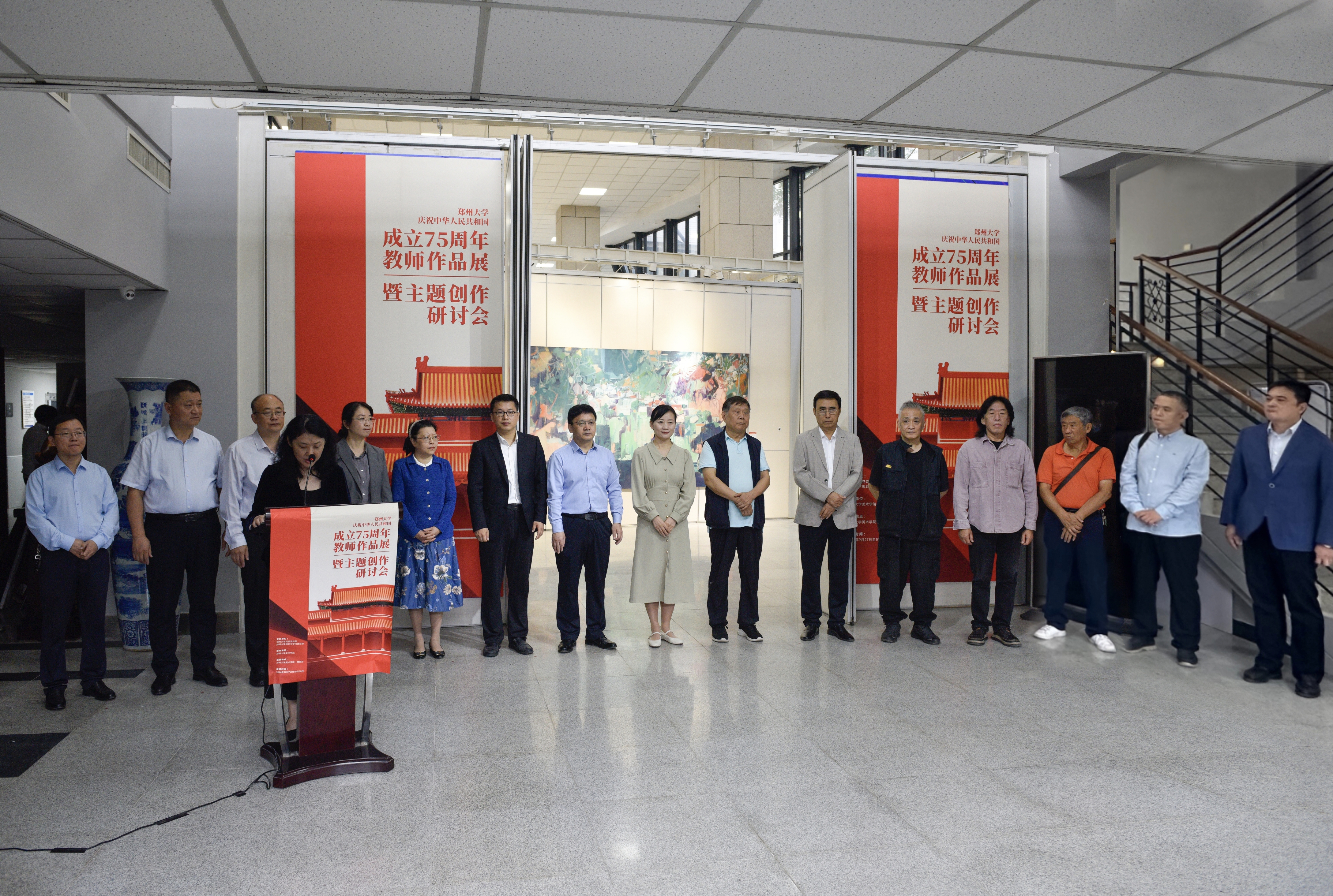9月27日,由best365英国在线体育官网党委宣传部、规划与学科建设部主办,美术学院承办的“best365英国在线体育官网庆祝中华人民共和国成立75周年美术学院教师作品展暨主题创作研讨会”在主校区举行。校党委常委、纪委书记陈曦出席并宣布展览开幕。中国画学会副会长、河南省美协名誉主席马国强,河南省学校艺术教育协会会长、郑州美术学院校长石品,best365英国在线体育官网党委组织部、党委宣传部、规划与学科建设部及相关部门负责同志参加开幕式。美术学院负责同志主持开幕式。